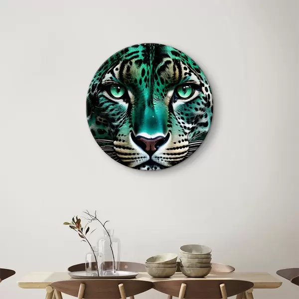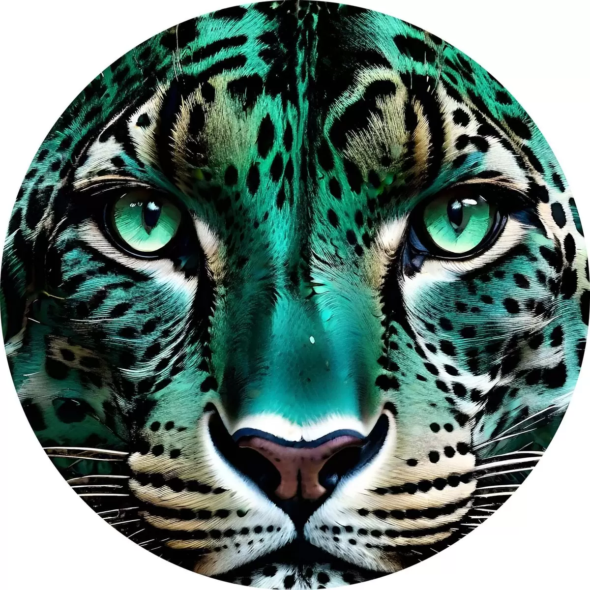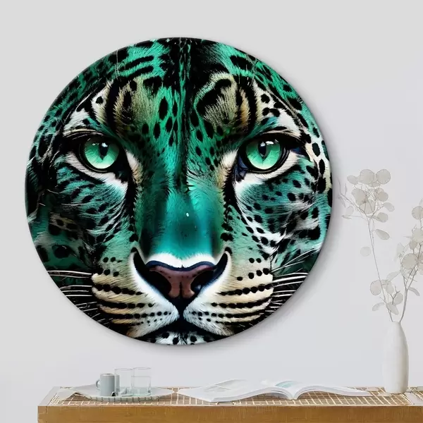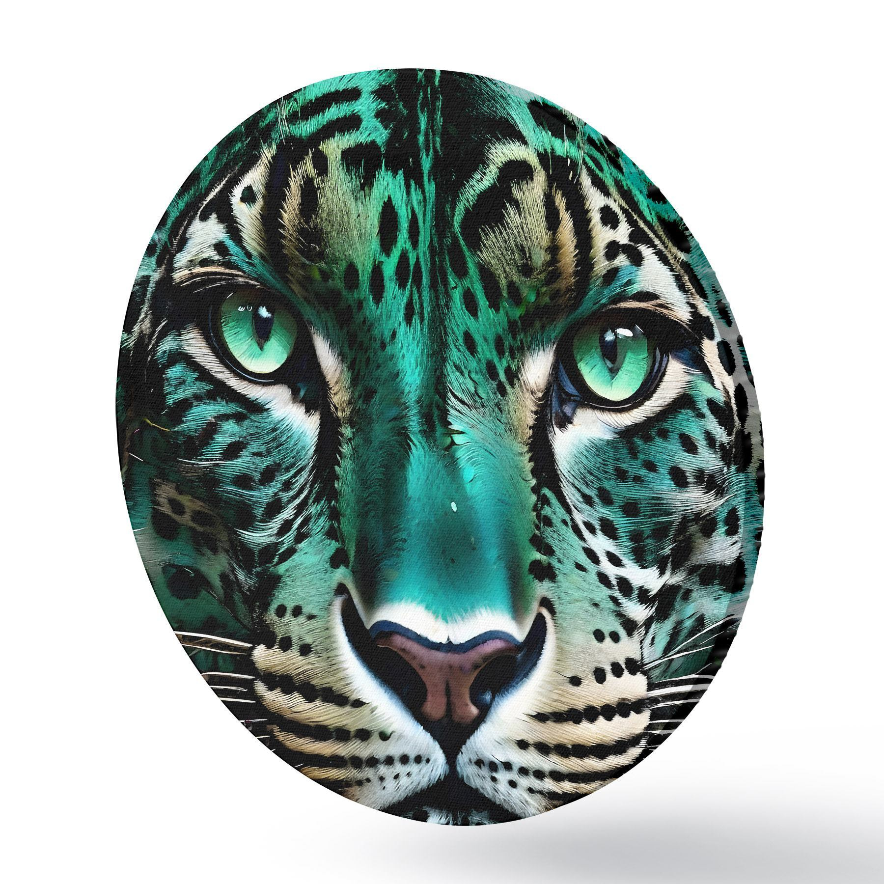 Nuotrauka Nuožmios žaliaakės leopardo portretas stambiu planu ryškiu turkiu ir juodai dėmėtu kailiu Nr r38979