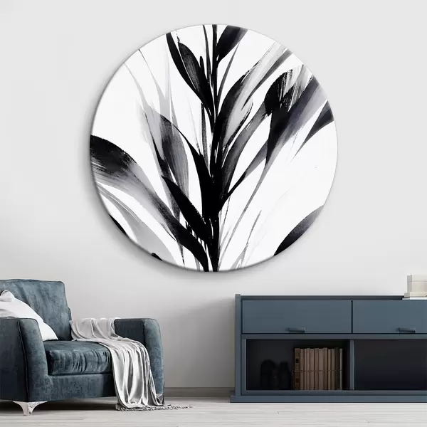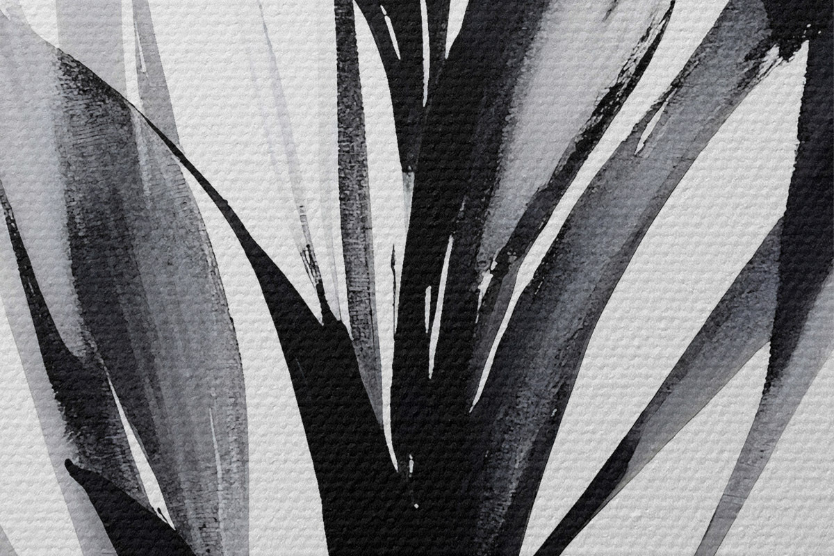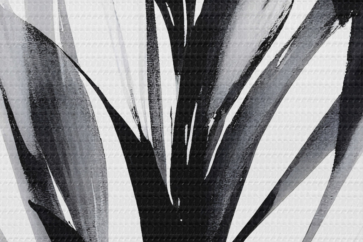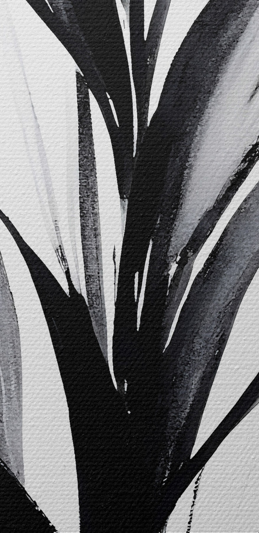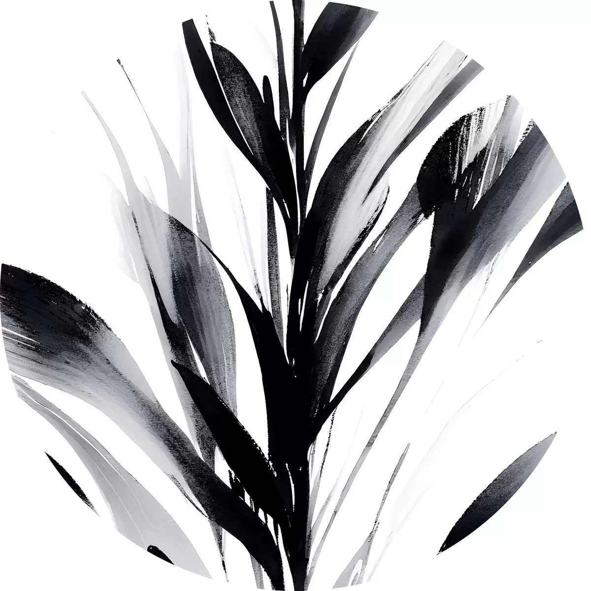 Nuotrauka Abstraktus juodos ir baltos spalvos lapų piešinys rašalu su aštriomis, kampuotomis formomis ir dideliu kontrastu Nr r38981