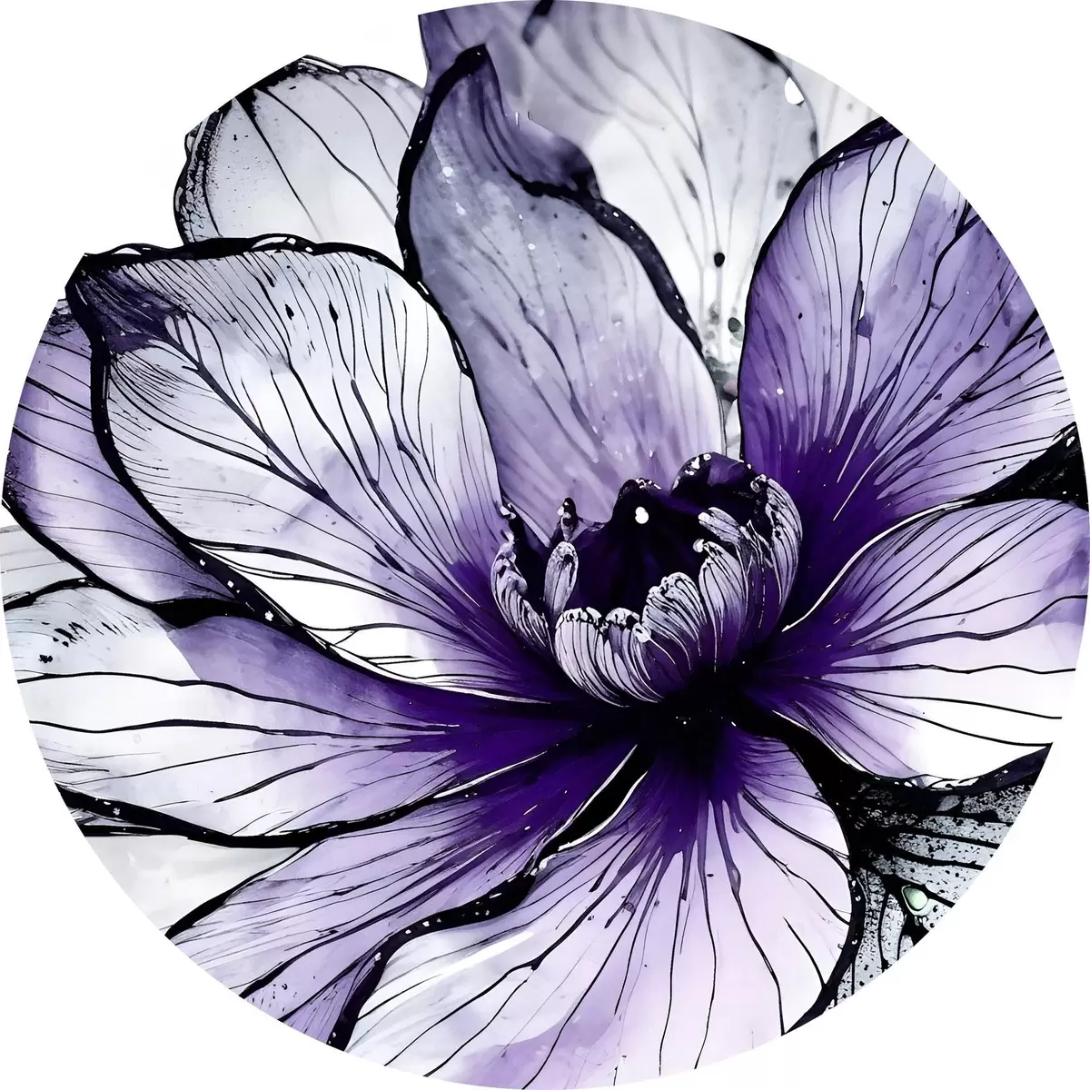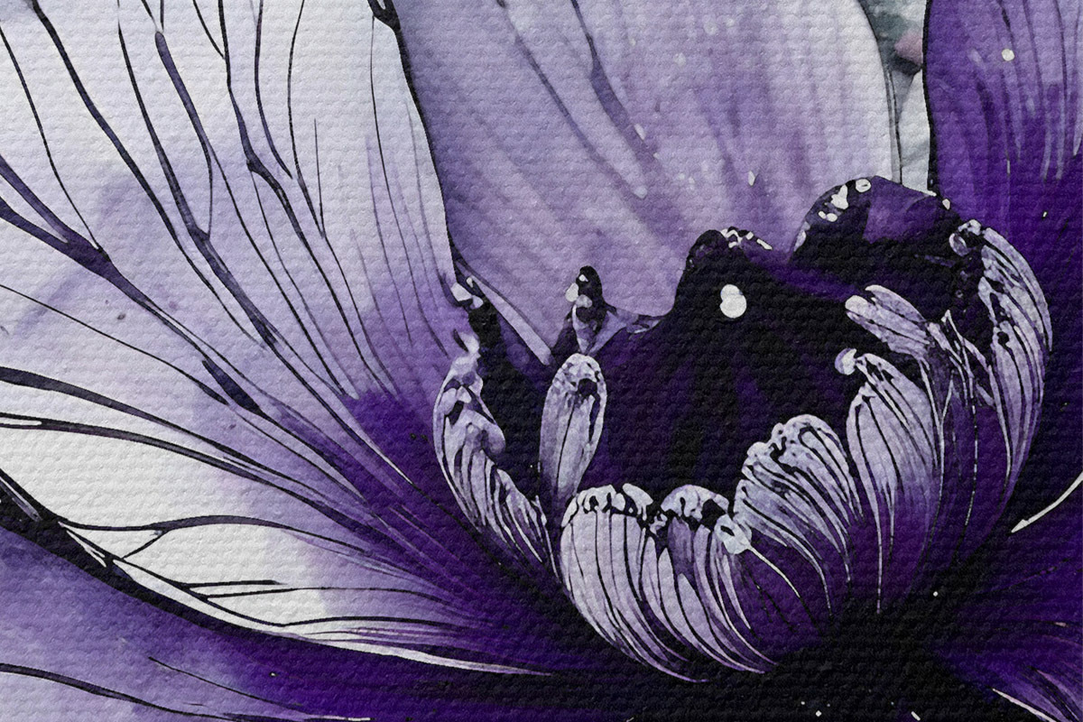 Nuotrauka Didelė, ryški violetinė gėlė su subtiliais, įmantriais žiedlapiais tamsiame fone Nr r38982