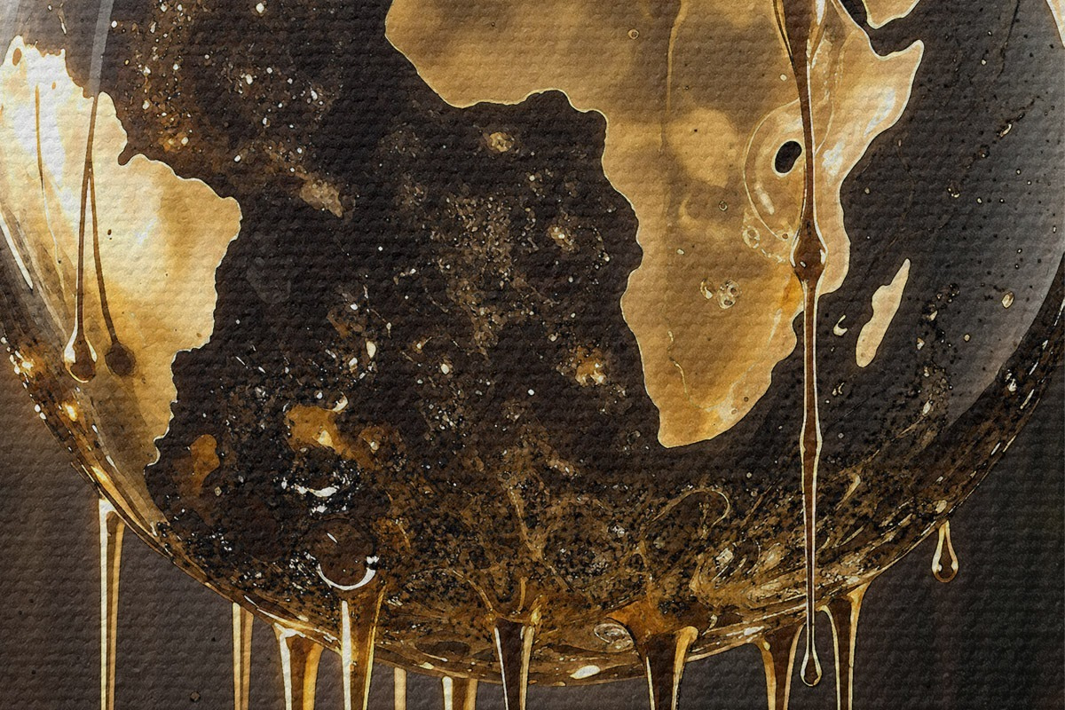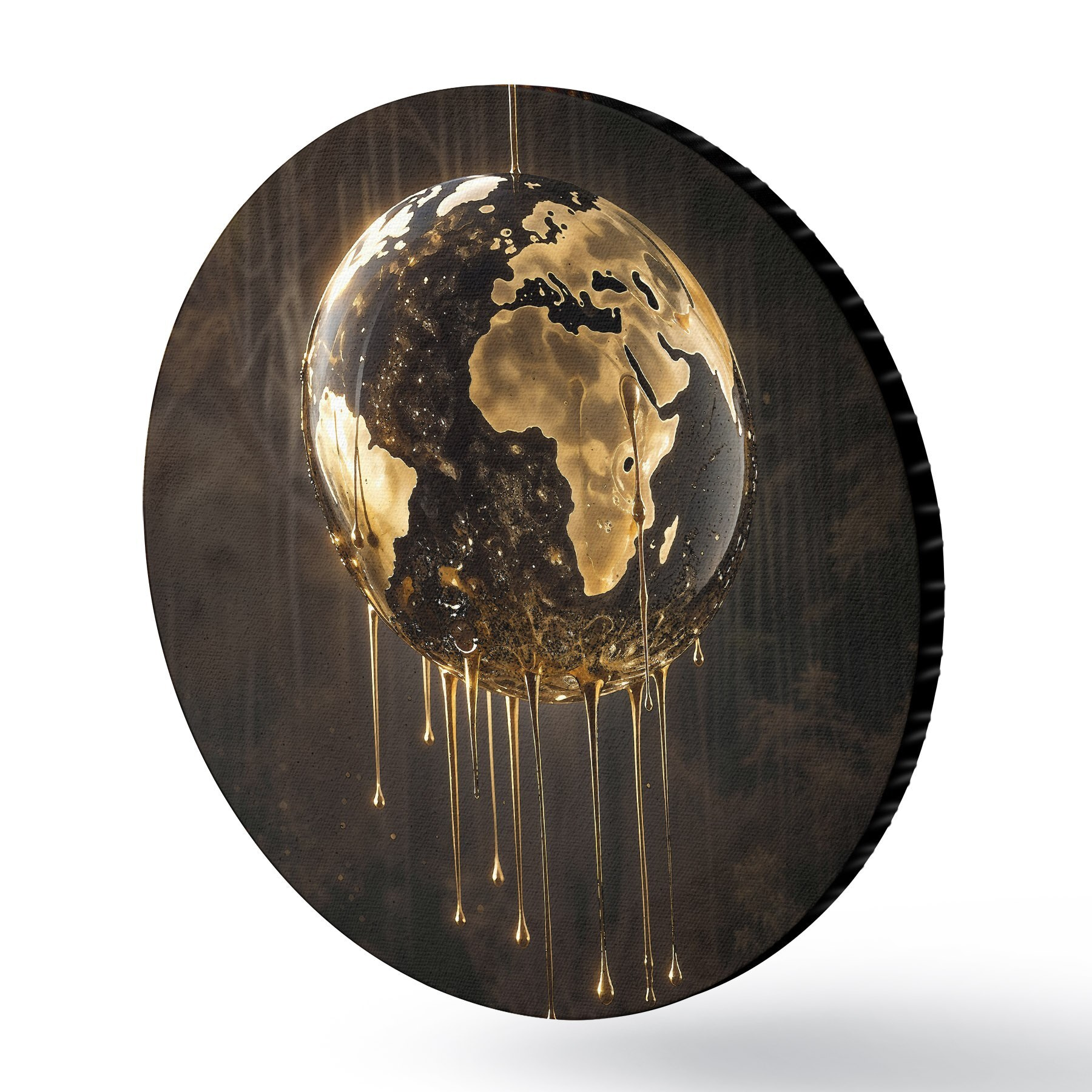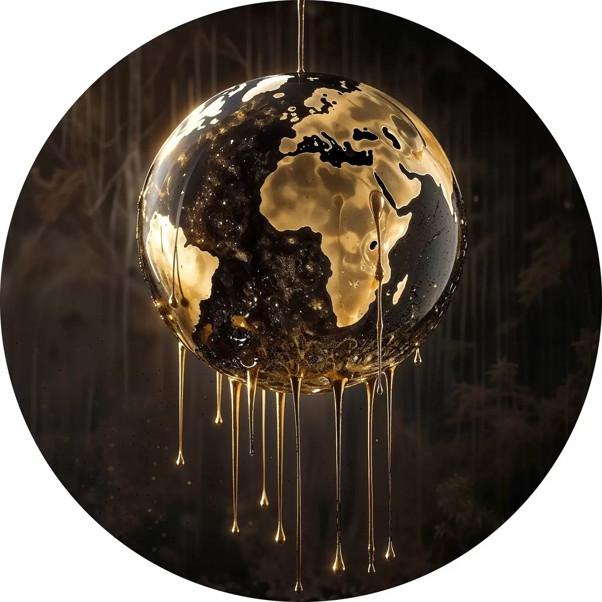 Nuotrauka Švytintis gaublys, vaizduojantis Žemę, apsuptą lašančio skysčio tamsiame fone Nr r38983