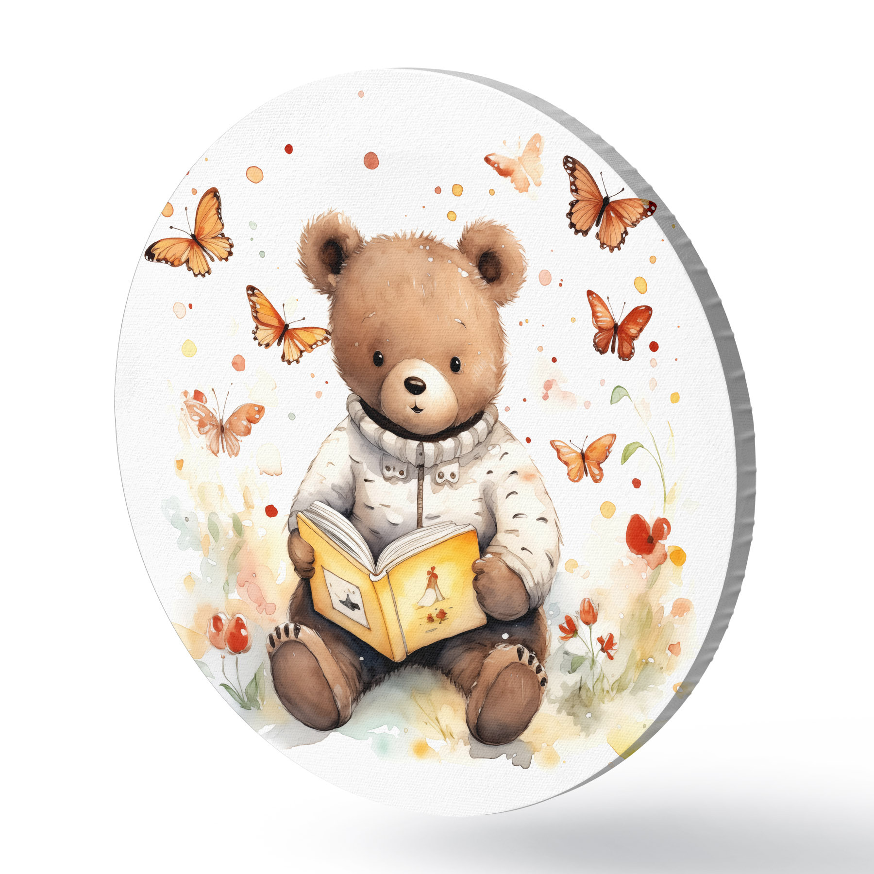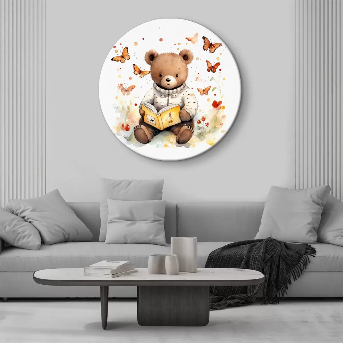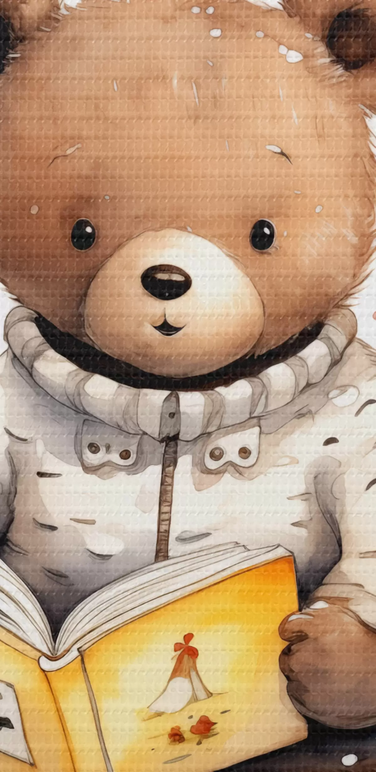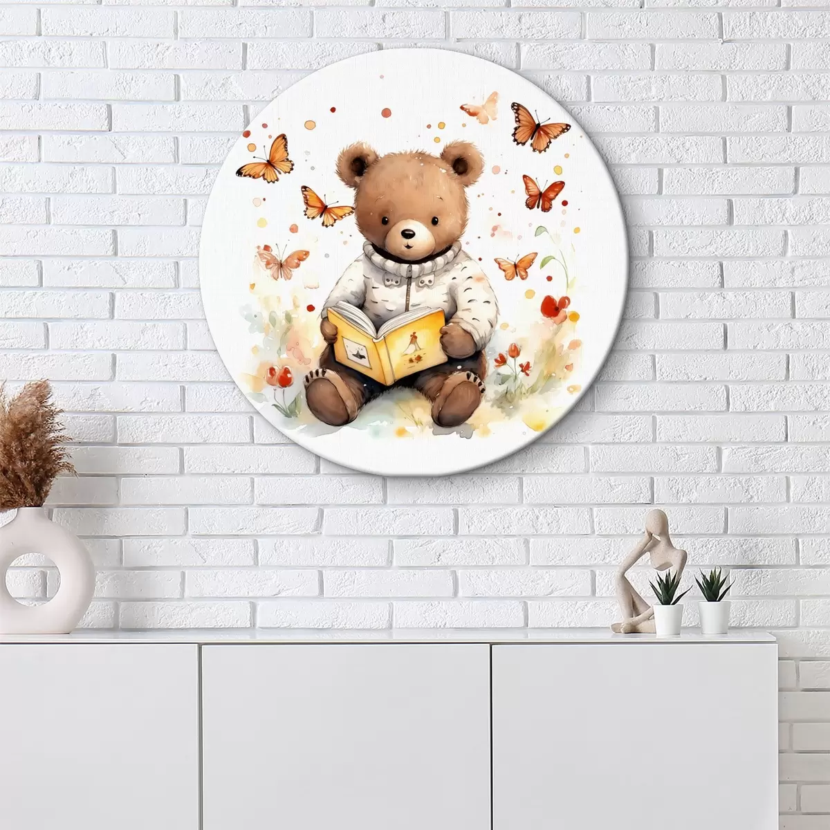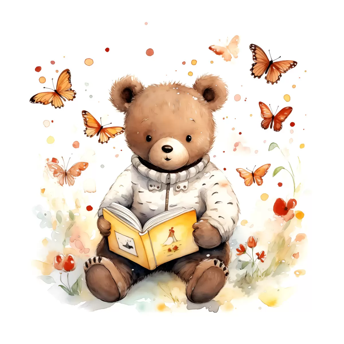 Nuotrauka Rudojo lokio jauniklis megztinyje skaito knygą, apsuptas akvarelinių drugelių Nr r39025