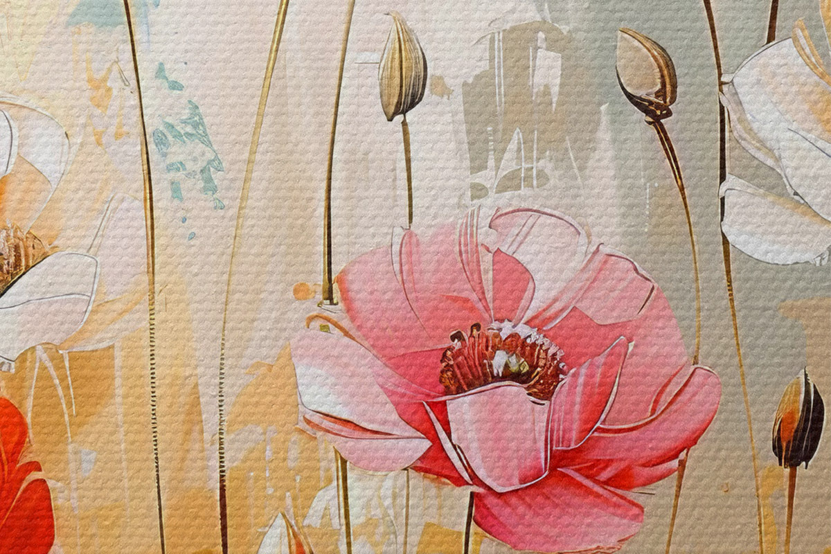 Galima užsakyti trijų rūšių medžiagą: "Economic Canvas" - tanki ir patvari medžiaga skaitmeninei spaudai, identiška dailininko drobės medžiagai, vandeniui atsparus paviršius, tikroviškas detalių atkūrimas, vidutinio grūdėtumo medžiaga. Premium Canvas - tekstūra primena dailininko drobę (susipynę smulkūs siūlai). Minkštas, detalus vaizdo atkūrimas ant matinio paviršiaus. Eco-Premium - aukštos kokybės 100 % medvilninis audinys. Dėl natūralių medvilnės pluoštų medžiaga yra patvari ir atspari nusidėvėjimui. Puikus spalvų atkūrimas ir detalumas.