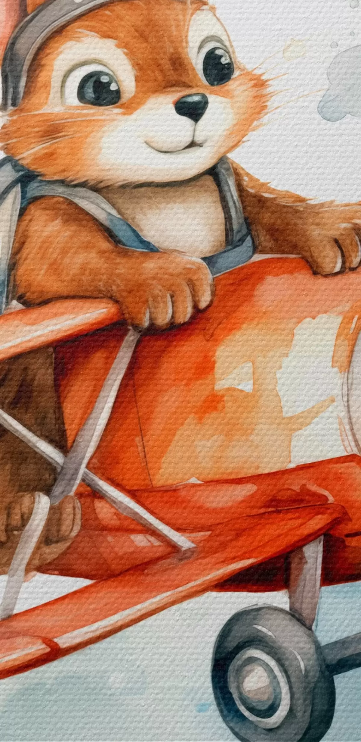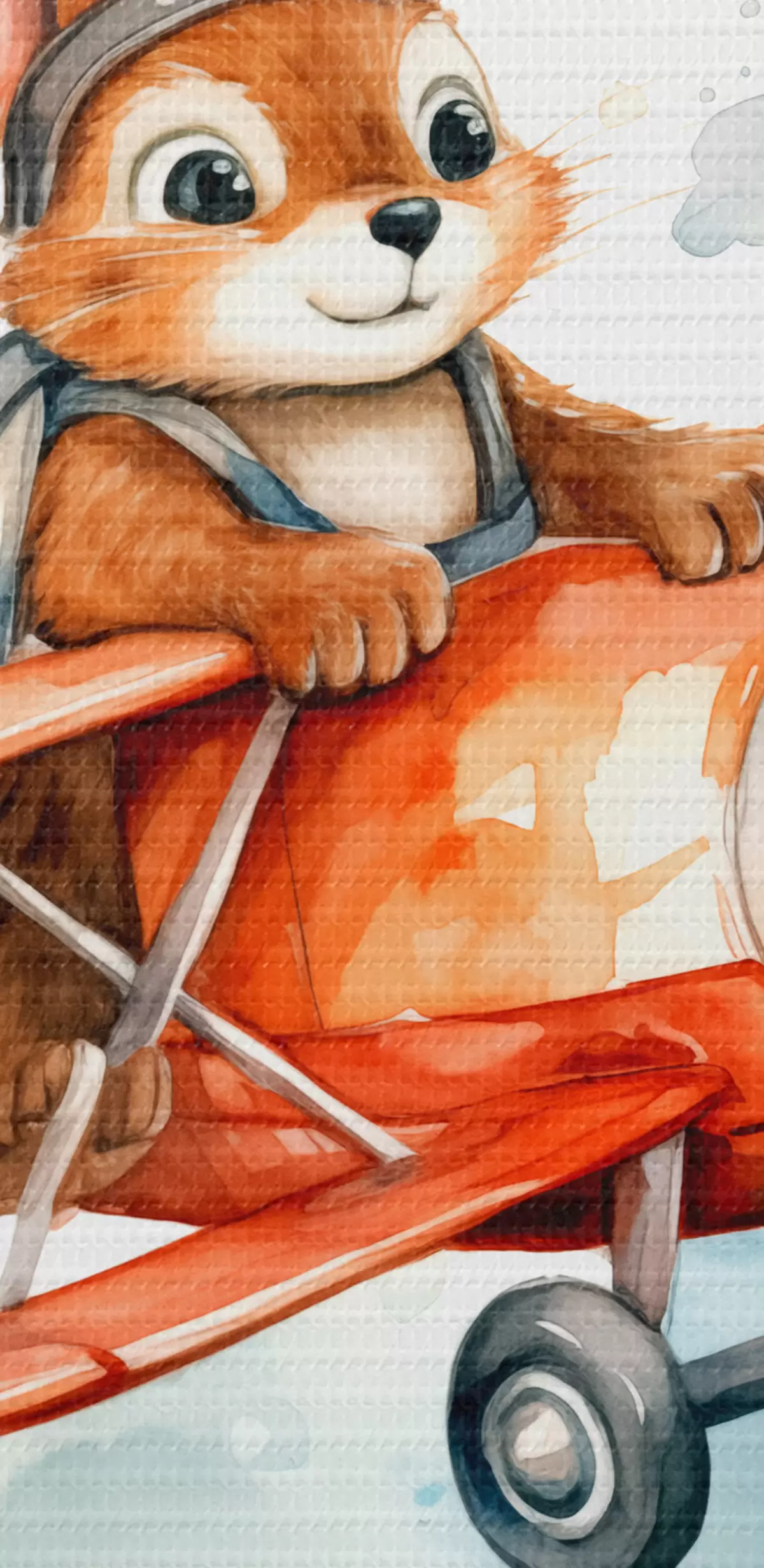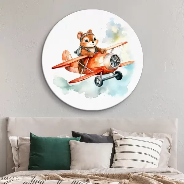 Nuotrauka Voveraitės kūdikis skraido raudonu lėktuvu, vaikiška iliustracija akvarele Nr r39116