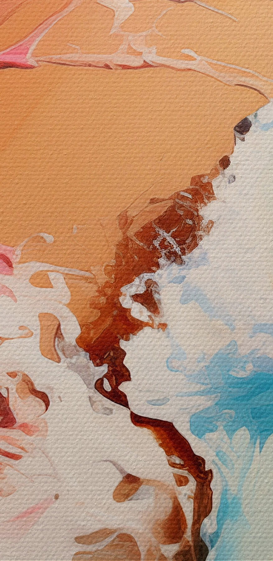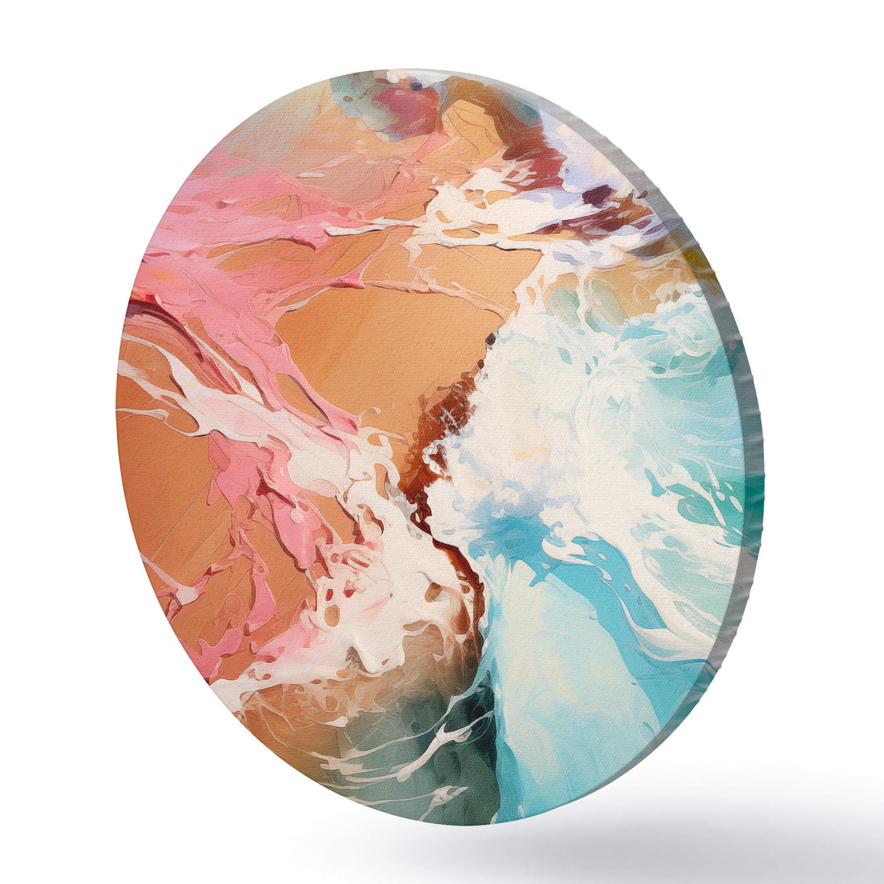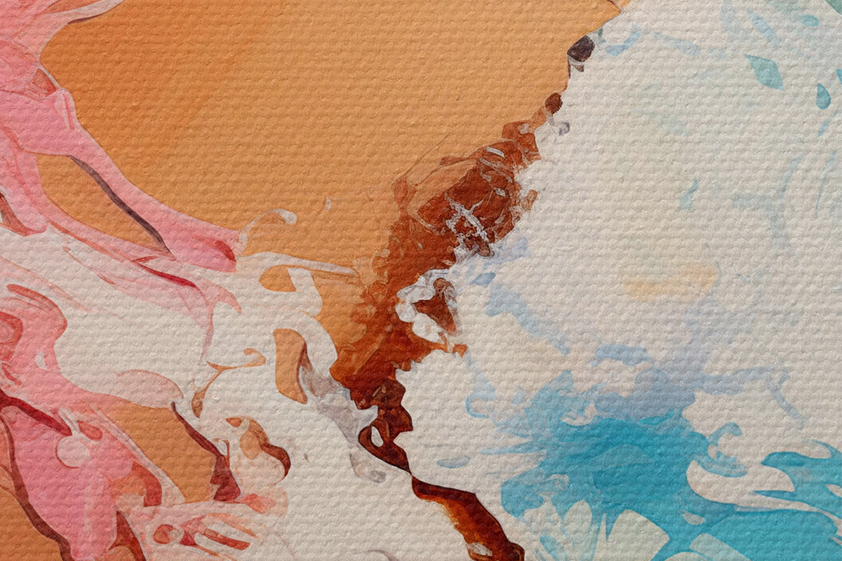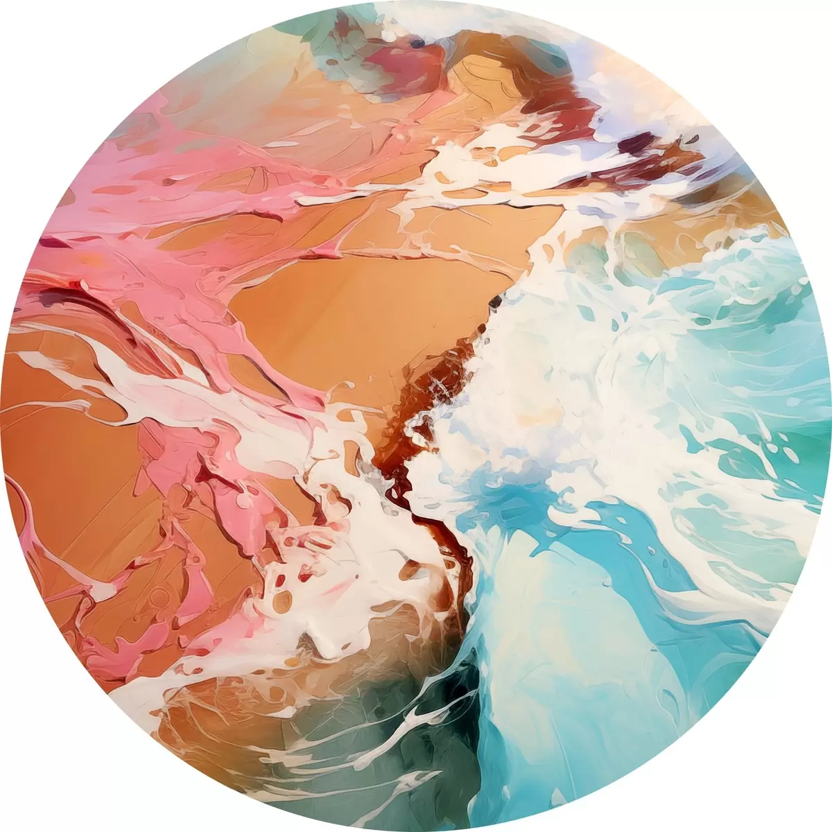 Nuotrauka Aliejinė abstrakti tapyba jūros banga ir smėlio krantas, mėlyna, žydra, rožinė, geltona spalva Nr r39123