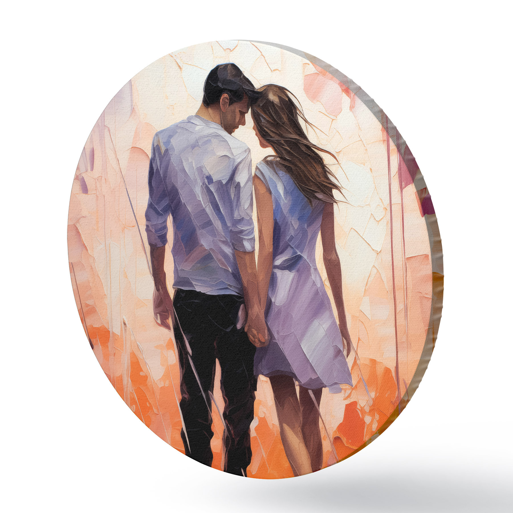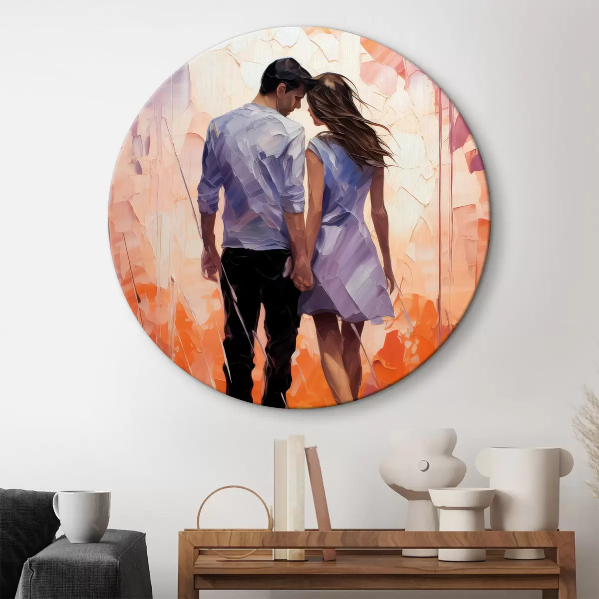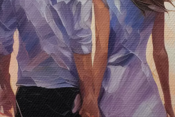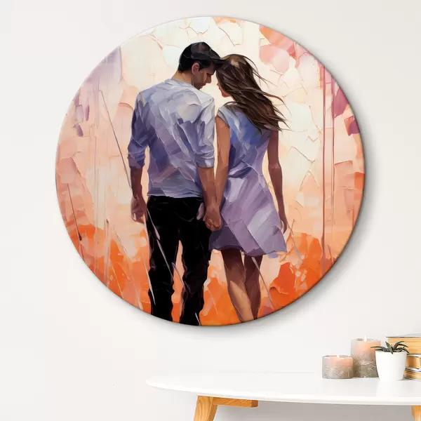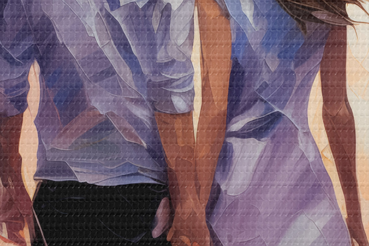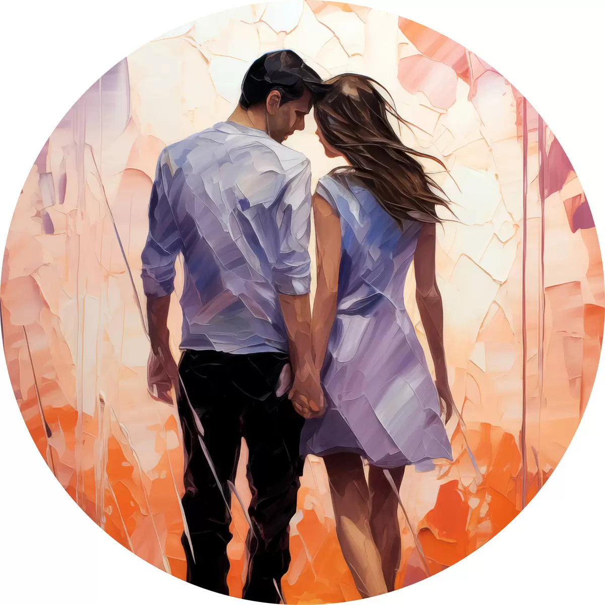 Nuotrauka Įsimylėjusios poros siluetas abstraktus paveikslas, mergina ir vaikinas, rožinė, oranžinė, violetinė, juoda spalva Nr r39124