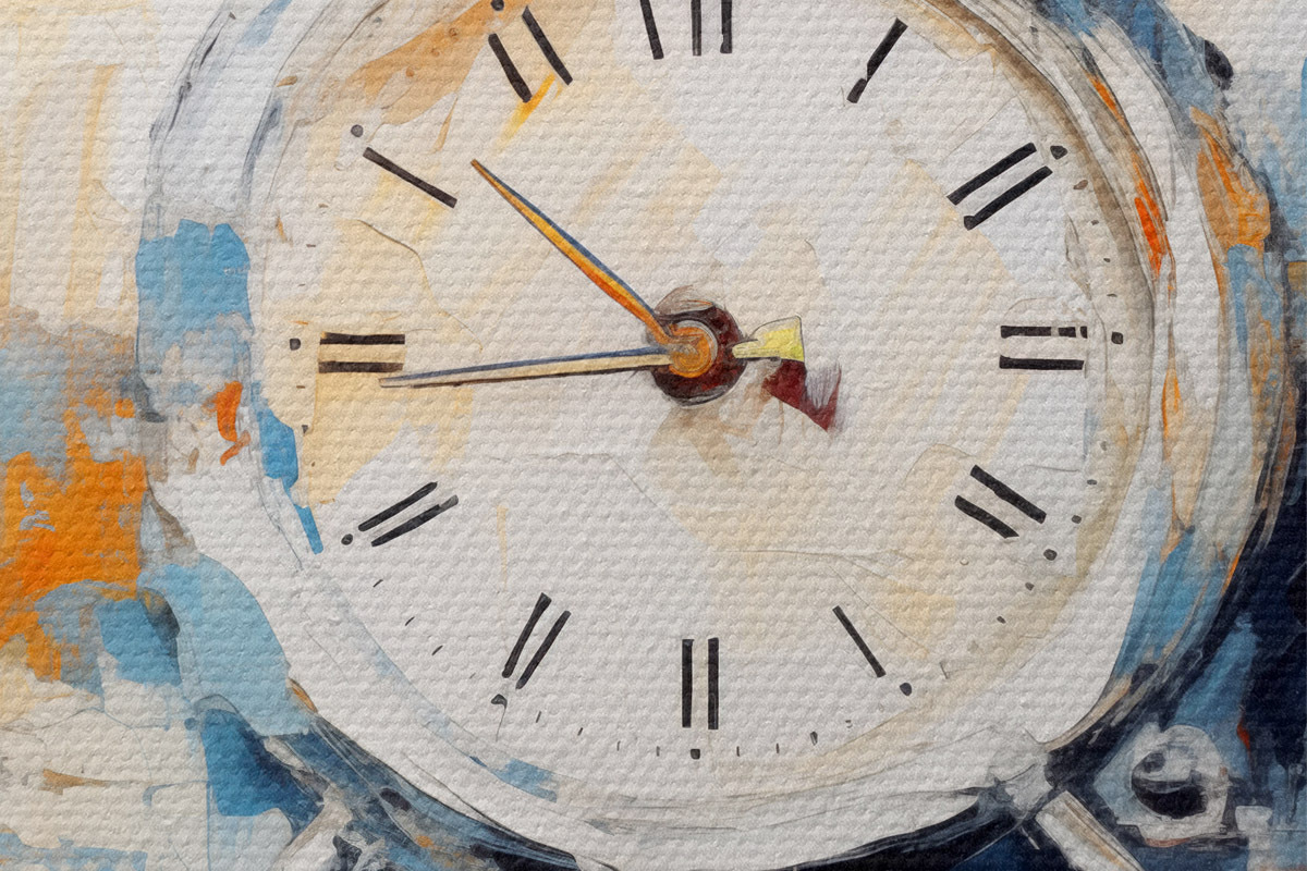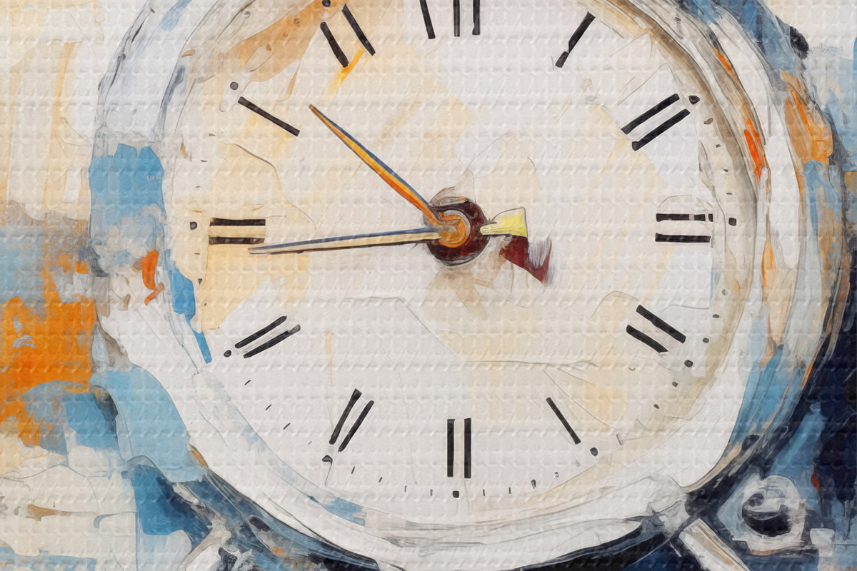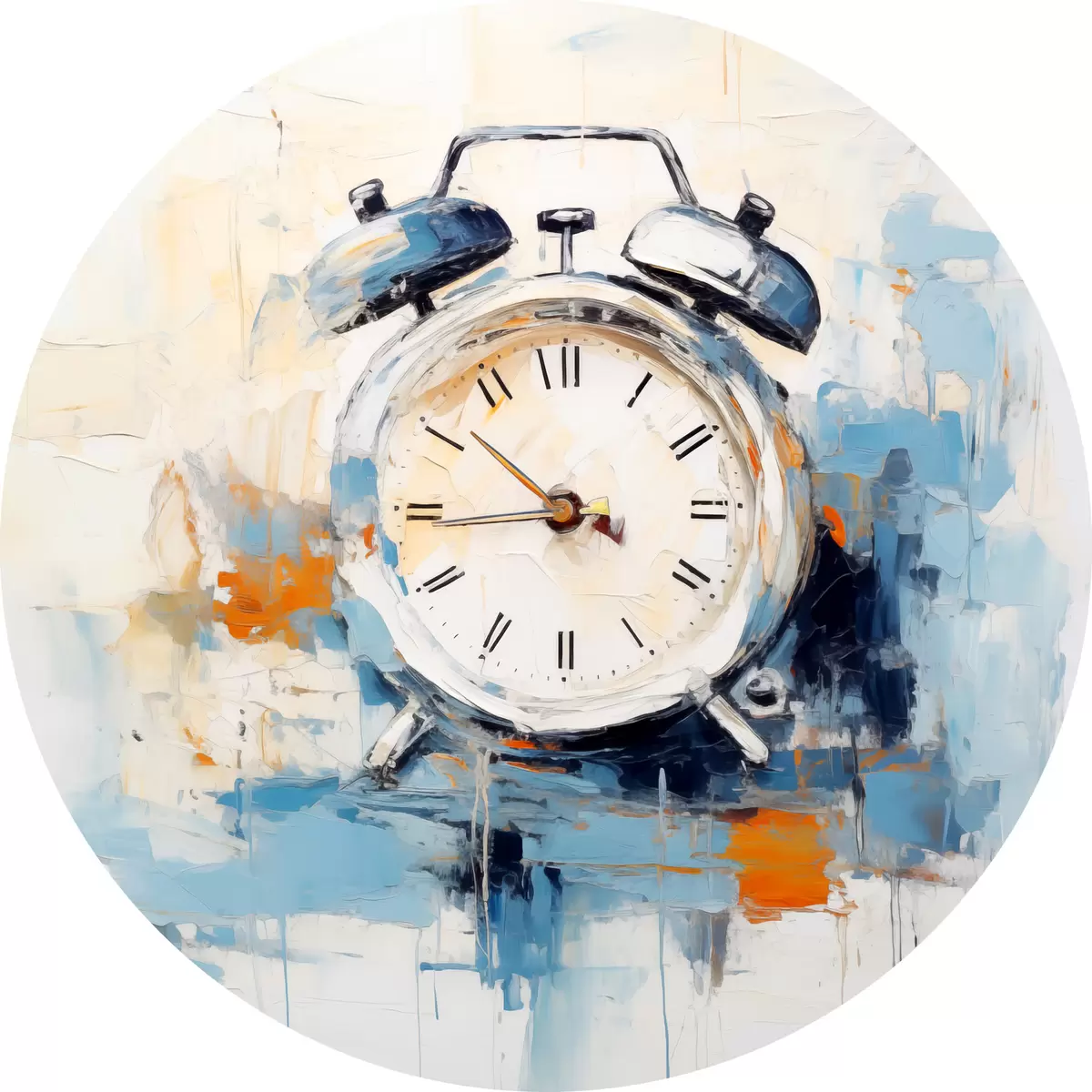 Nuotrauka Žadintuvas laikrodis abstraktus aliejinė tapyba, laikas, mėlyna ir balta spalva Nr r39127