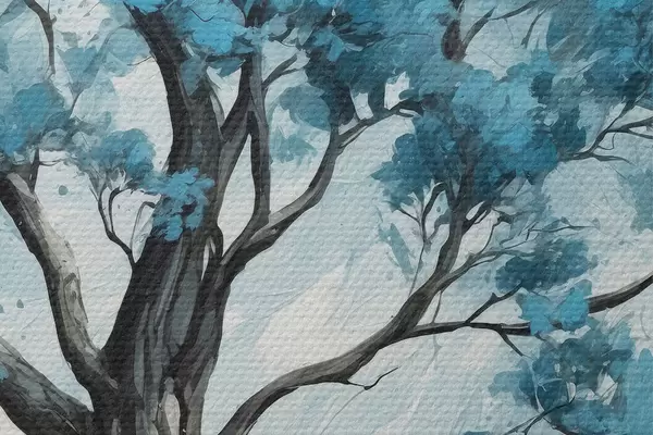 Nuotrauka Medis su mėlynais lapais baltame fone Nr r39153