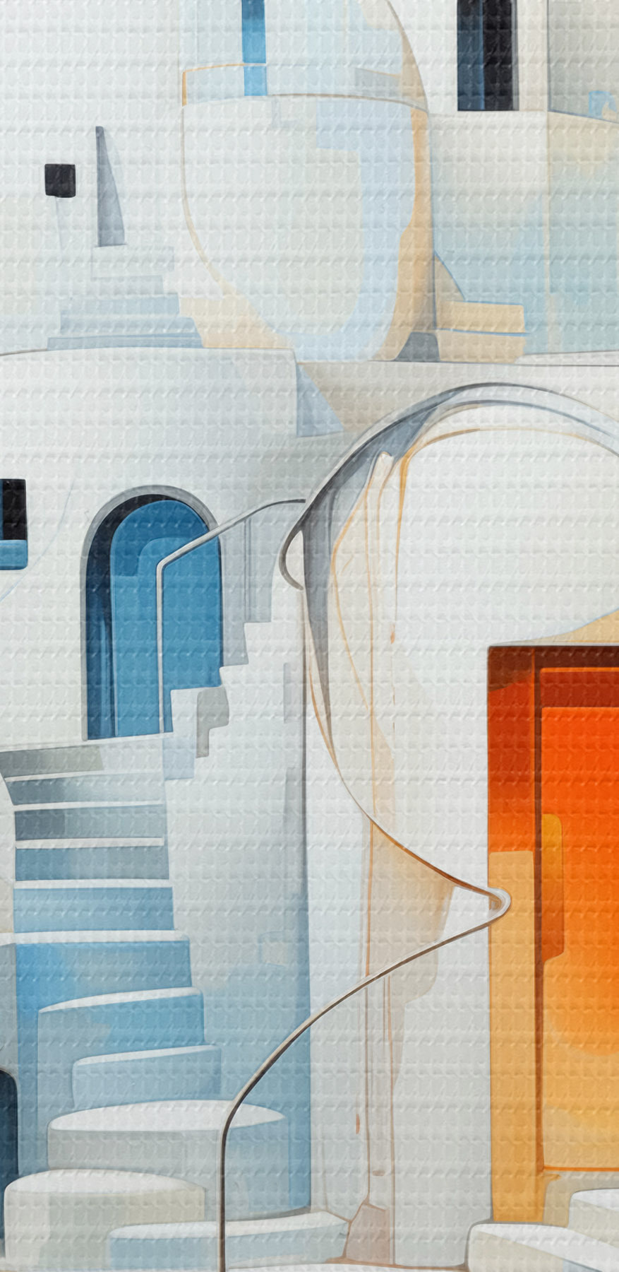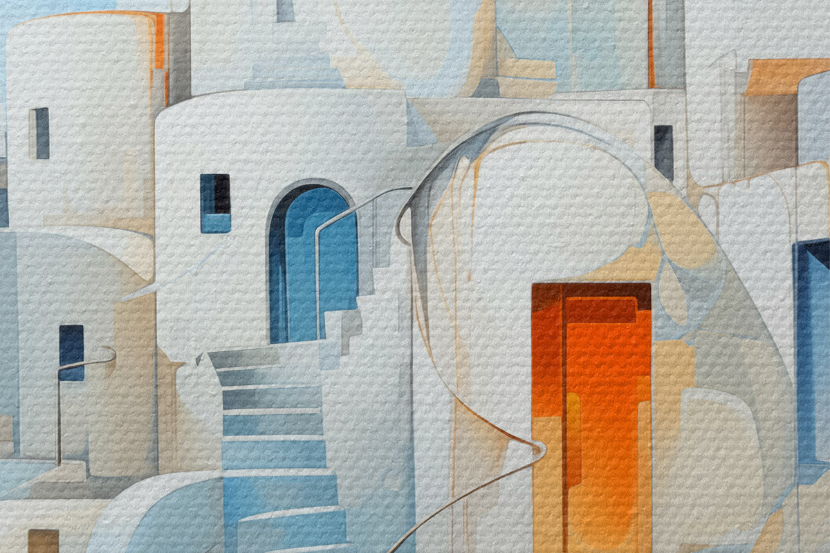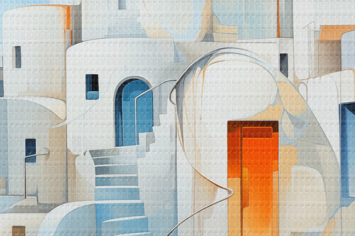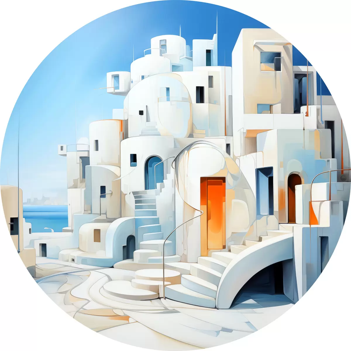 Nuotrauka Abstraktus baltas miestas prie jūros, architektūra, pastatas, mėlyna spalva Nr r39188
