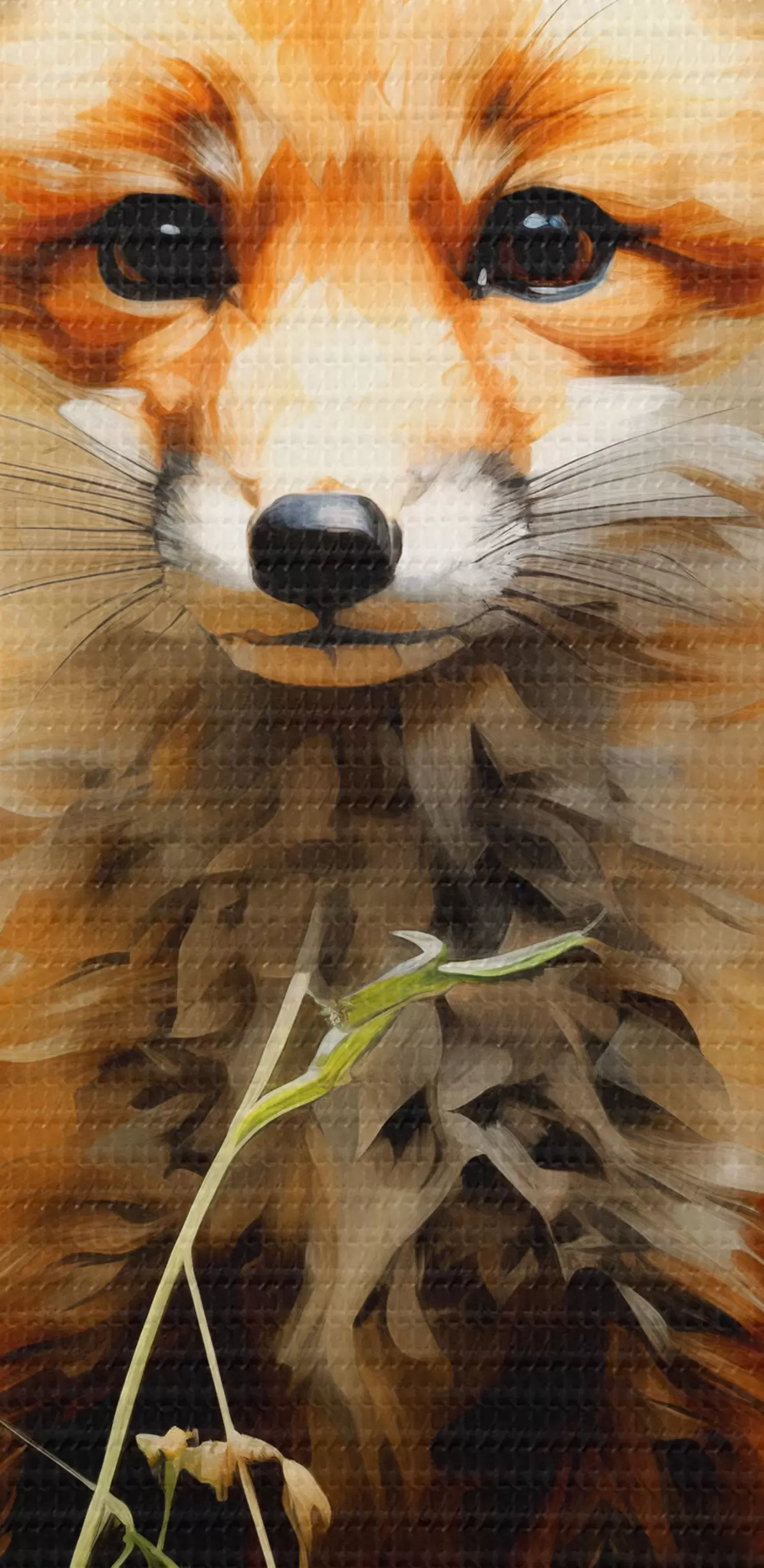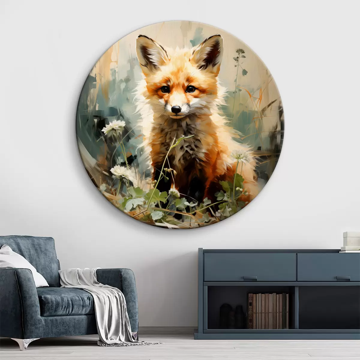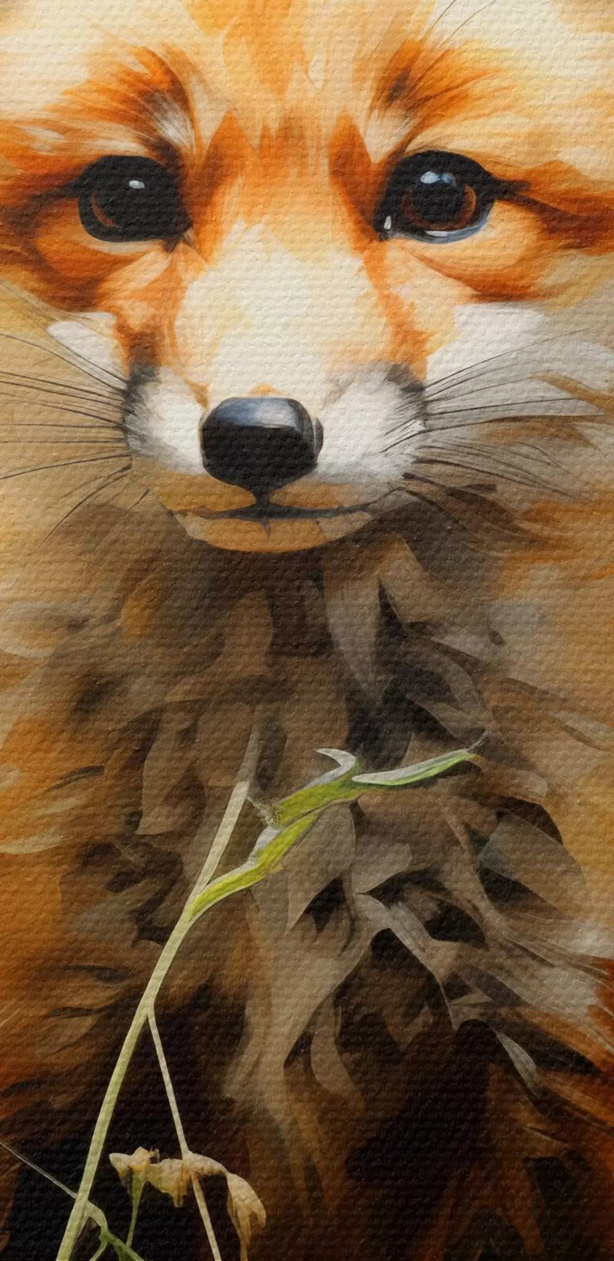 Nuotrauka Raudonoji lapė sėdi sausoje žolėje ant žalio fono aliejinės tapybos Nr r39191