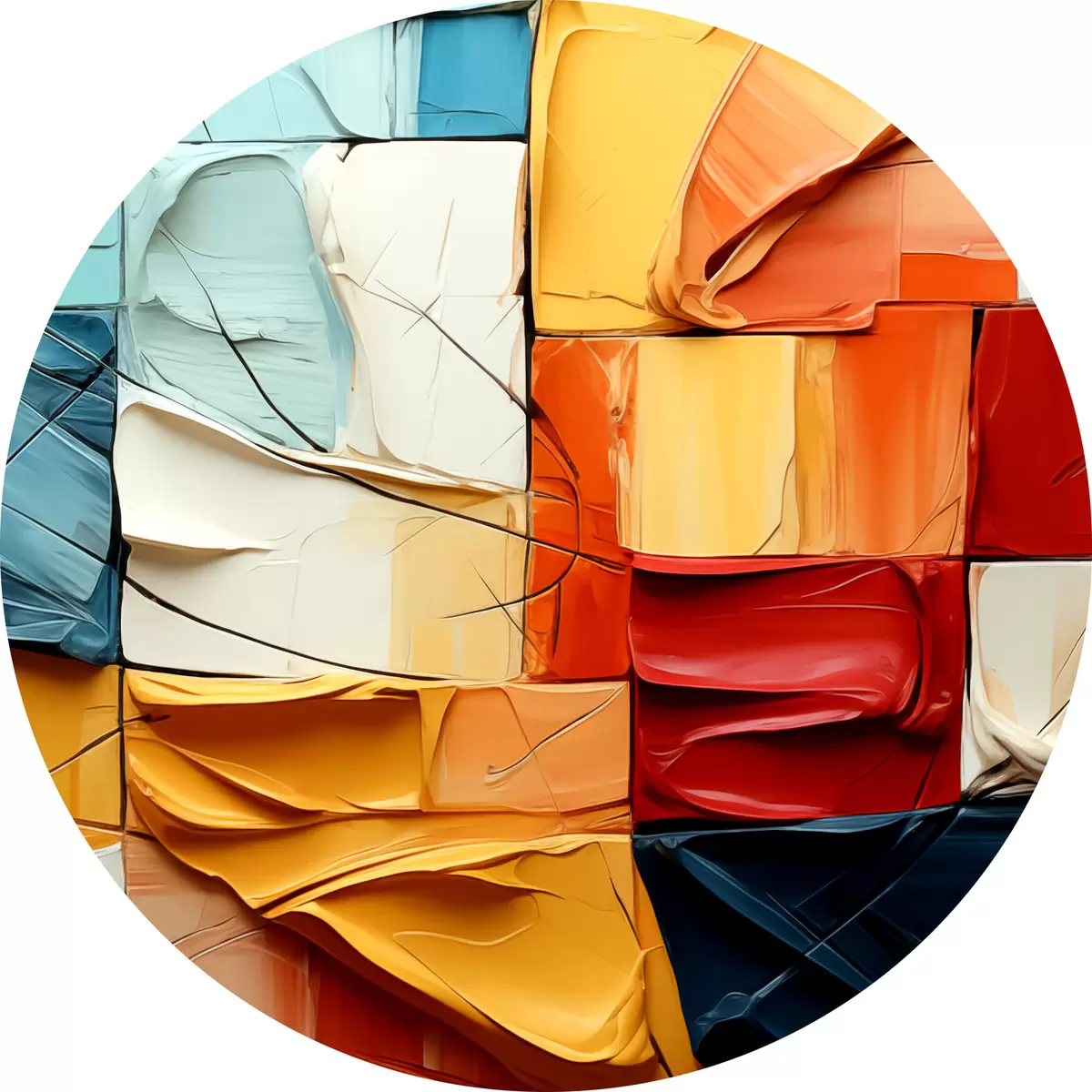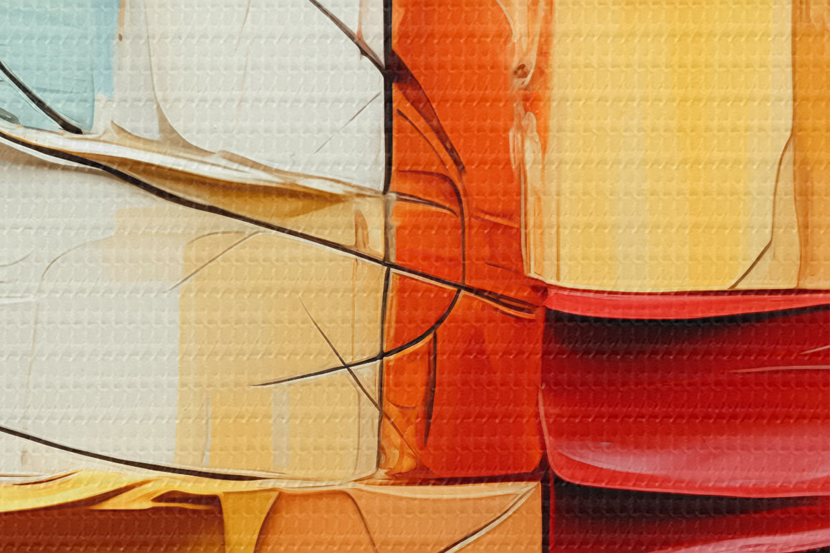 Nuotrauka Ryškių dažų gabalėliai su įtrūkimais, kvadratėliais, kubizmo tapyba Nr r39196