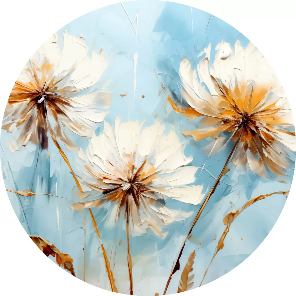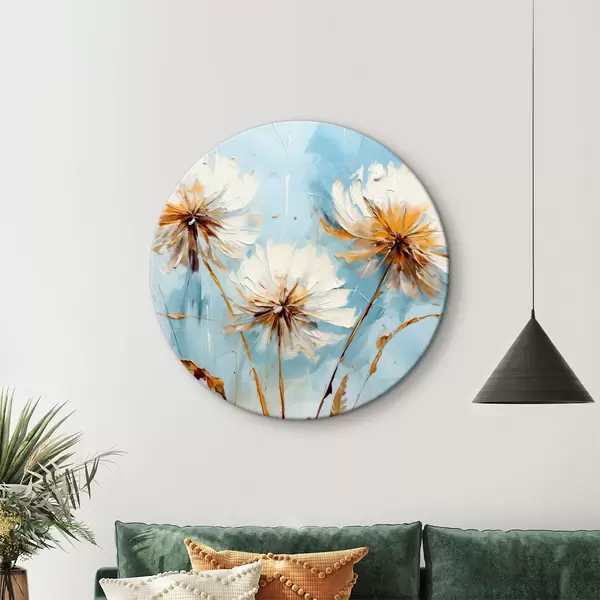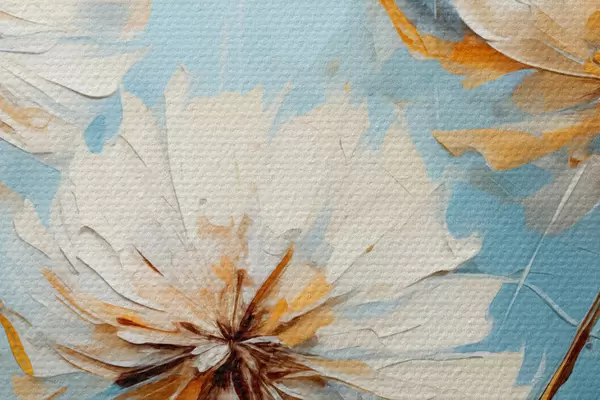 Nuotrauka Baltos kiaulpienės mėlyname fone abstraktaus meno tapyba Nr r39198