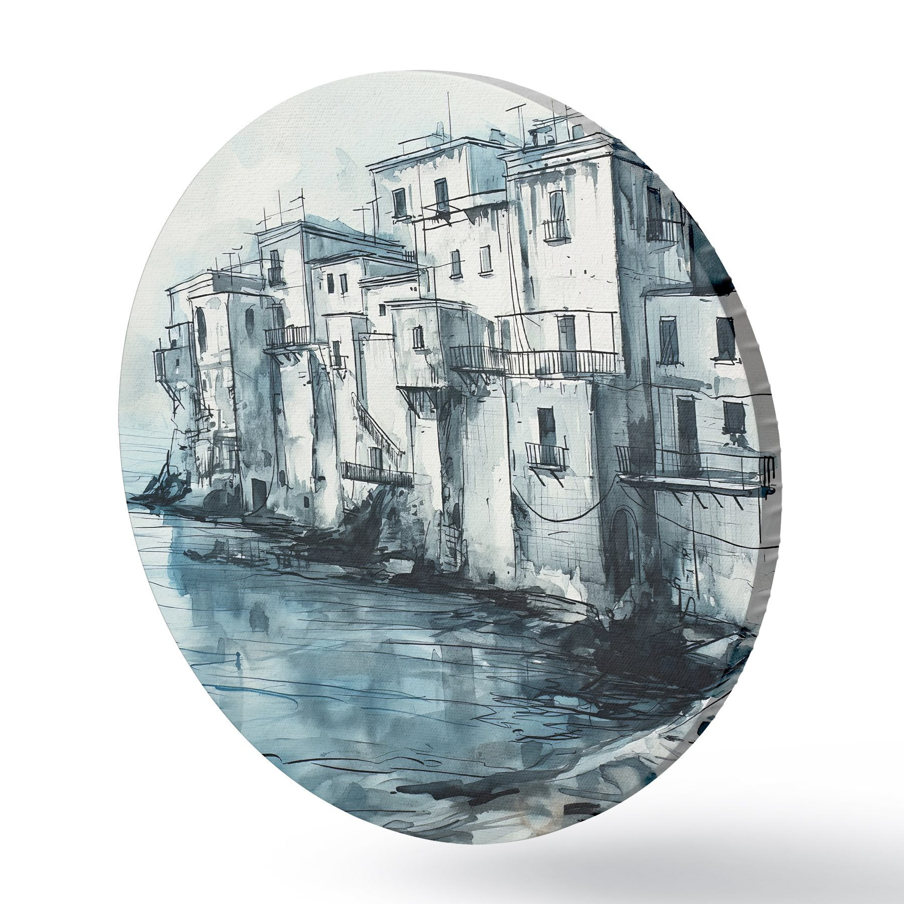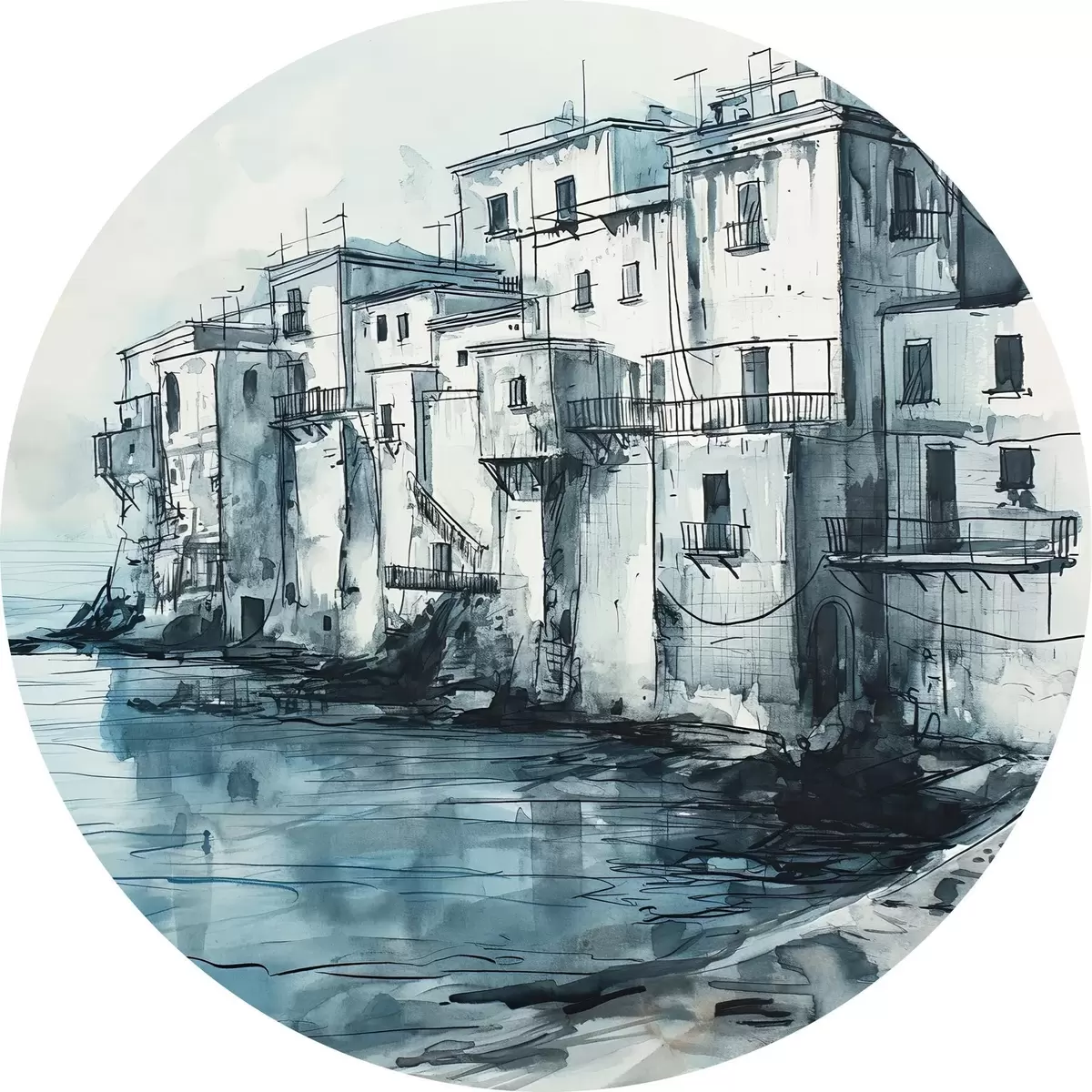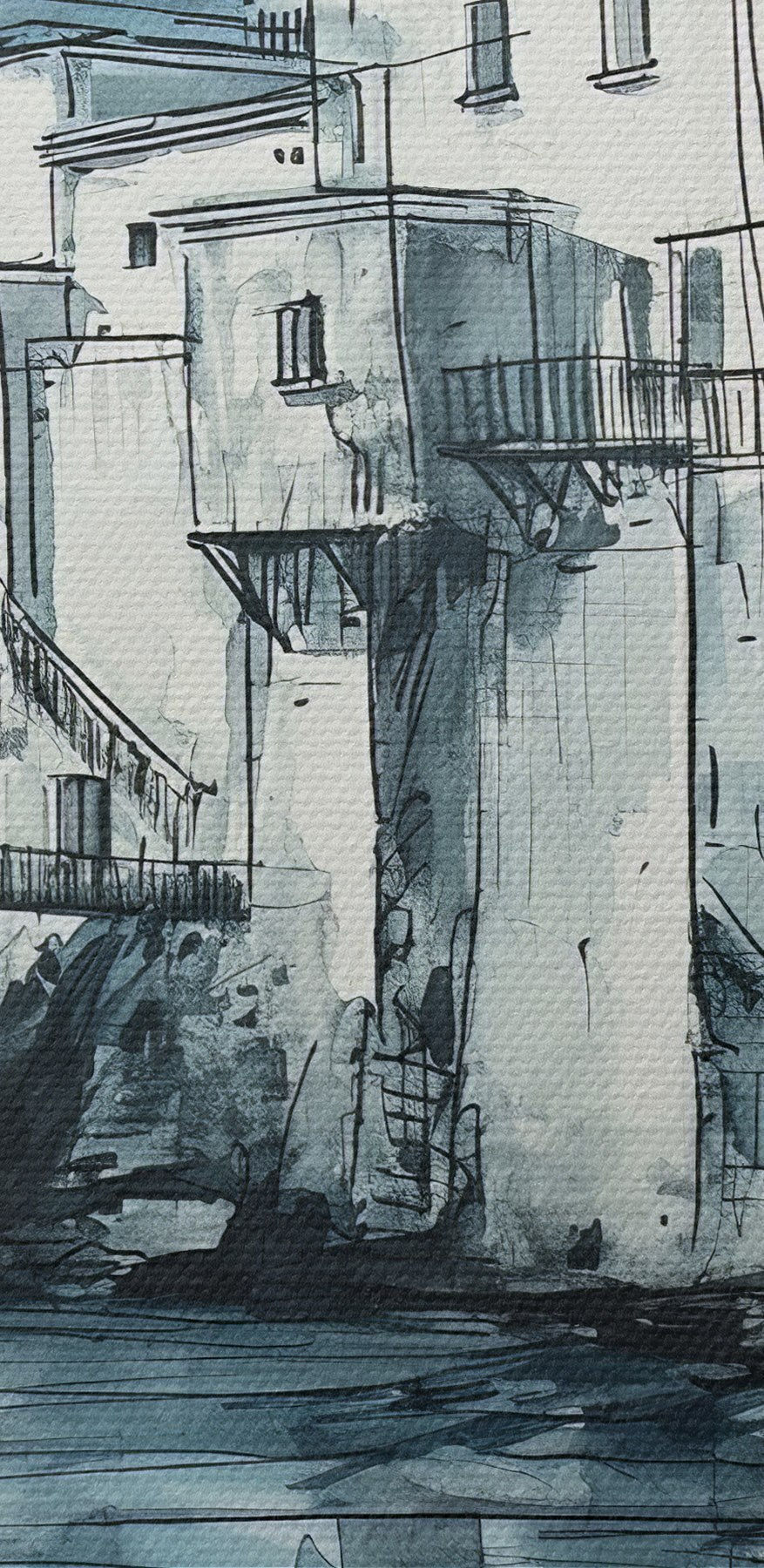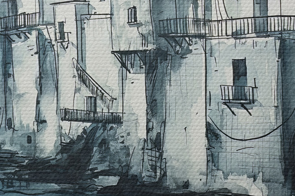 Nuotrauka Akvarelinis miesto eskizas ant vandens mėlynomis spalvomis Nr r39323
