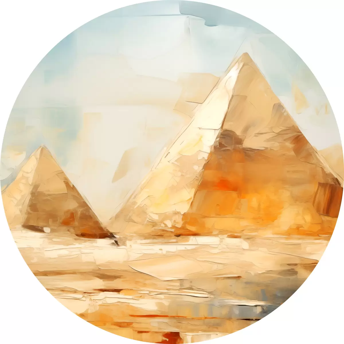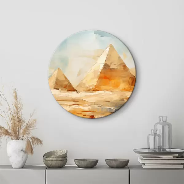 Nuotrauka Dvi Egipto piramidės dykumoje prieš mėlyno dangaus aliejinį paveikslą Nr r39330