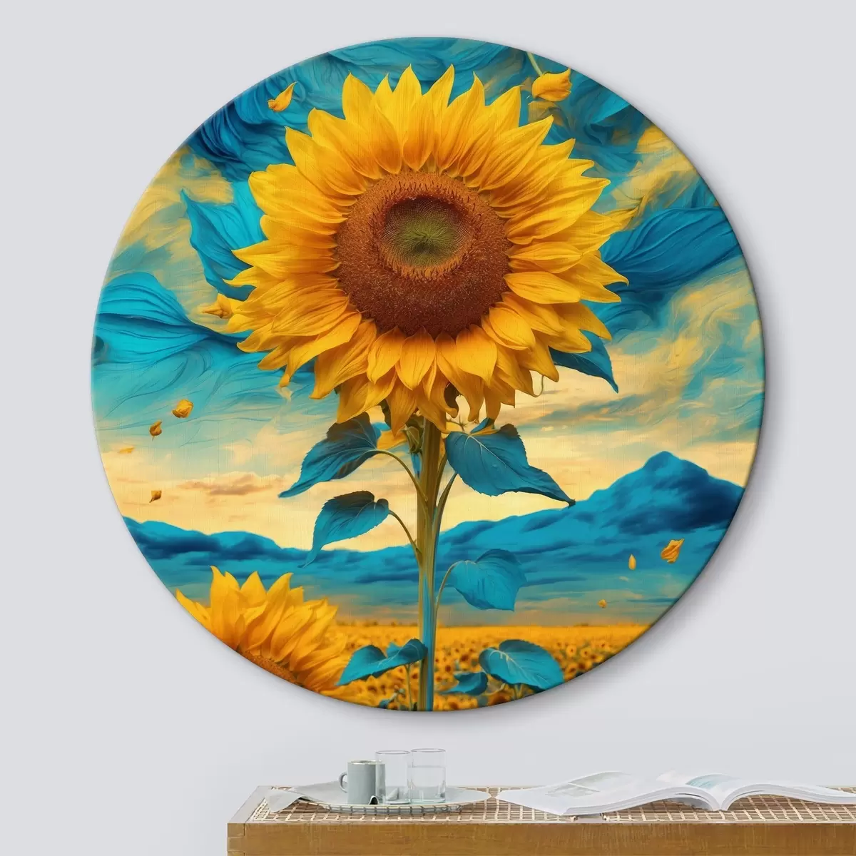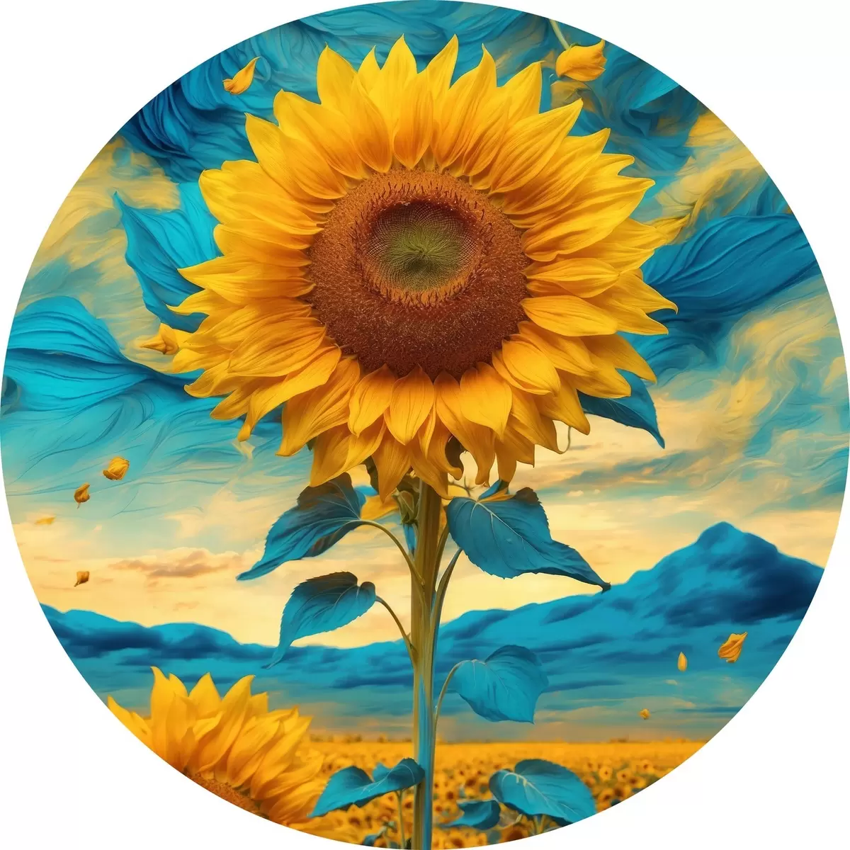 Nuotrauka Saulėgrąžų laukas virš abstraktaus dangaus Nr r39367