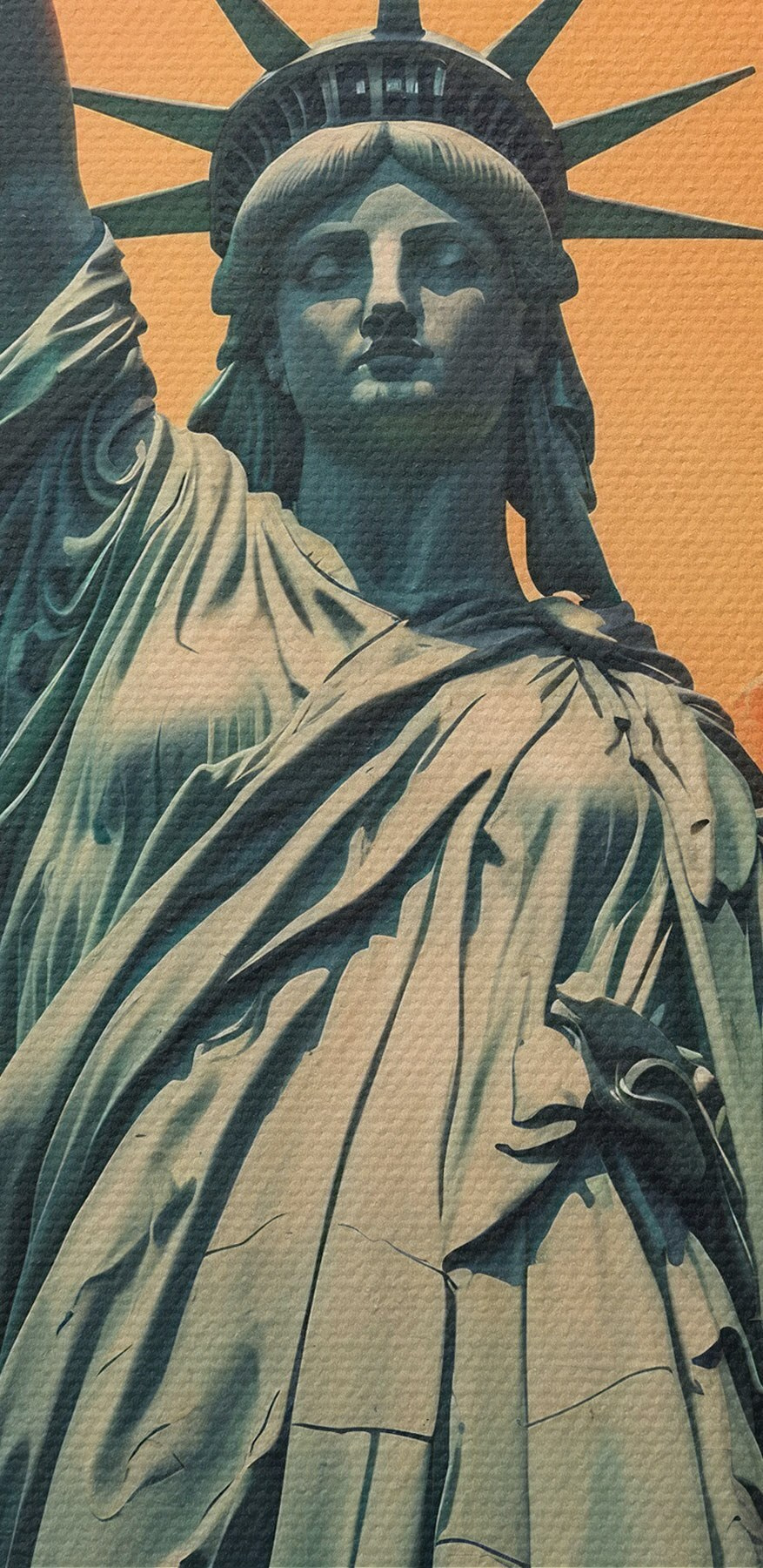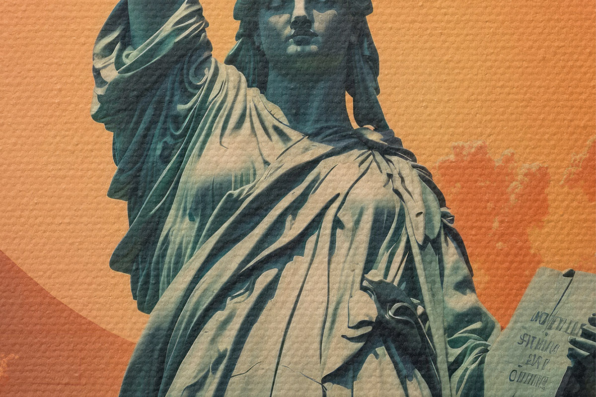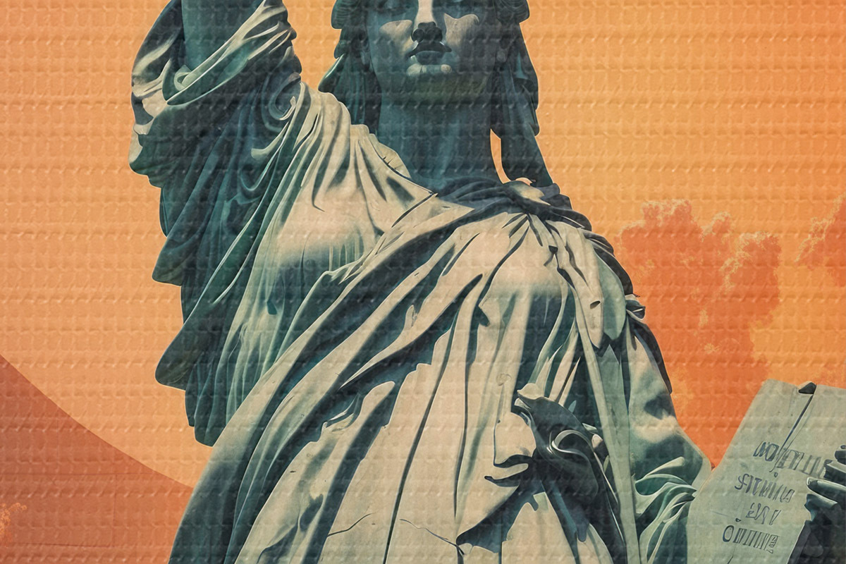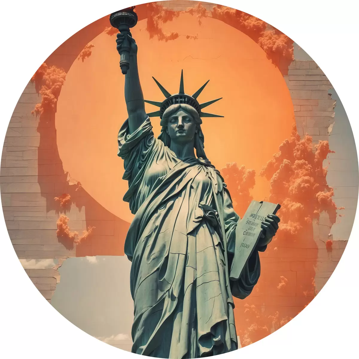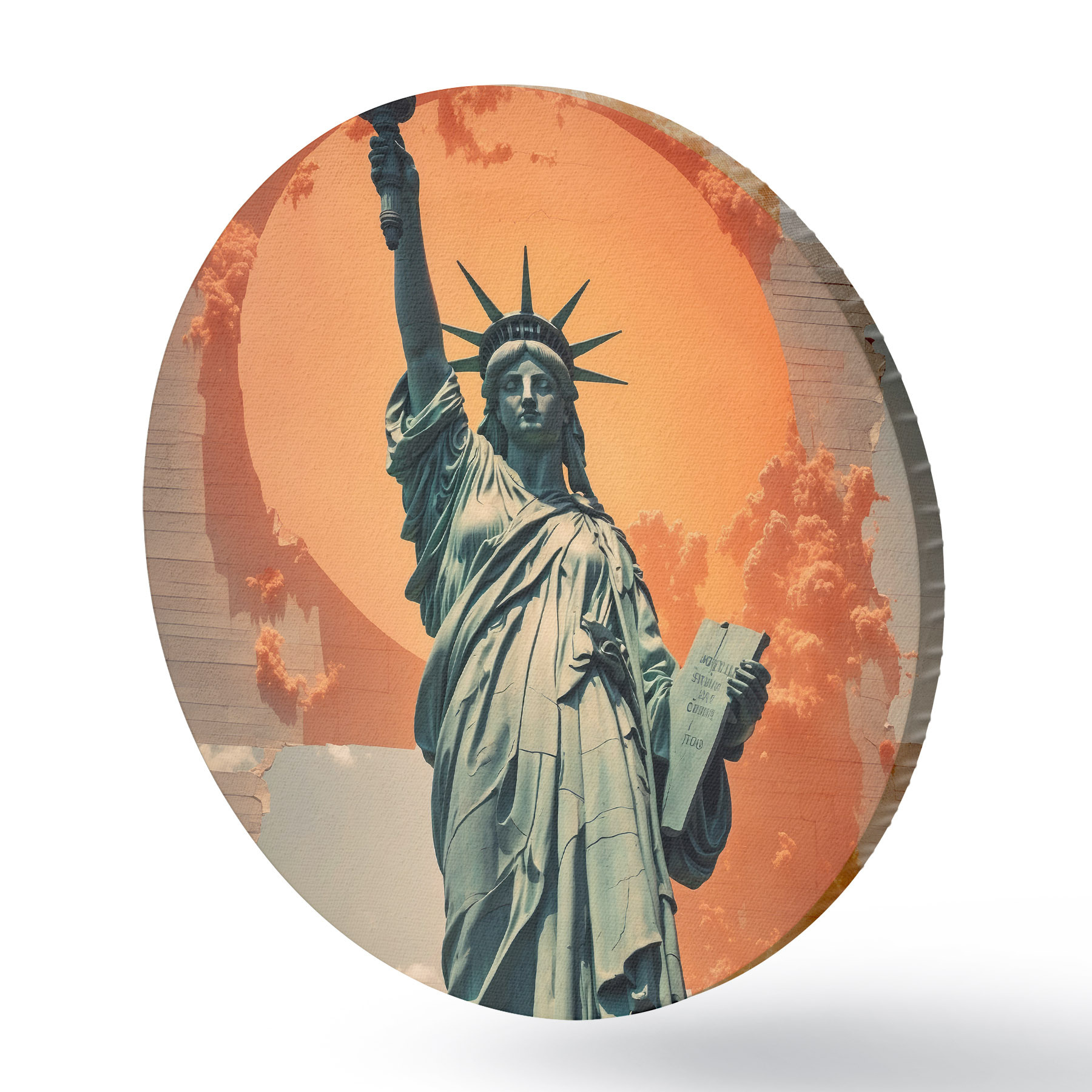 Nuotrauka Laisvės statula oranžiniame saulės fone Nr r39377