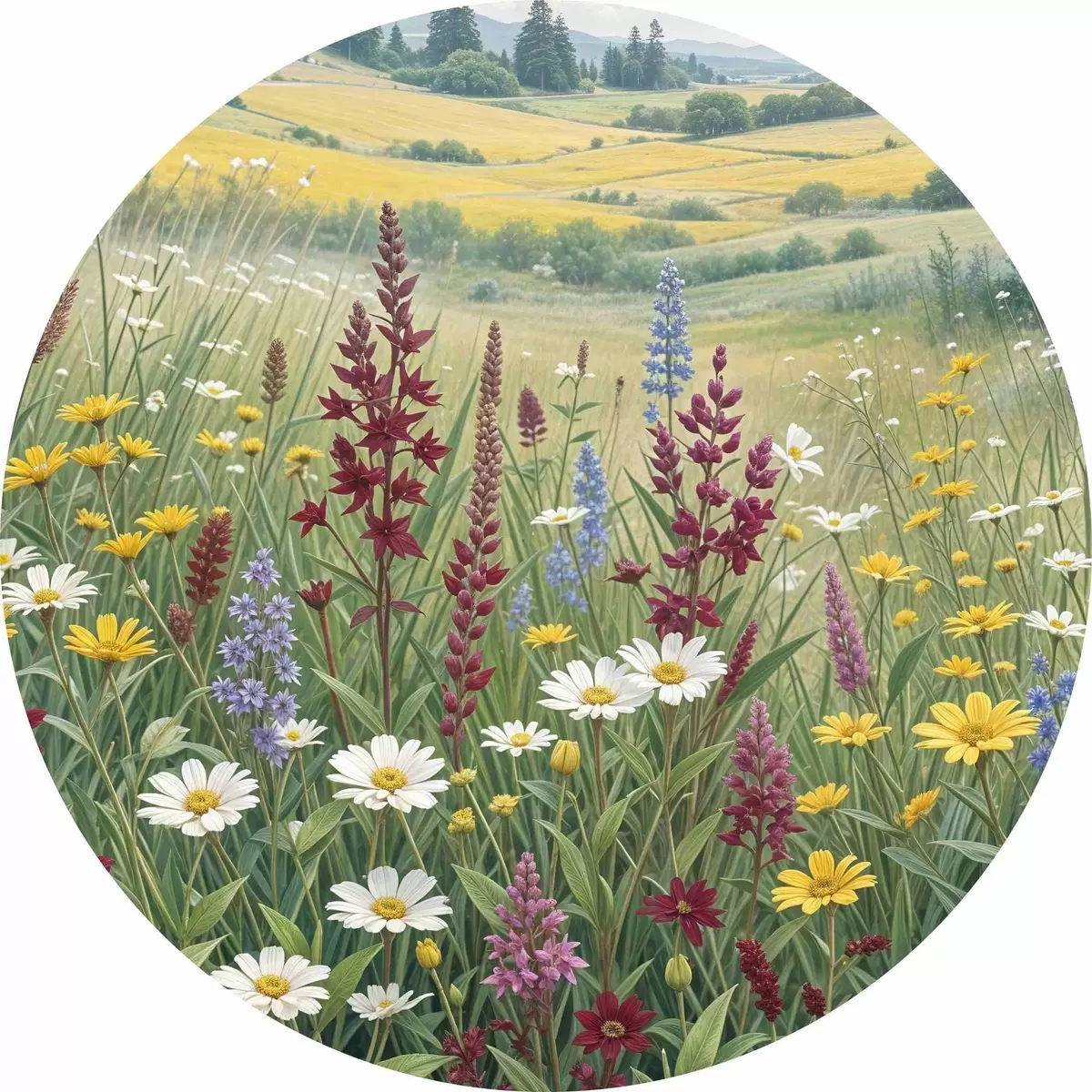 Nuotrauka Sodri, spalvinga pieva, pilna įvairių laukinių gėlių Nr r39407