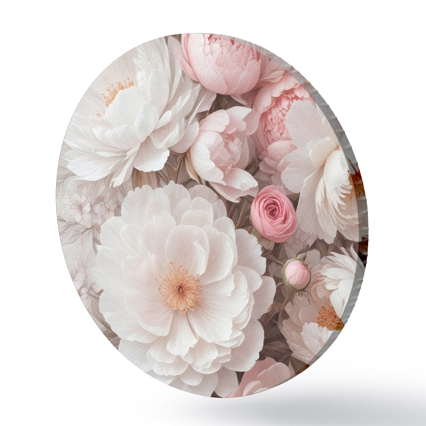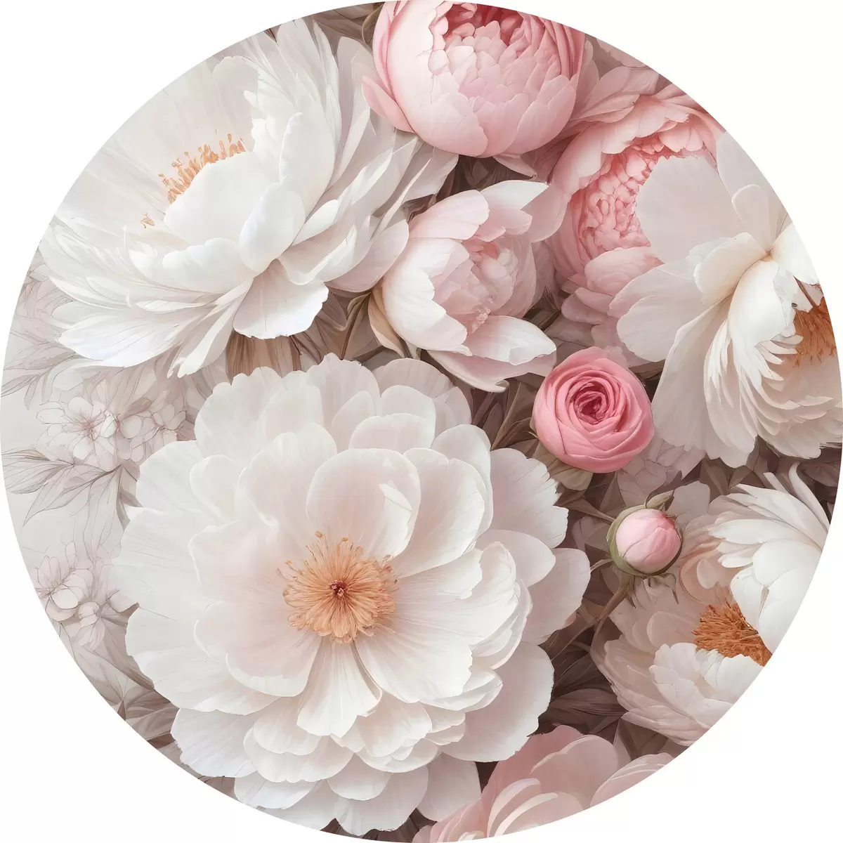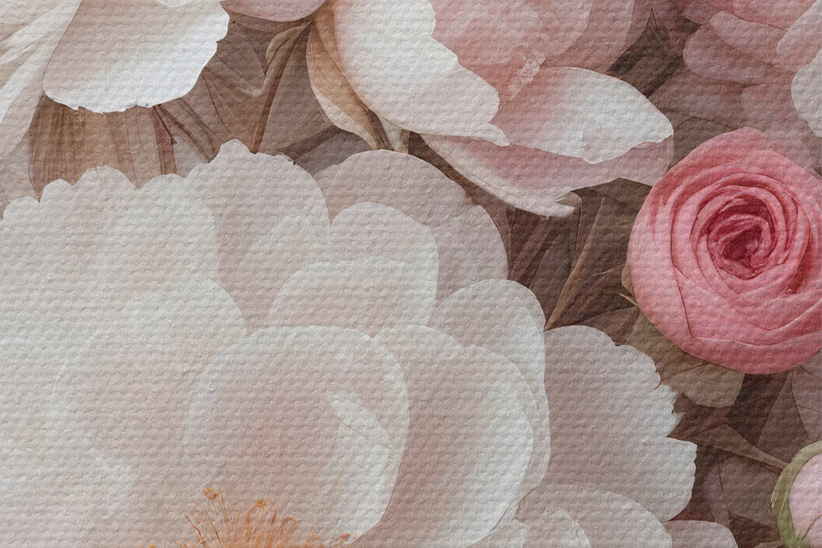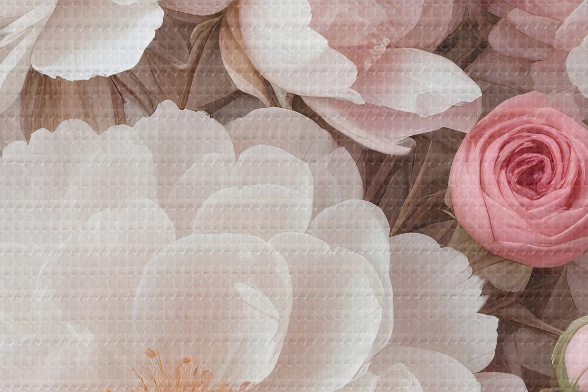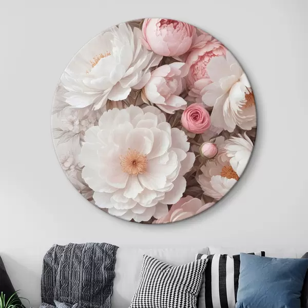 Nuotrauka Didelių baltų ir rausvų bijūnų gėlių puokštė su švelniais, švelniais žiedlapiais šviesiame fone Nr r39408