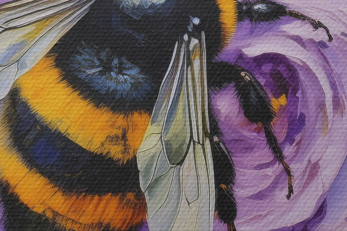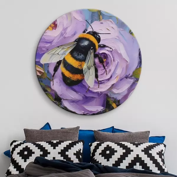 Nuotrauka Bitė ant rožinių bijūnų, vasaros gėlės, aliejinė tapyba, ryškūs teptuko potėpiai Nr r39410