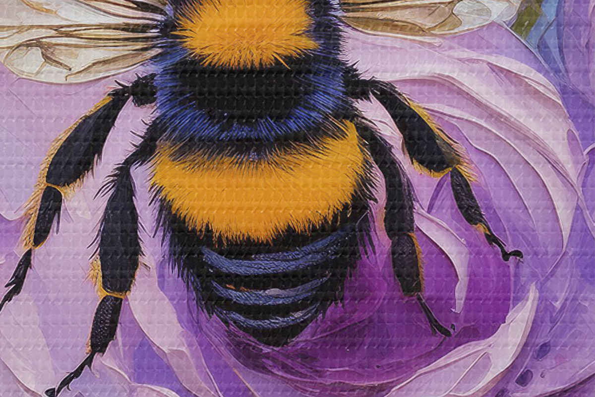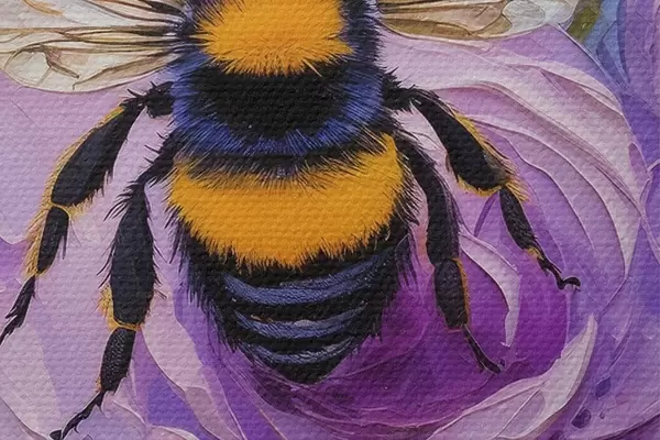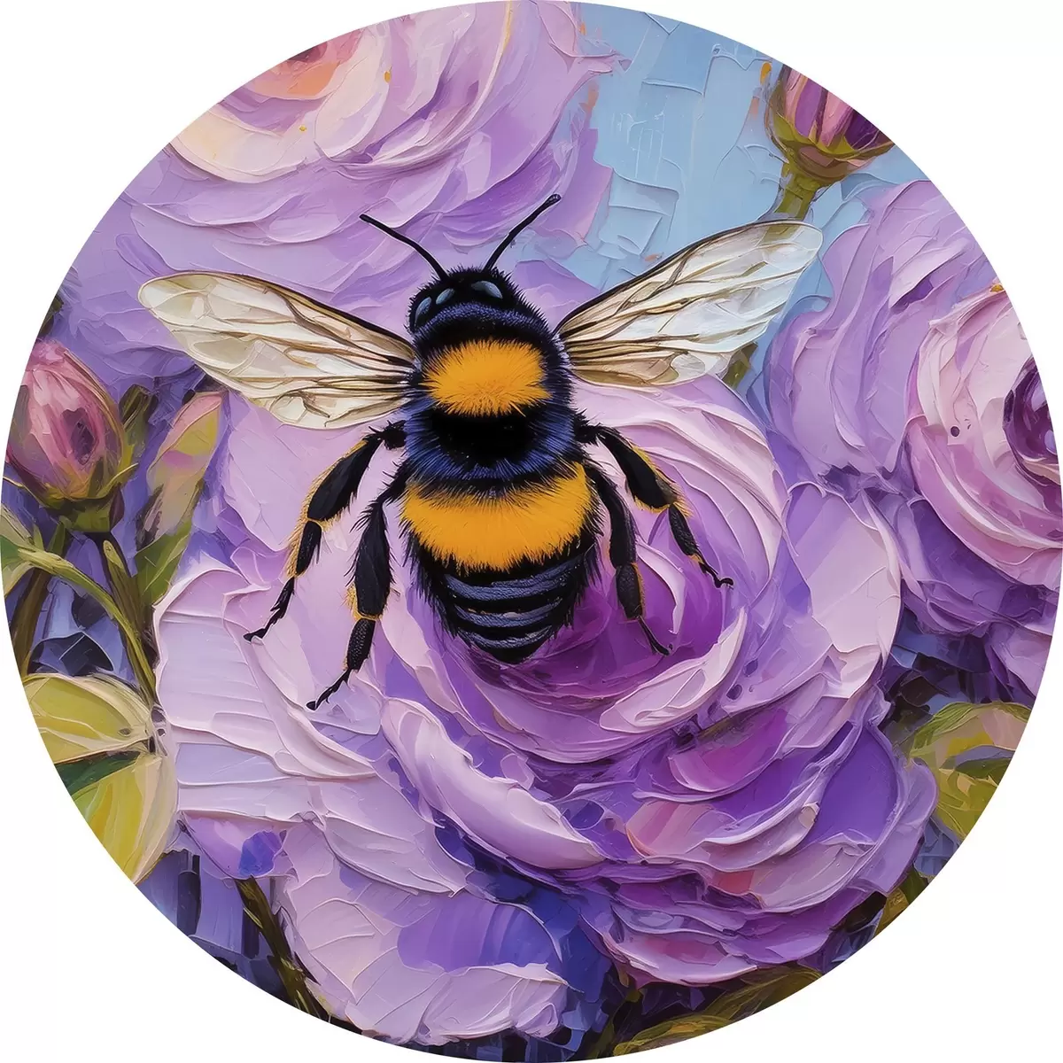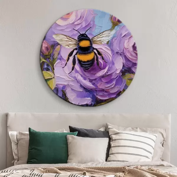 Nuotrauka Bitė ant rožinių bijūnų, spalvingos vasaros gėlės, aliejinė tapyba, ryškūs teptuko potėpiai Nr r39411