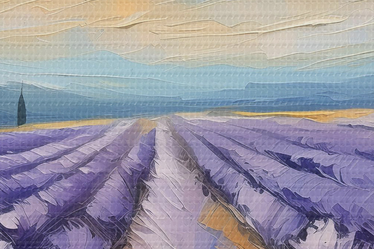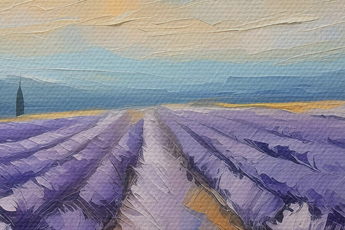 Nuotrauka Levandų laukas, vasaros peizažai, violetinės gėlės, aliejinė tapyba, gražus dangus Nr r39414