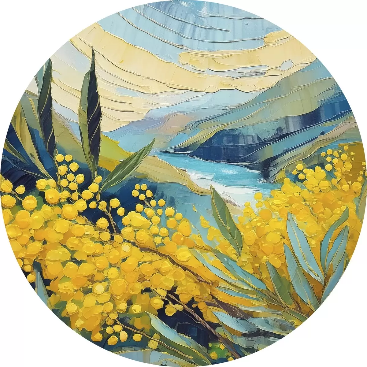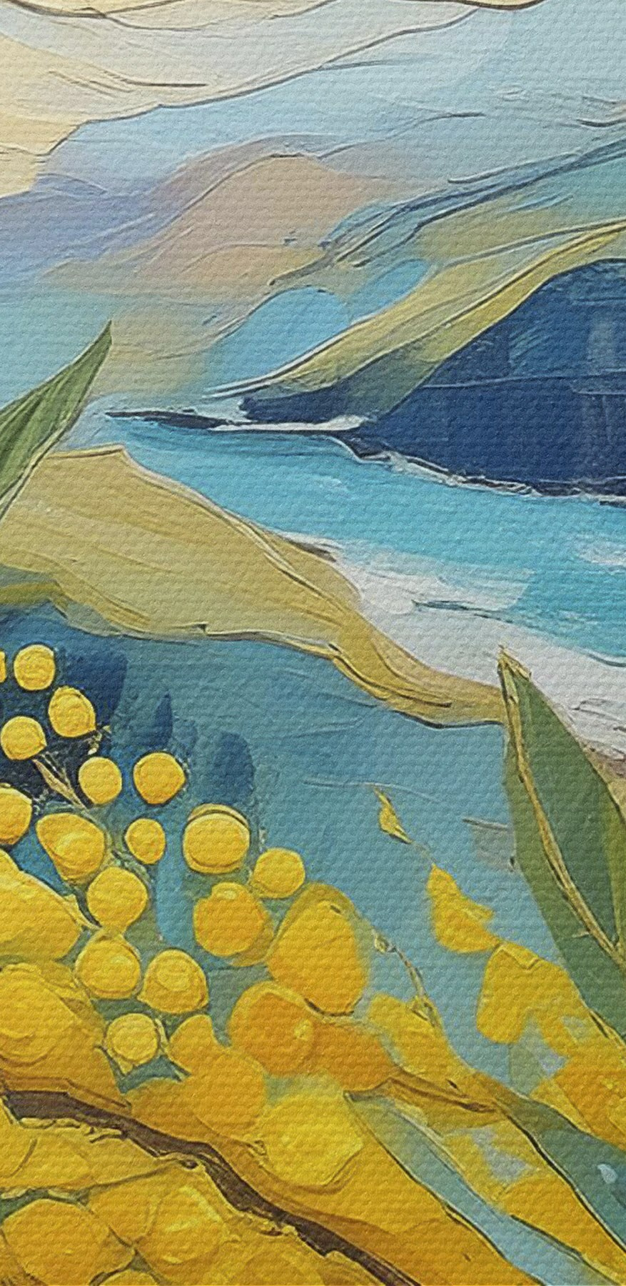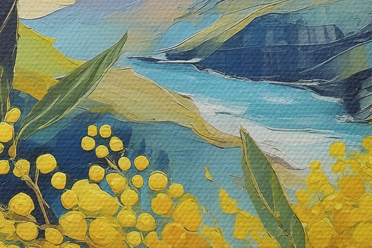Nuotrauka Gamtos peizažas, vasara, geltonos gėlės, aliejinė tapyba, ryškūs potėpiai Nr r39418