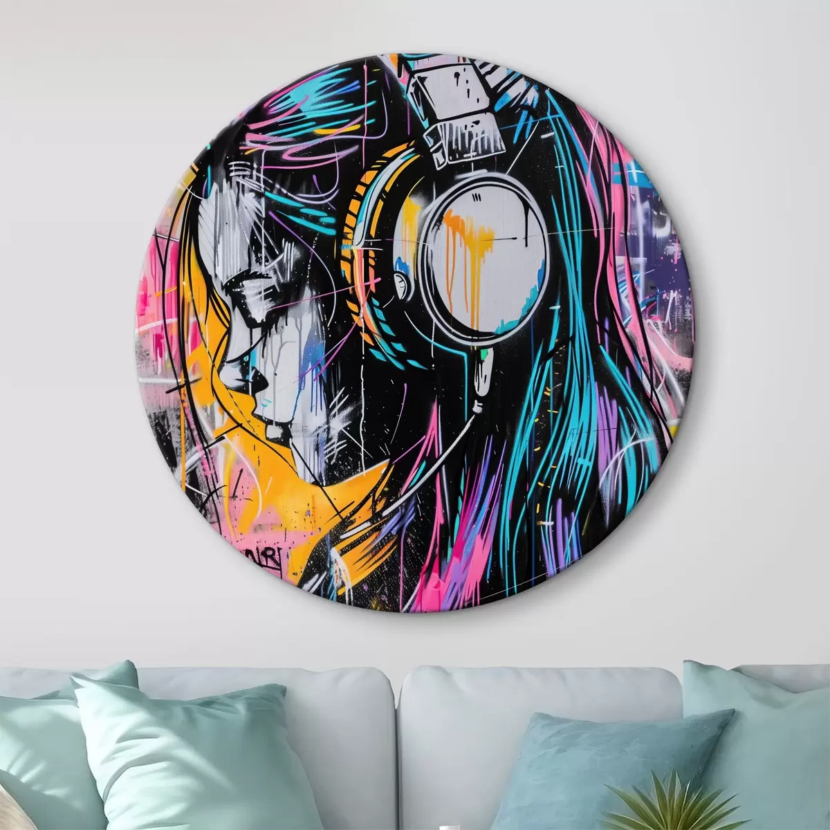 Nuotrauka Moteris su ausinėmis grafiti stiliaus Nr r39443