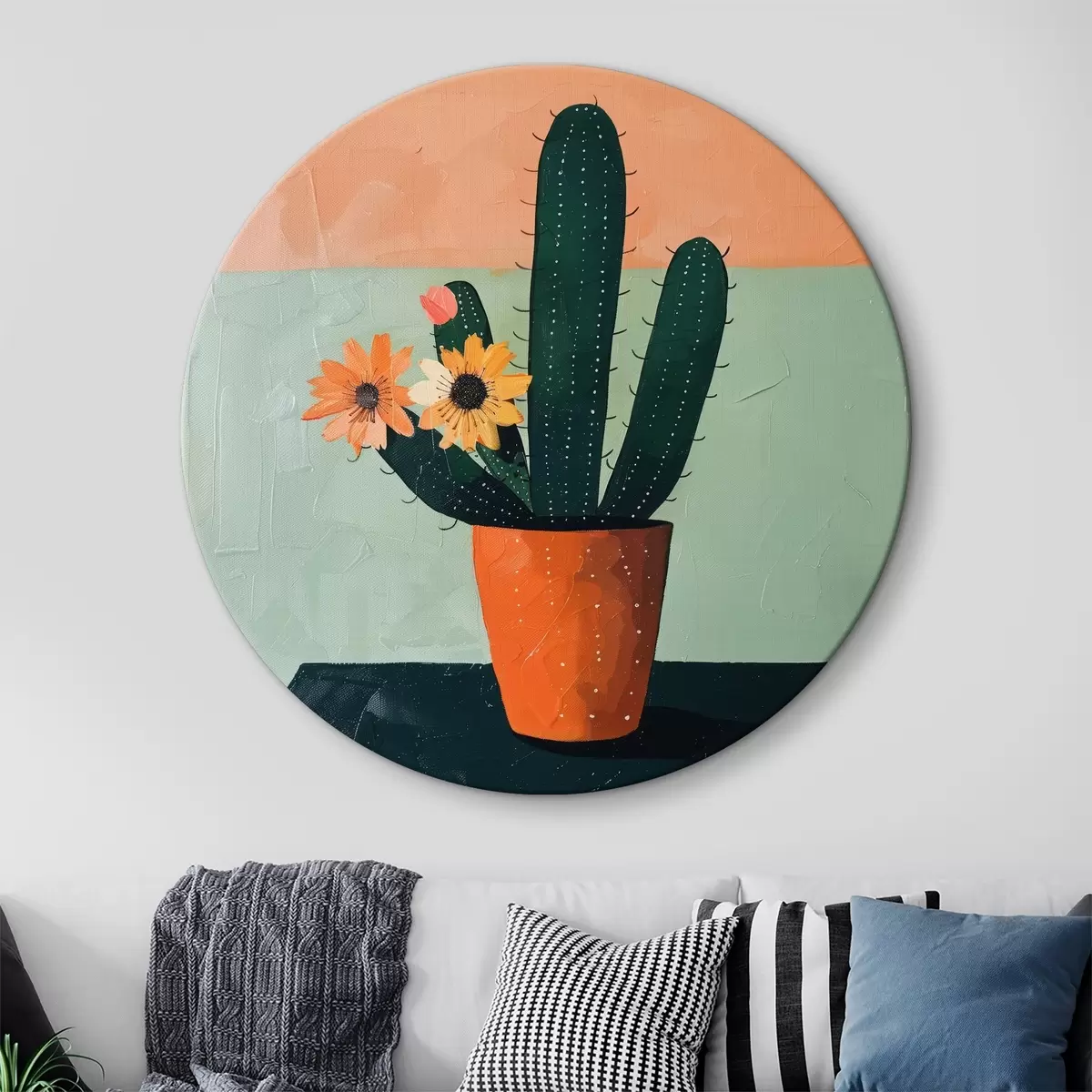 Nuotrauka Minimalistinis vieno kaktuso paveikslas su gėlėmis ryškioje spalvų paletėje. Nr r39452