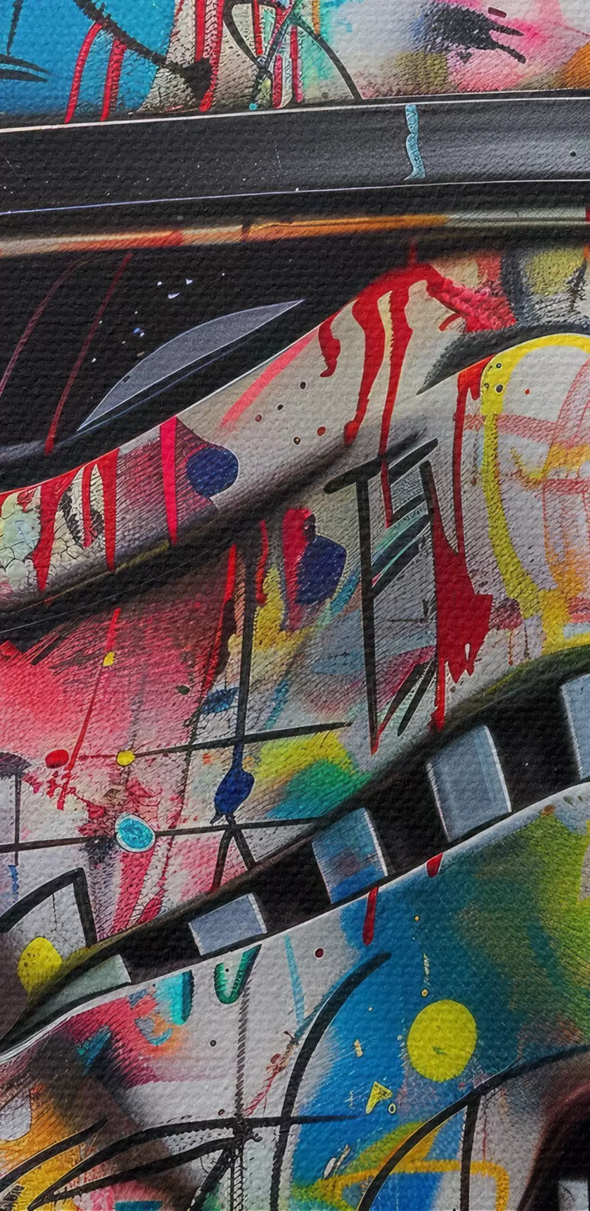 Nuotrauka Žvaigždžių karų šturmo šalmas, padengtas ryškiu gatvės menu ir grafičiais Nr r39453