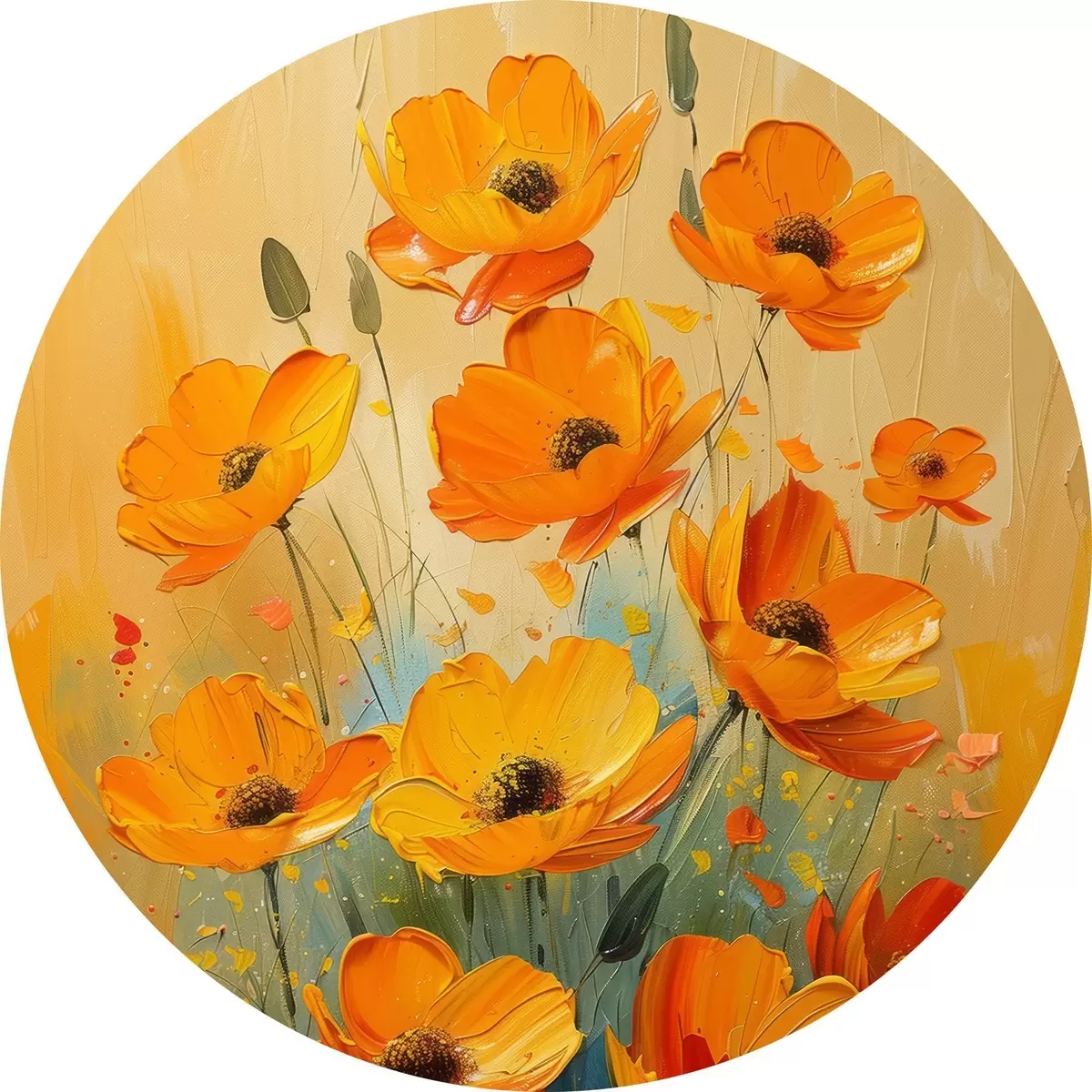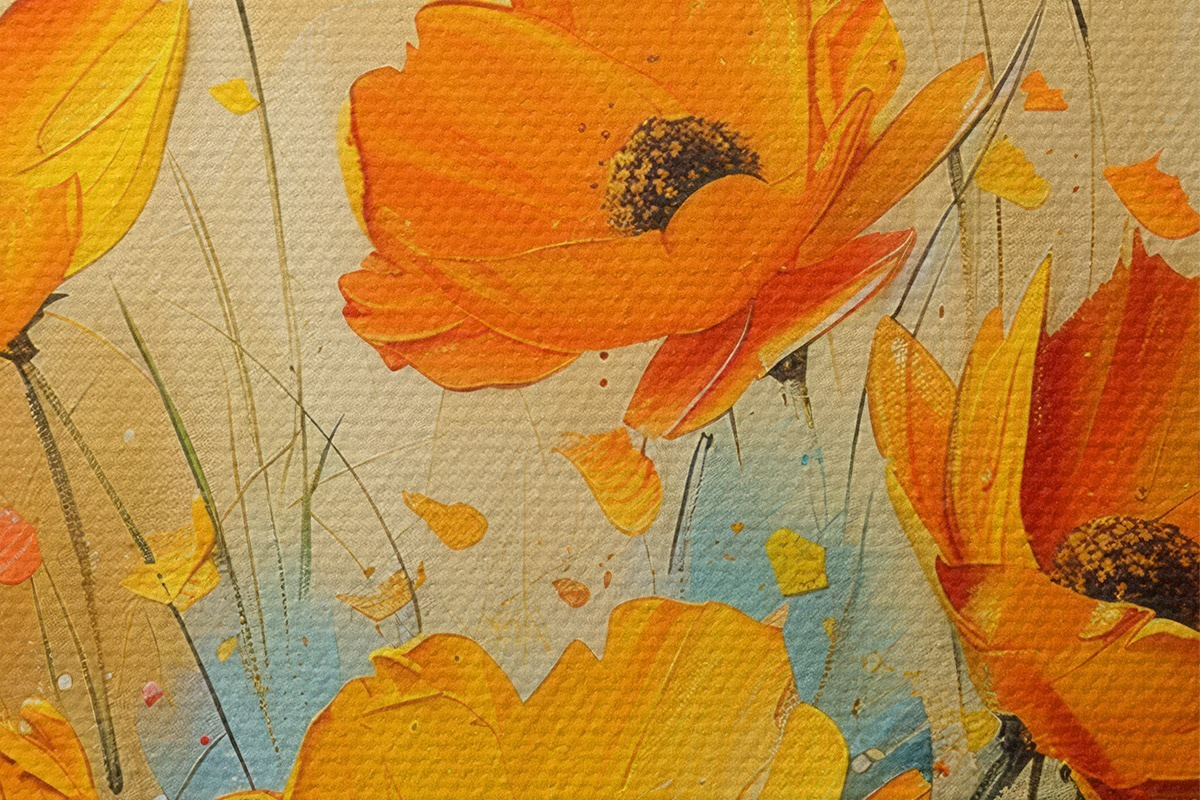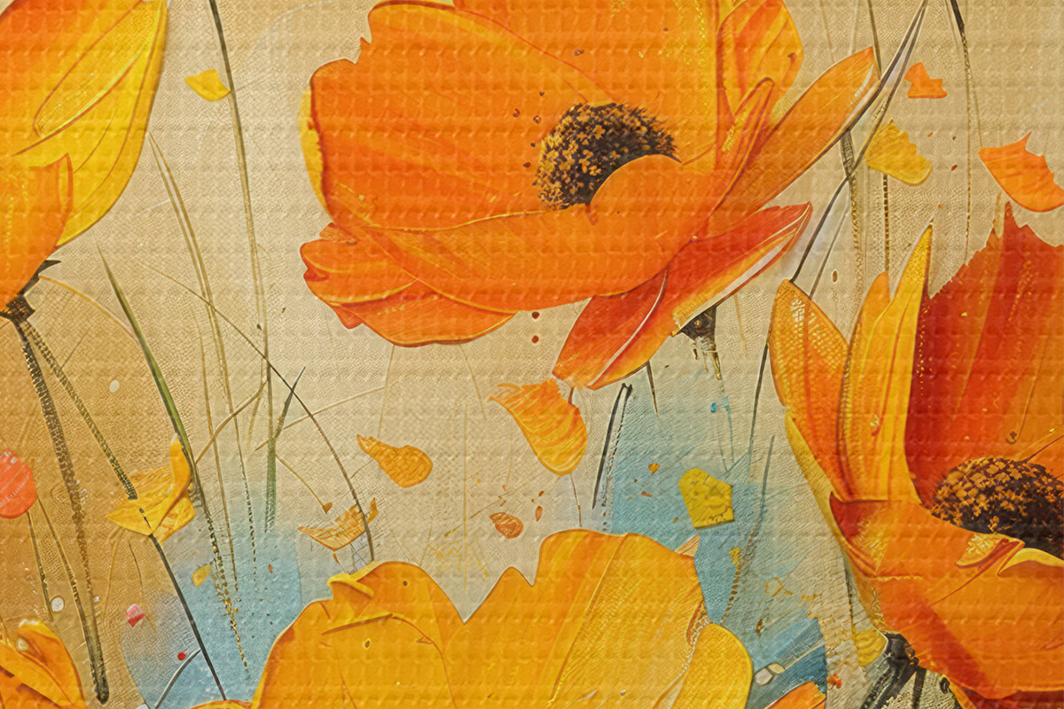 Nuotrauka Drąsūs ryškiai geltonų ir oranžinių aguonų potėpiai Nr r39455
