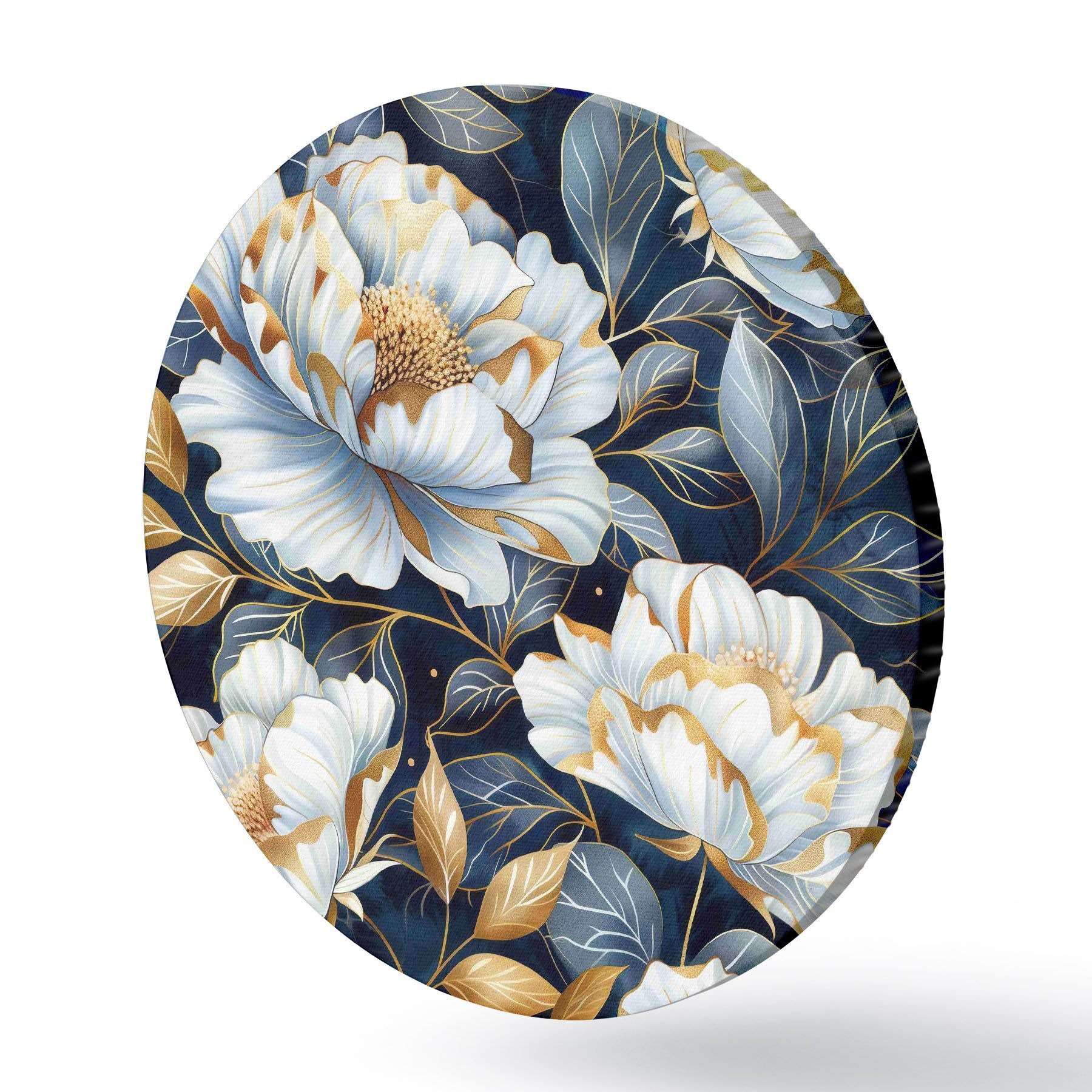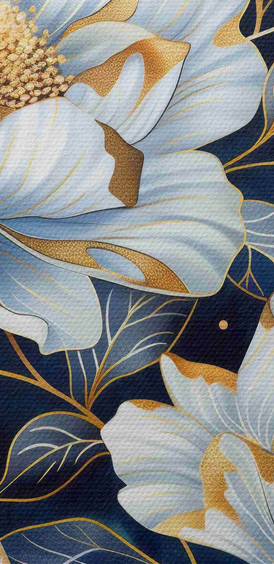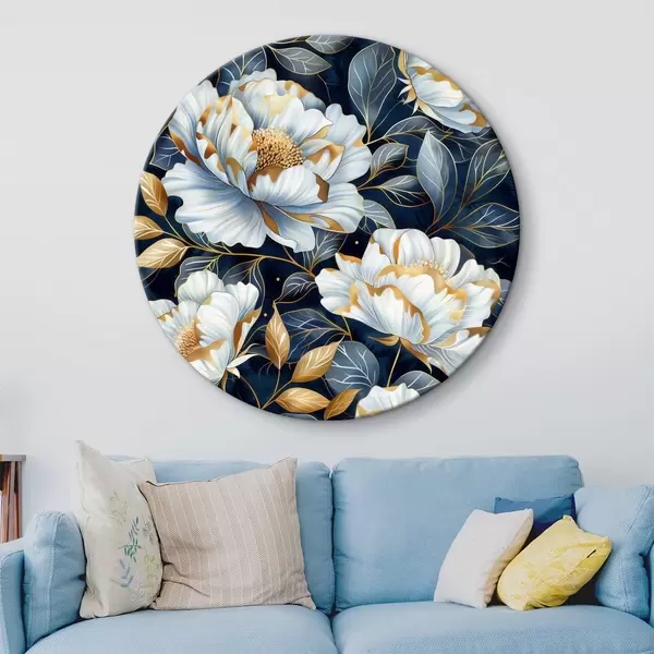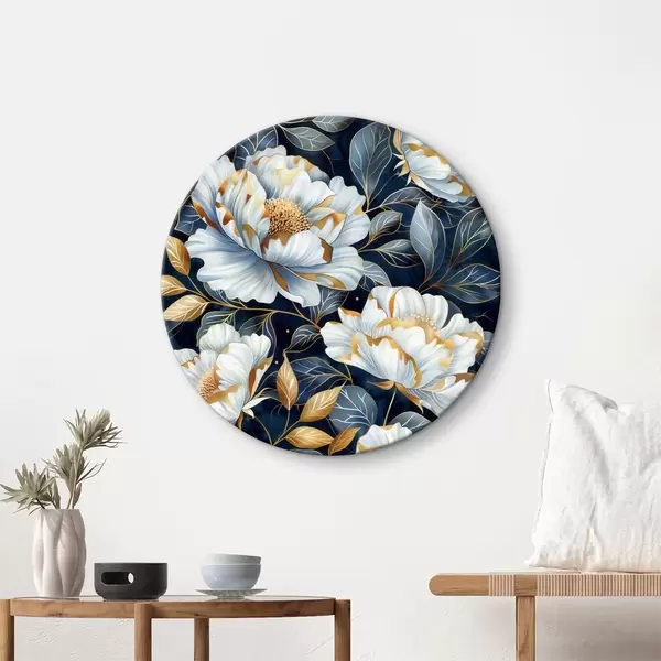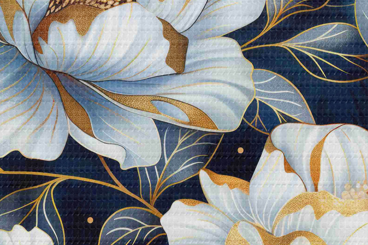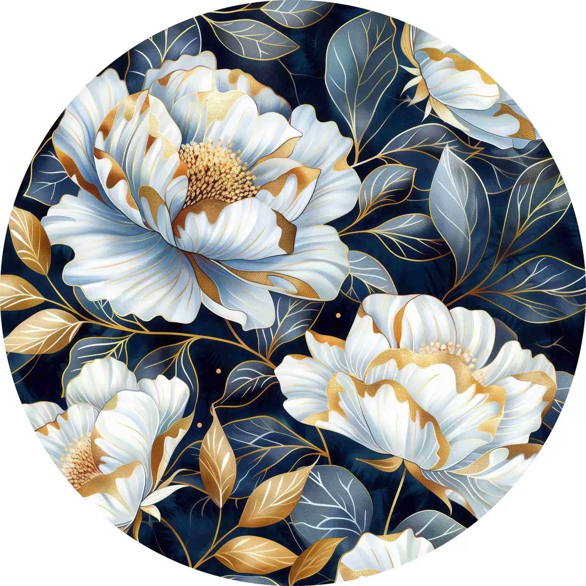 Nuotrauka Balti bijūnai ir rožės su kontūrais, mėlynais lapais ir gėlių raštais fone Nr r39457
