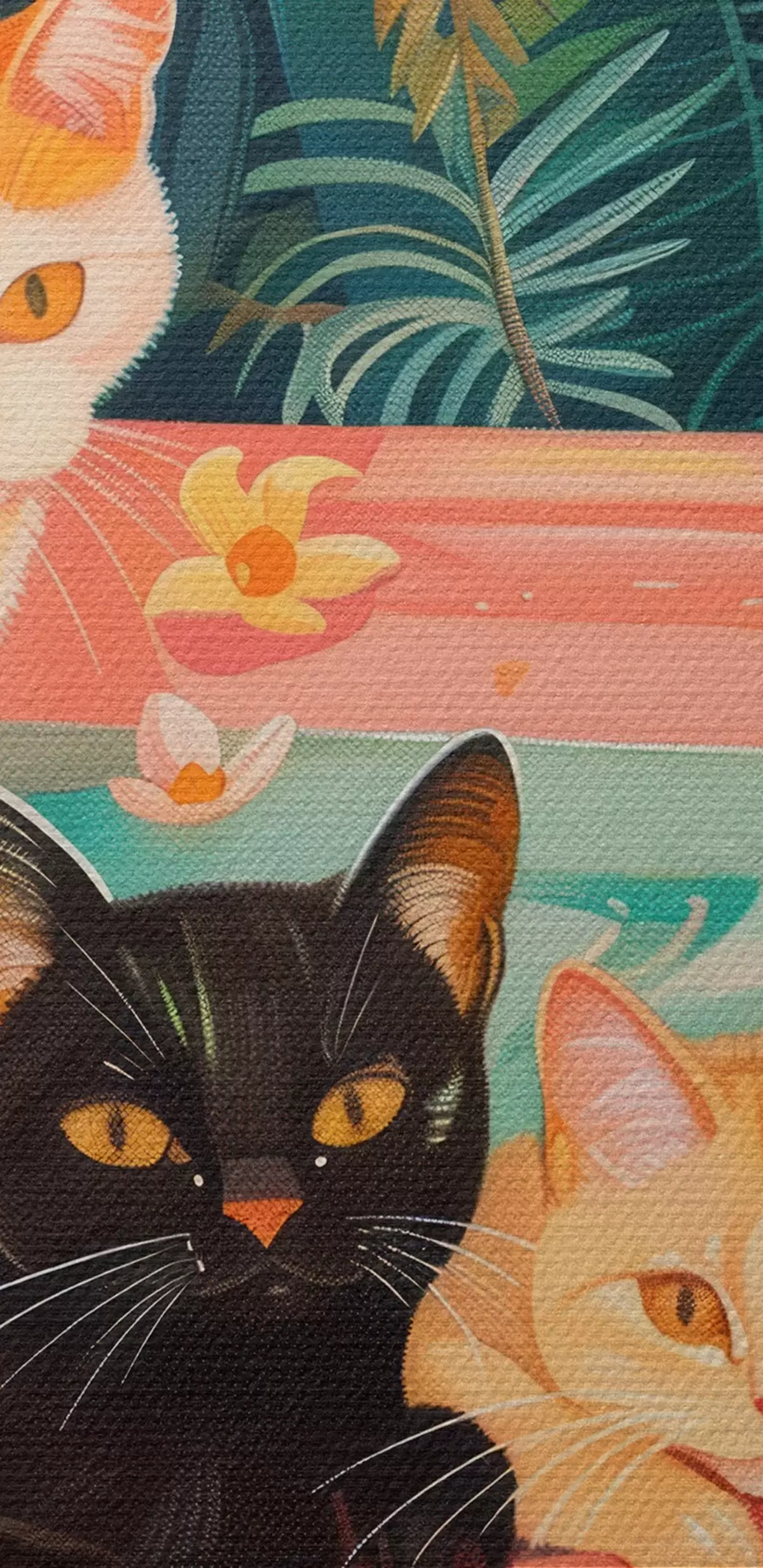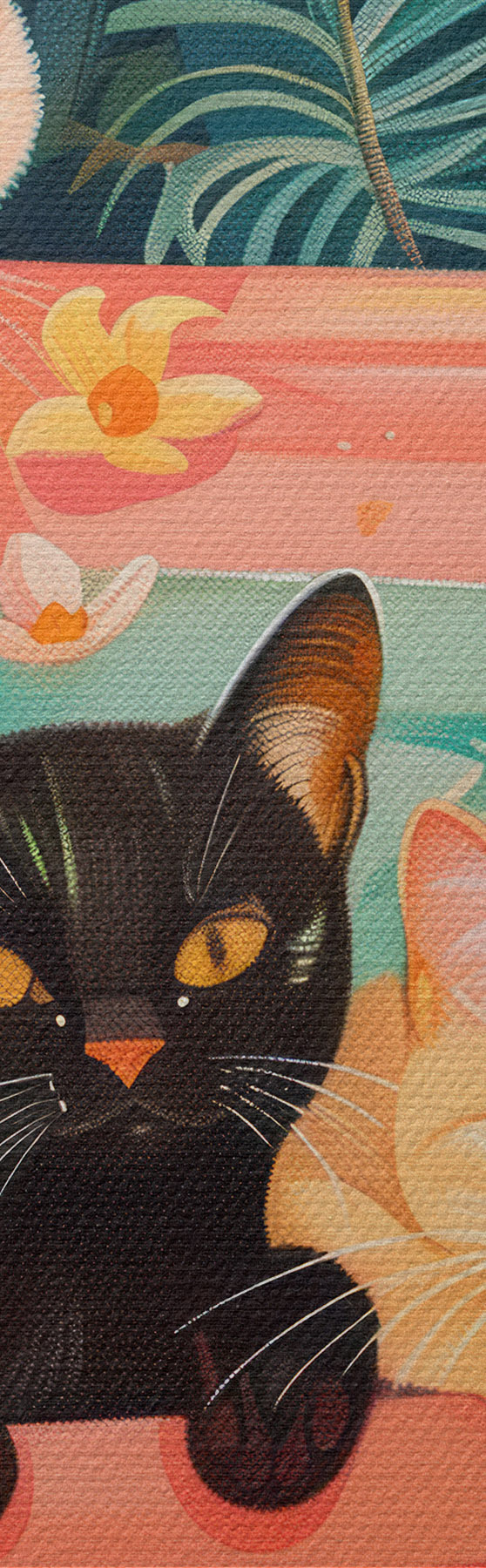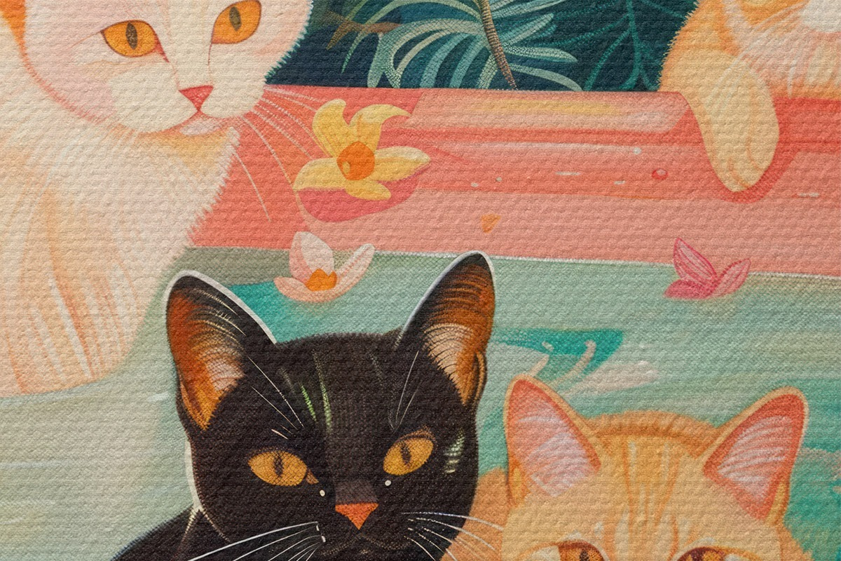 Nuotrauka Katės rožinėje vonioje su žaliais lapais, džiunglių atmosfera Nr r39465