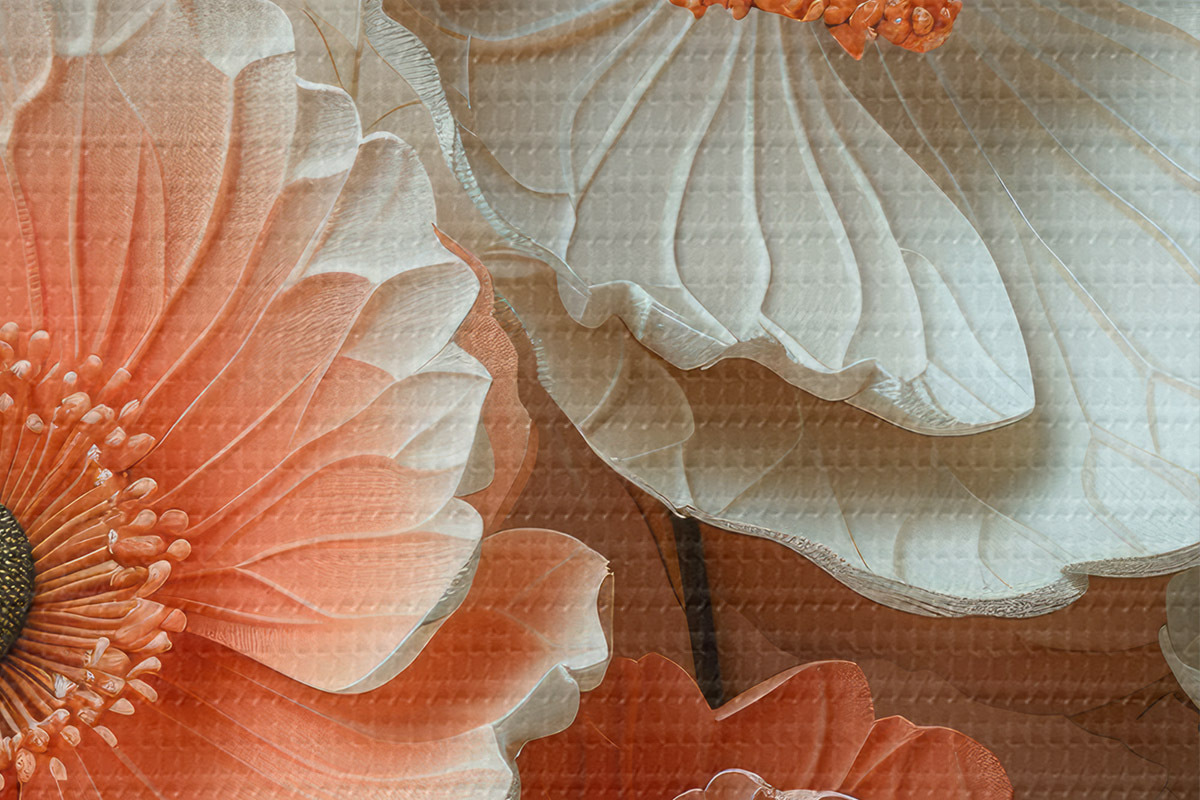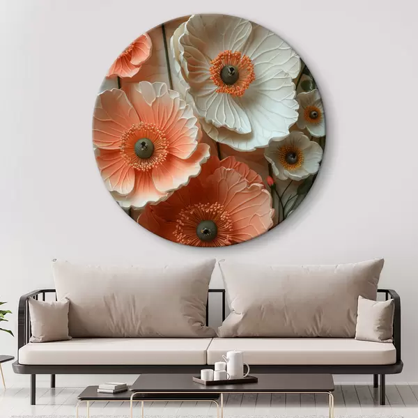 Nuotrauka Neutralios spalvos minkštos skulptūros stiliaus aguonos su šviesiai rožiniais ir šviesiai oranžiniais žiedpumpuriais Nr r39466