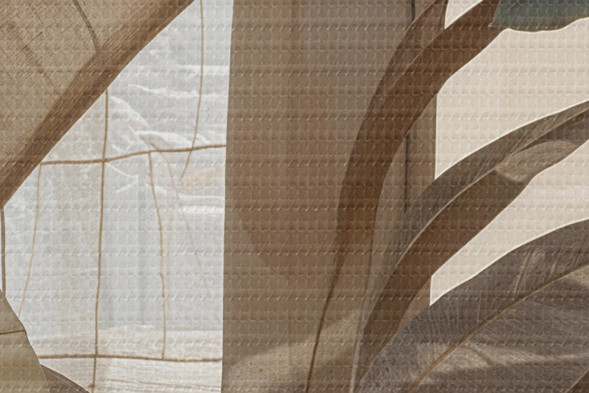 Nuotrauka Atogrąžų lapų rašto vaizdas iš arti su įvairiais atspalviais, sukuriantis abstraktų ir tekstūruotą dizainą Nr r39497