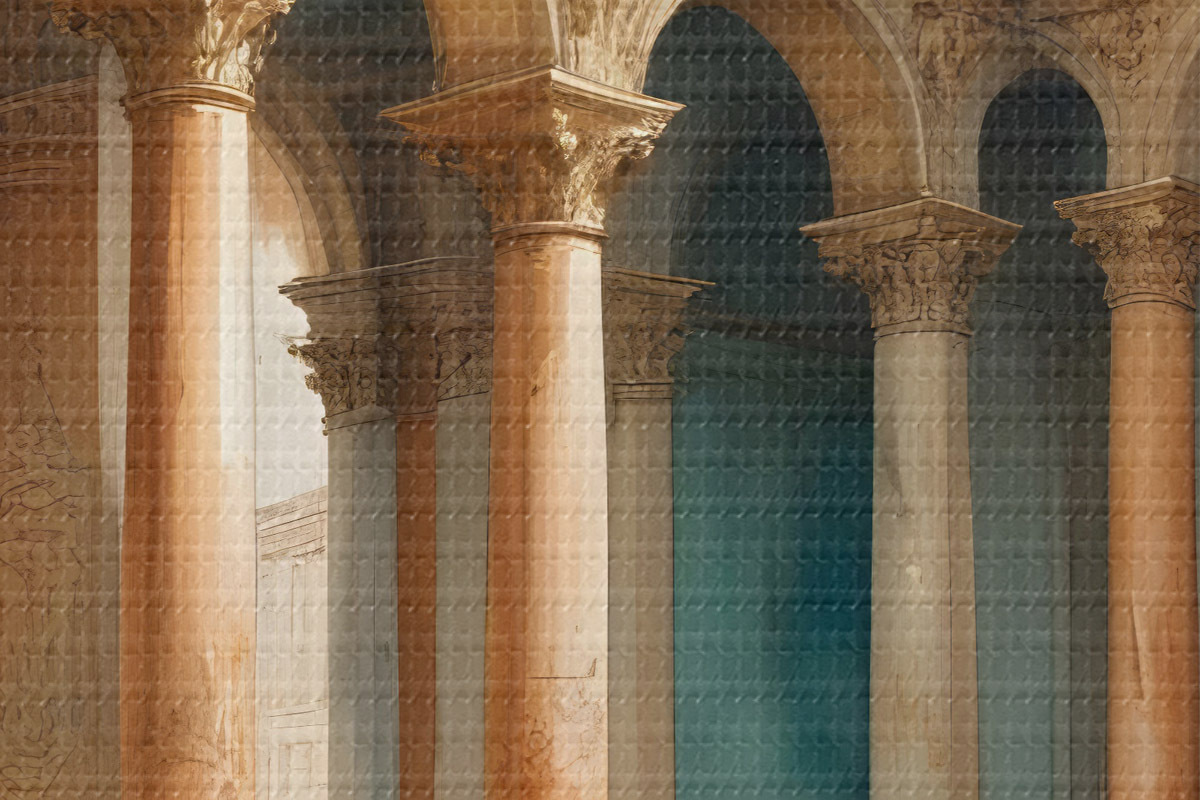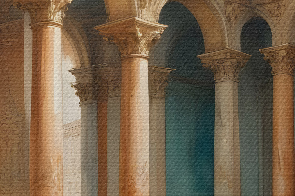 Nuotrauka Puošnus interjeras su arkinių kolonų eilėmis ir įmantriomis architektūrinėmis detalėmis Nr r39513