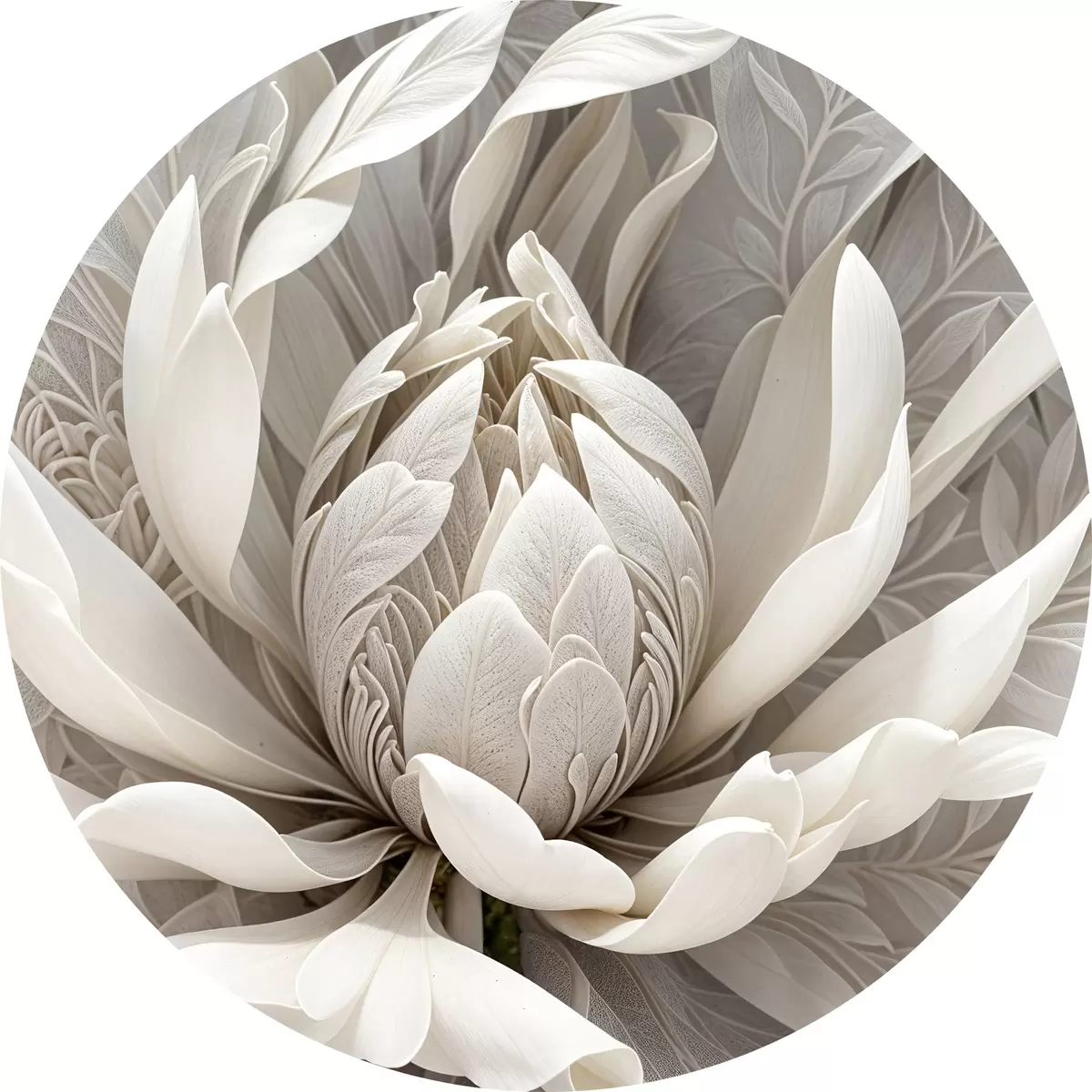 Nuotrauka Didelis, blyškios kreminės spalvos jurgino žiedas su švelniais, persidengiančiais žiedlapiais ir minkštu centru Nr r39520