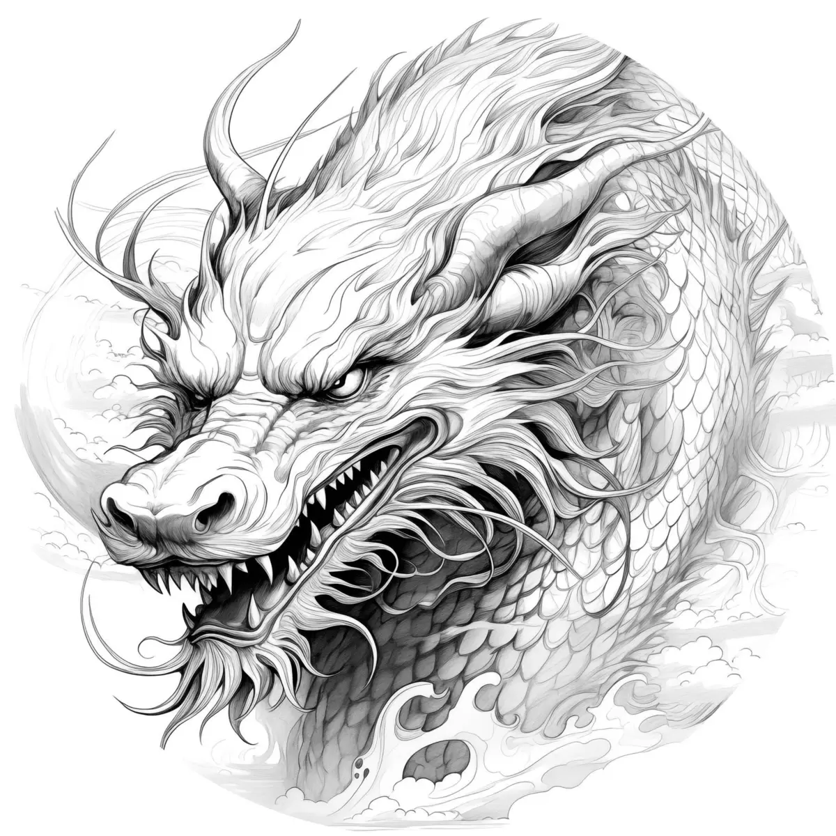 Nuotrauka Kinų stiliaus drakono linijos piešimas vienspalvis Nr r39563