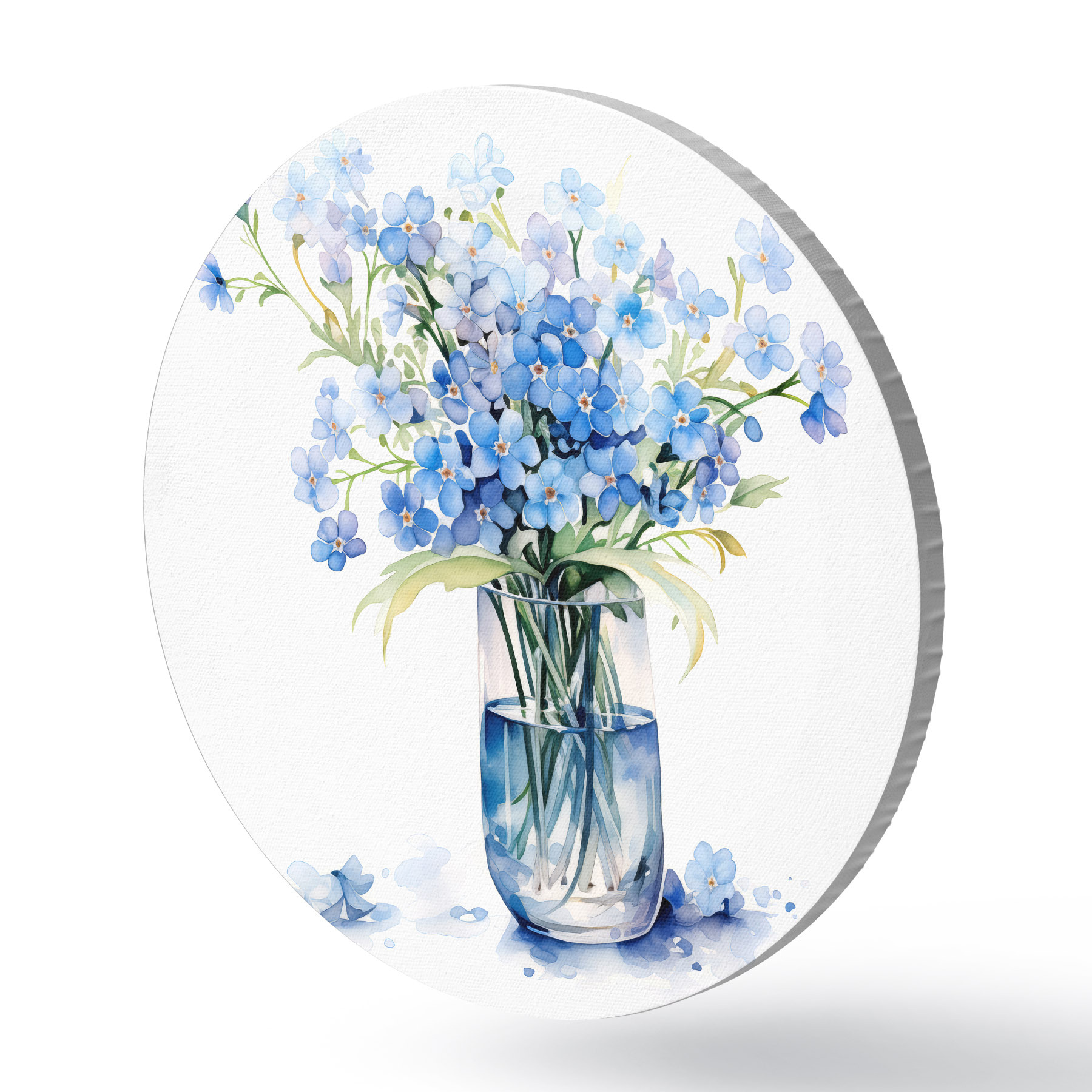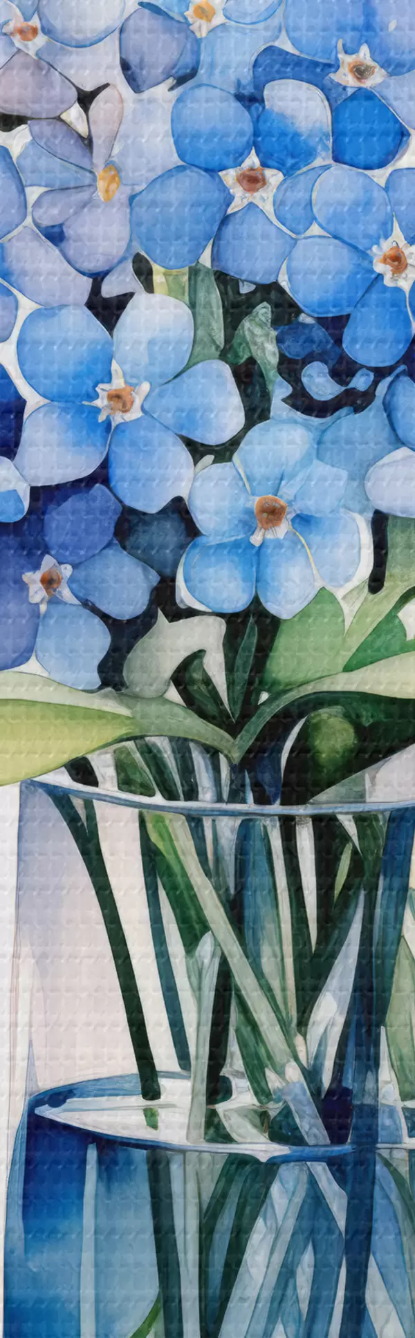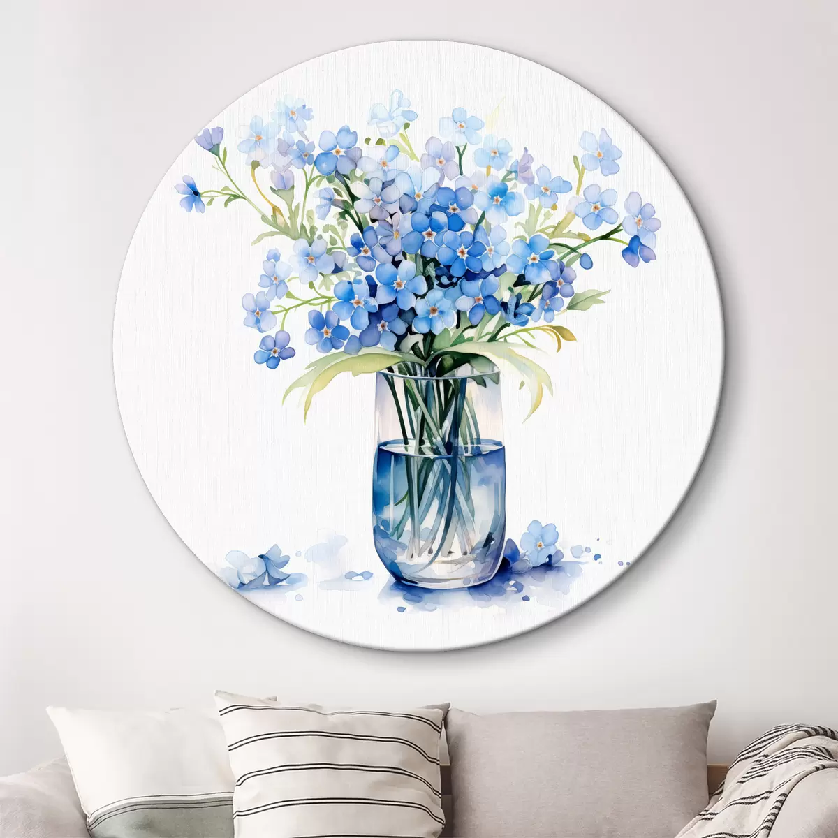 Nuotrauka Mėlynų lauko gėlių puokštė skaidrioje vazos akvarelėje Nr r39564