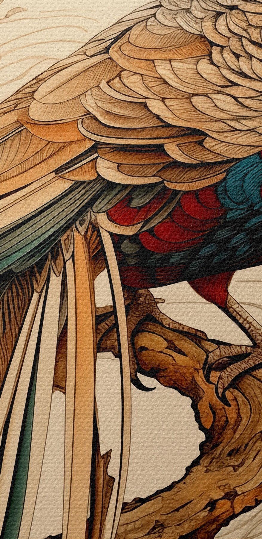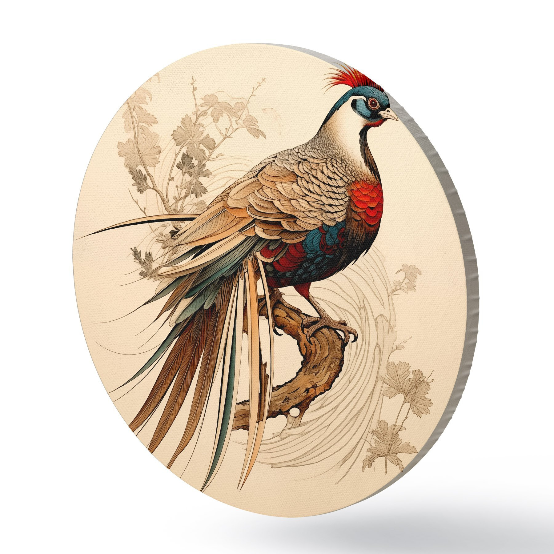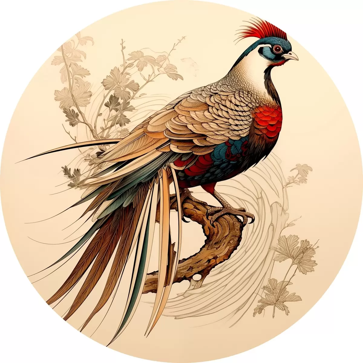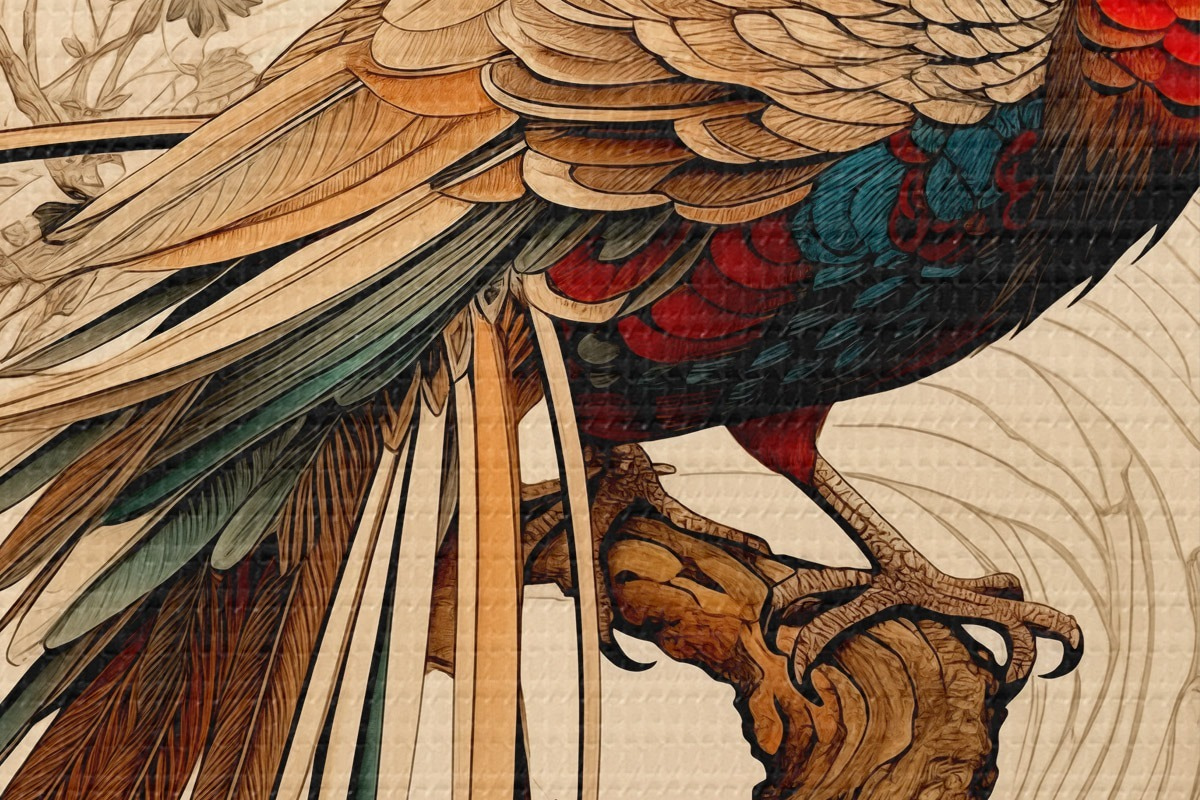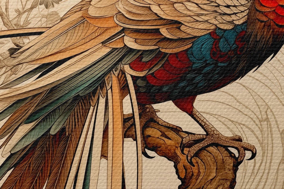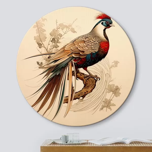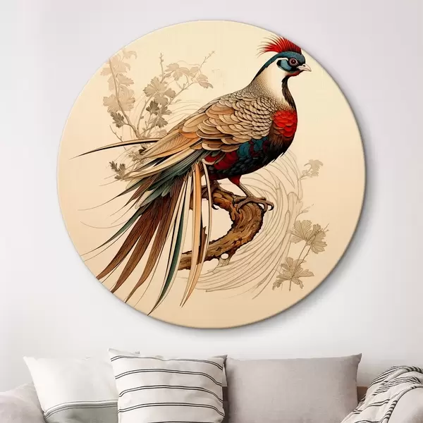 Nuotrauka Rytų stiliaus piešinys ant medžio sėdintis fazanas Nr r39566