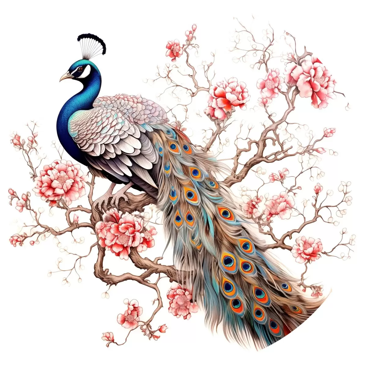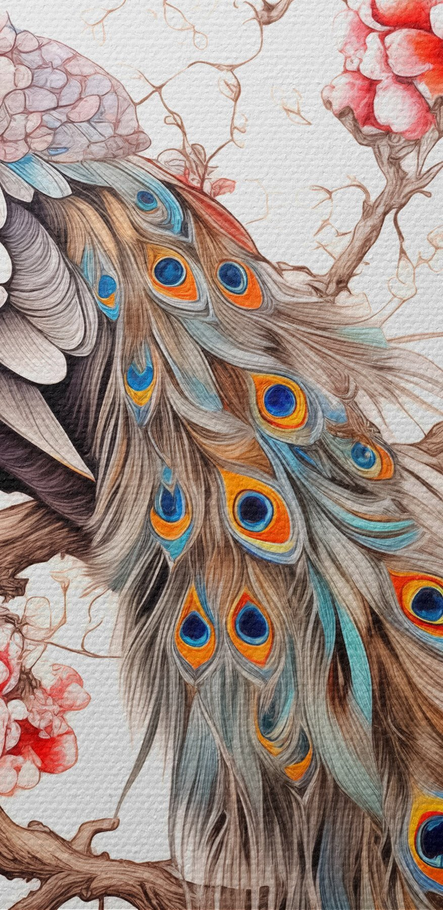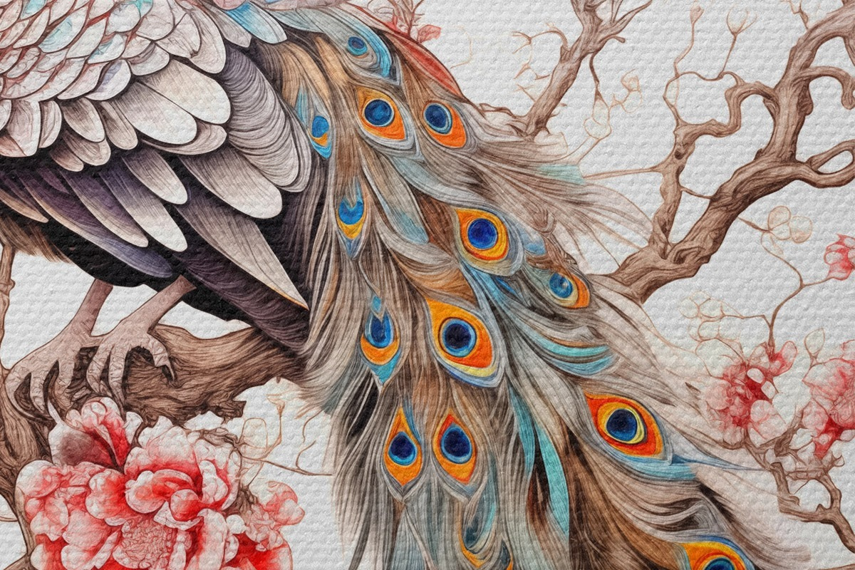 Nuotrauka Povas sėdi ant sakuros šakos akvarelė Nr r39568