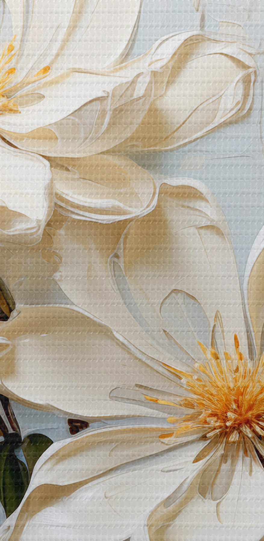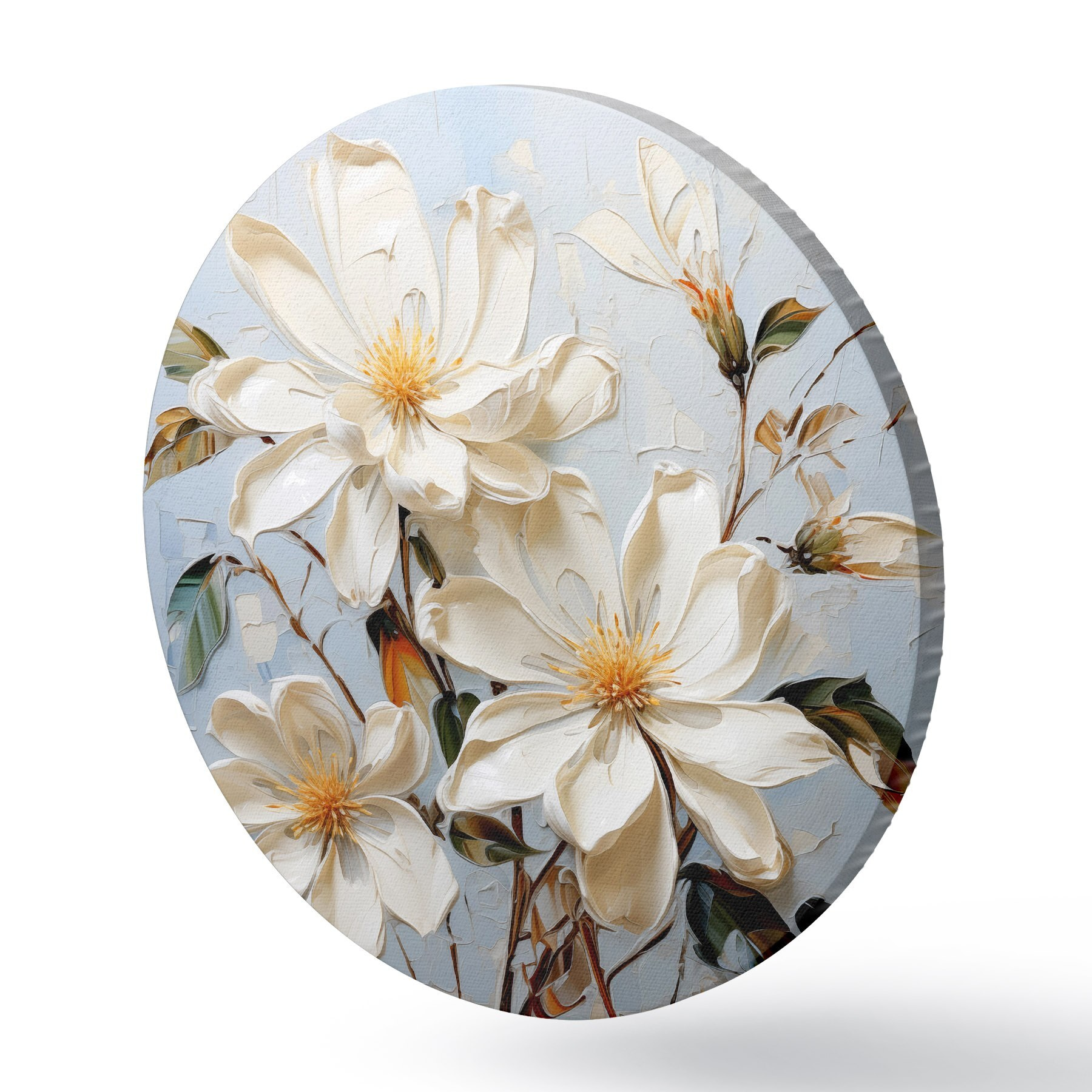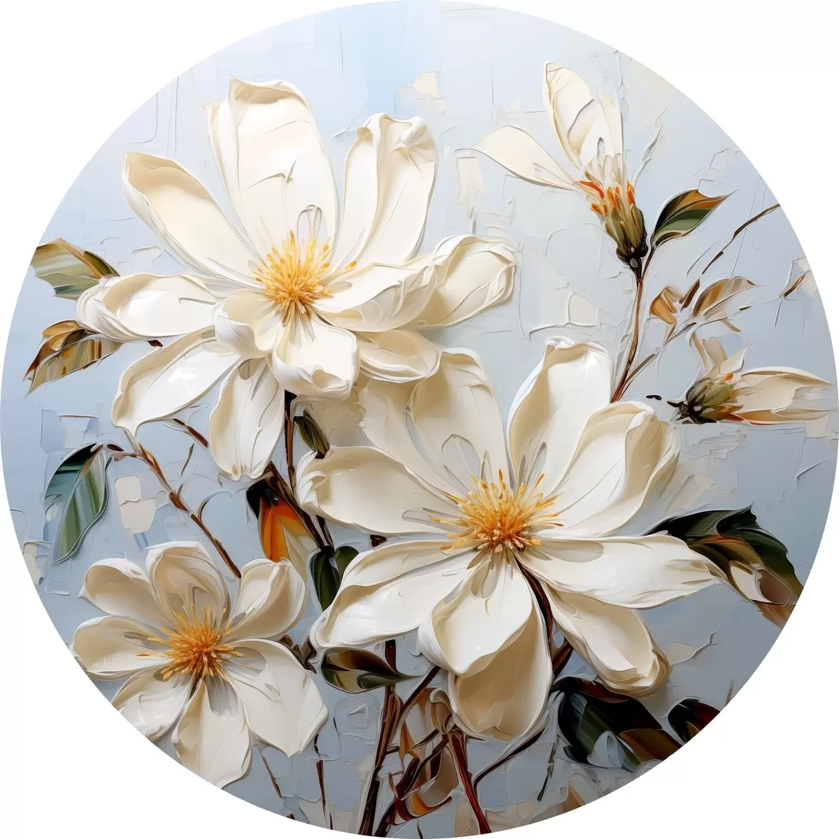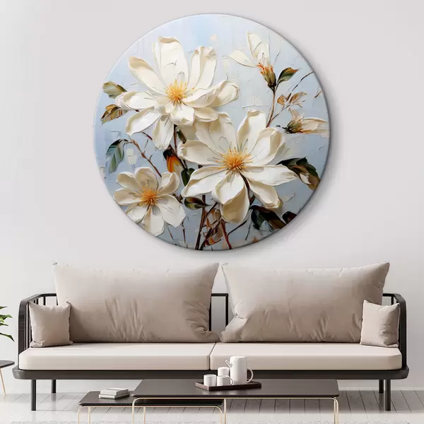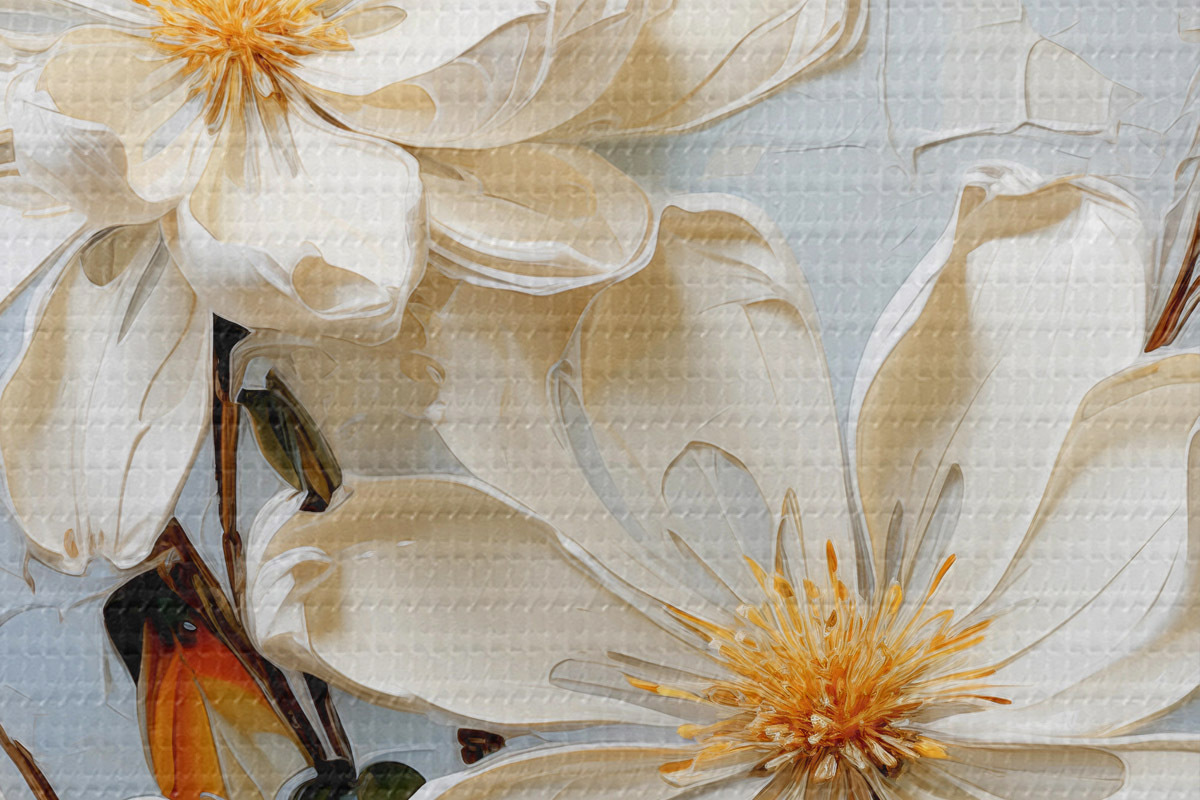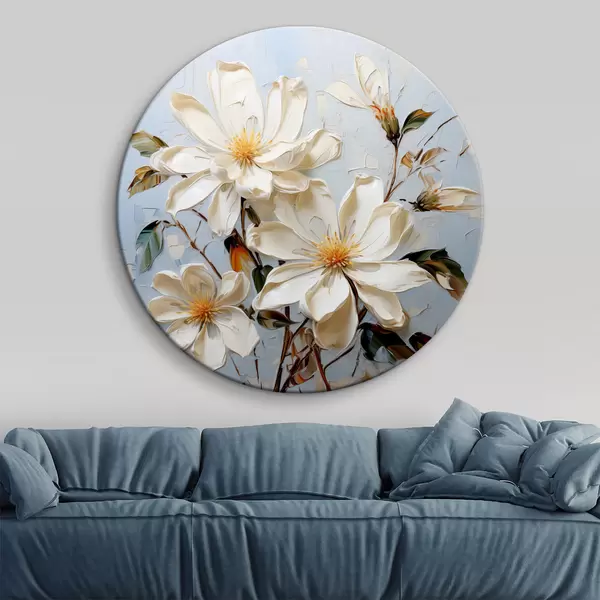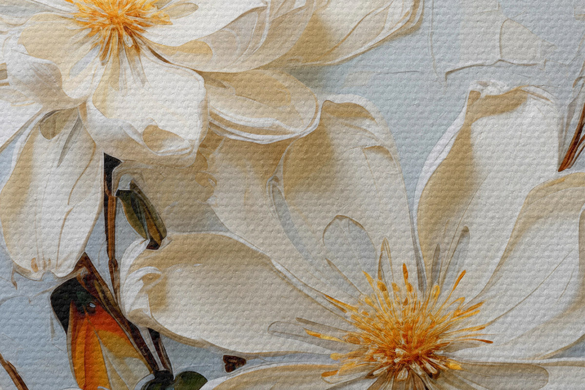 Nuotrauka Baltos apimties jazminų žiedai mėlyname fone, aliejinė tapyba Nr r39570
