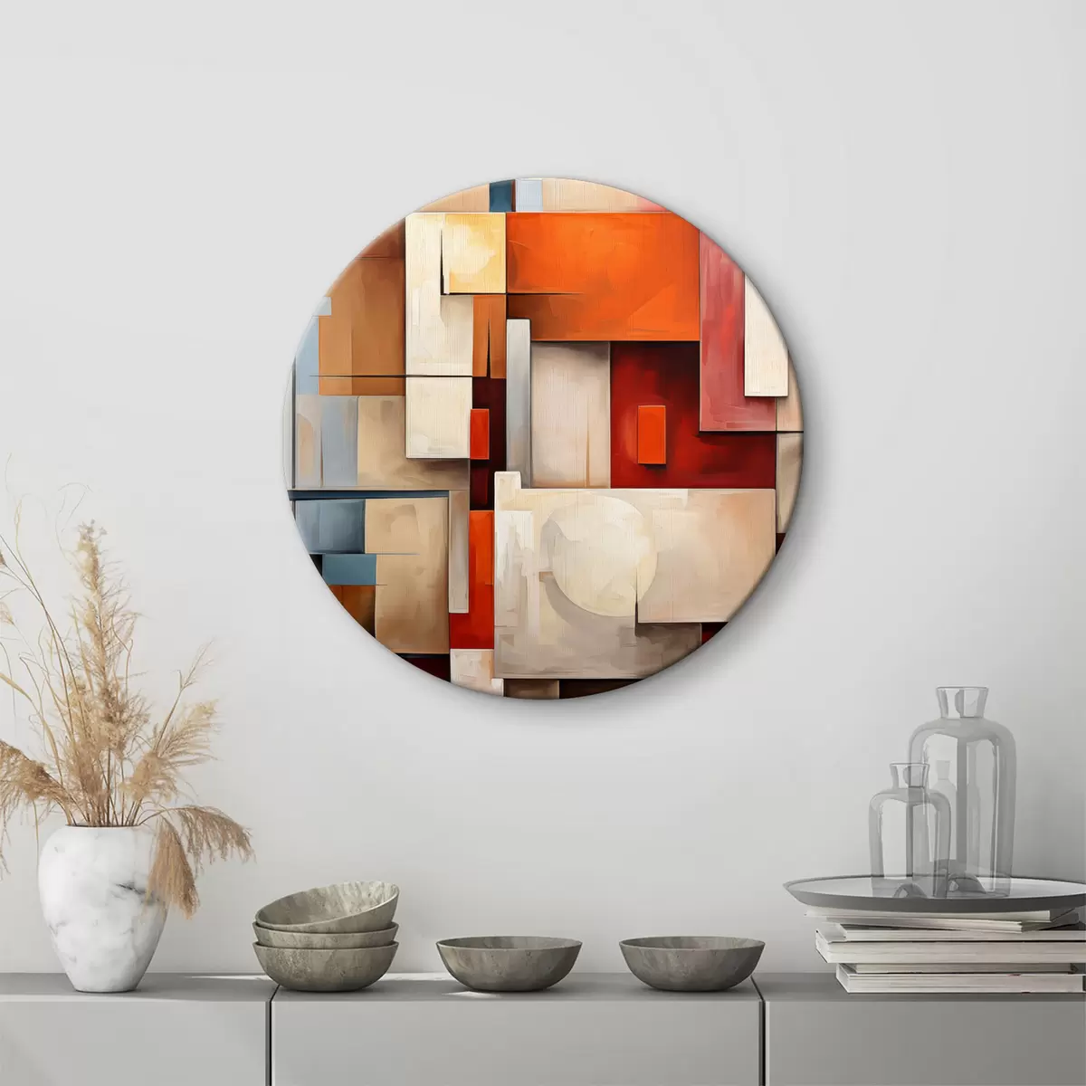 Nuotrauka Abstrakcija kubizmo stiliumi, aliejinė tapyba, raudona, mėlyna, balta spalvos Nr r39571