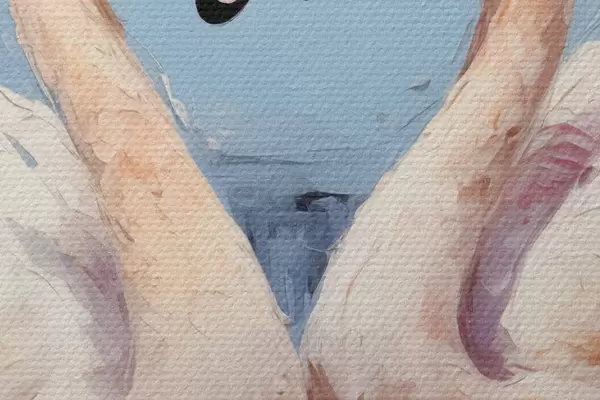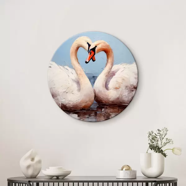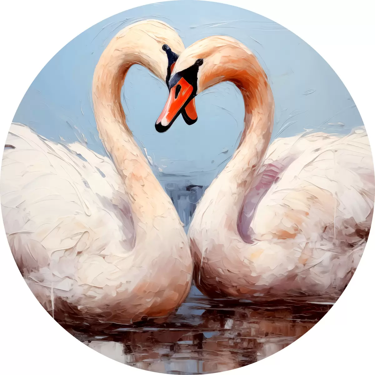 Nuotrauka Baltų gulbių pora ant tvenkinio, aliejinė tapyba Nr r39572
