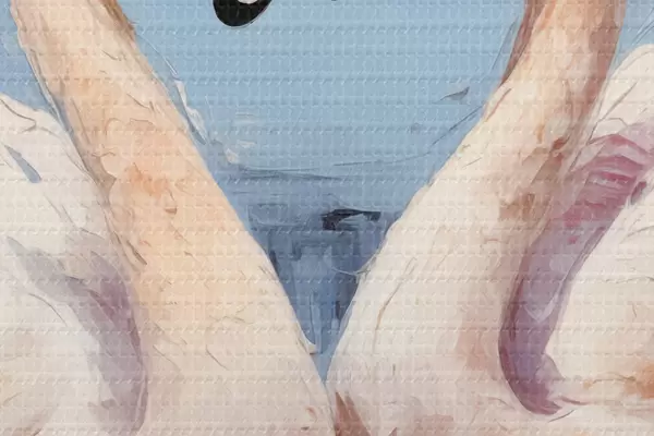 Nuotrauka Baltų gulbių pora ant tvenkinio, aliejinė tapyba Nr r39572