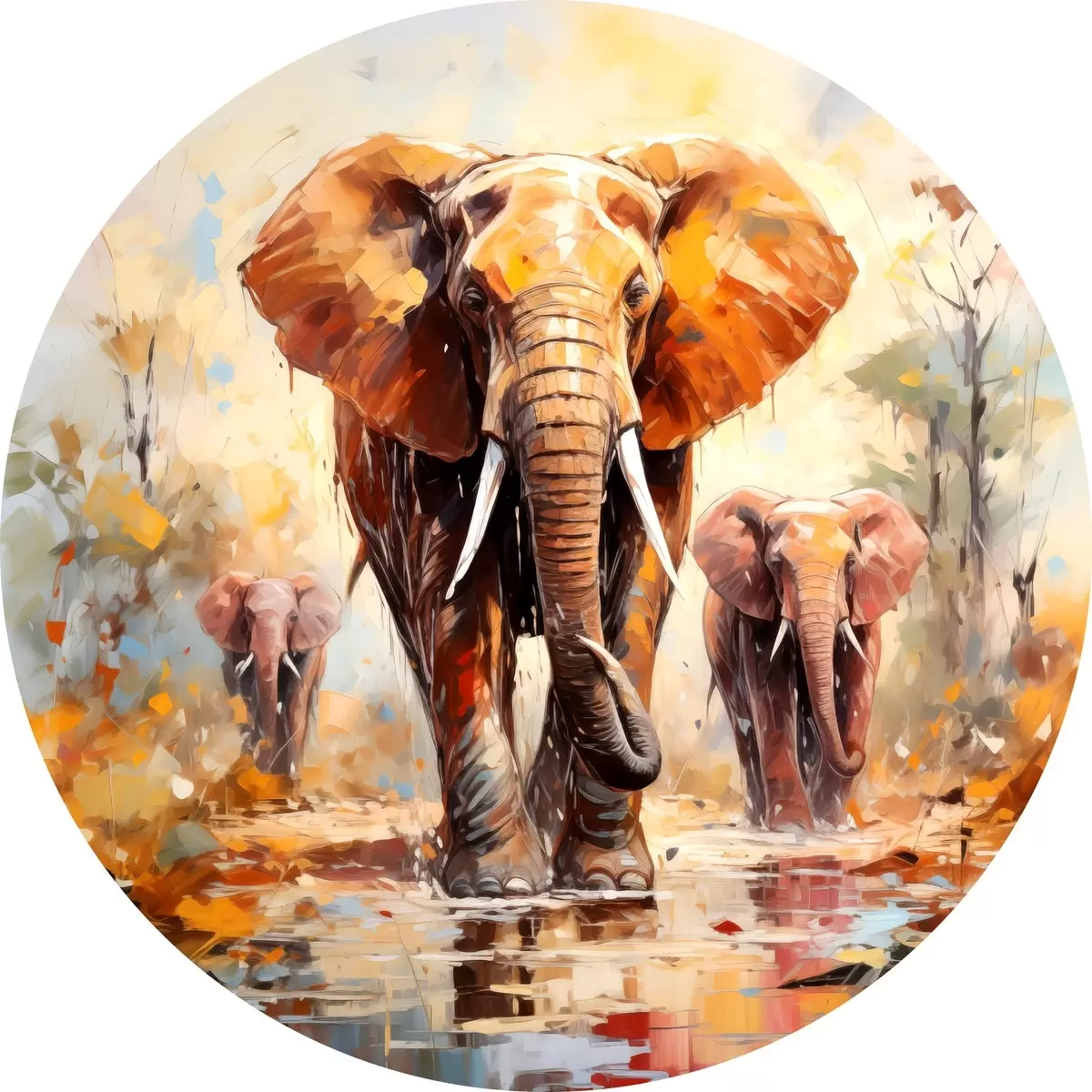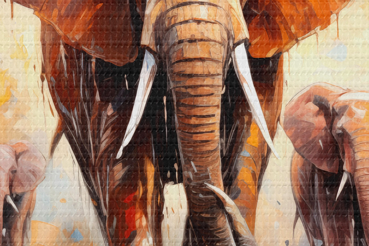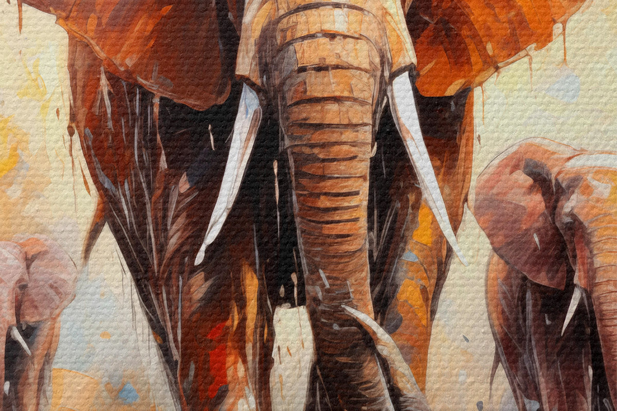 Nuotrauka Dramblių pulkas tarp savanos, aliejinė tapyba, abstraktus menas Nr r39573
