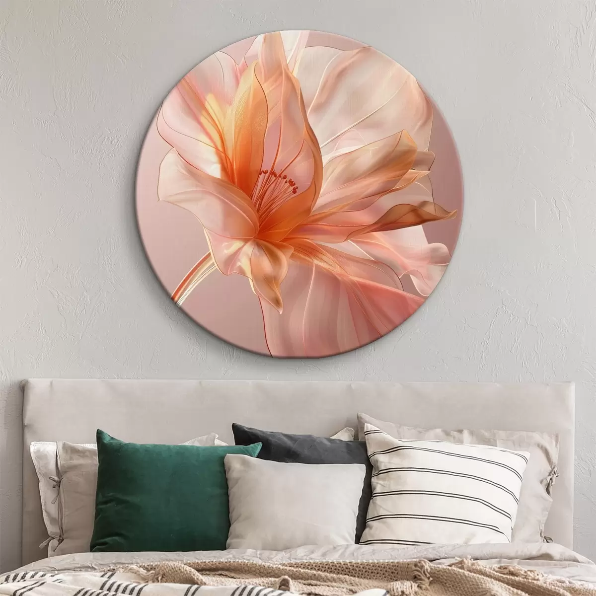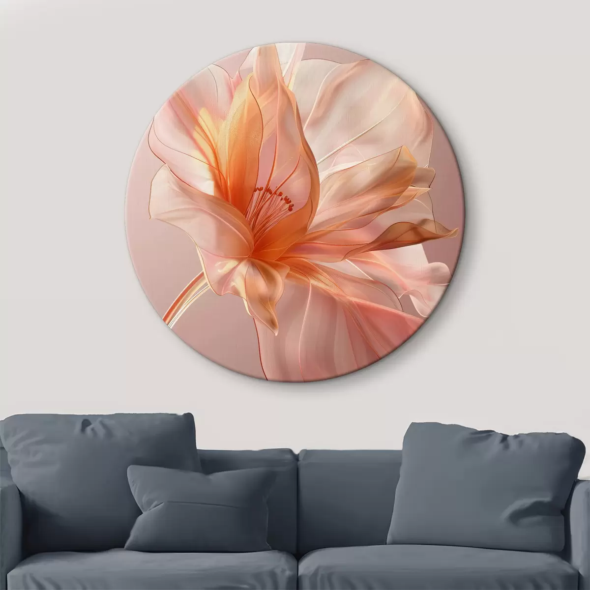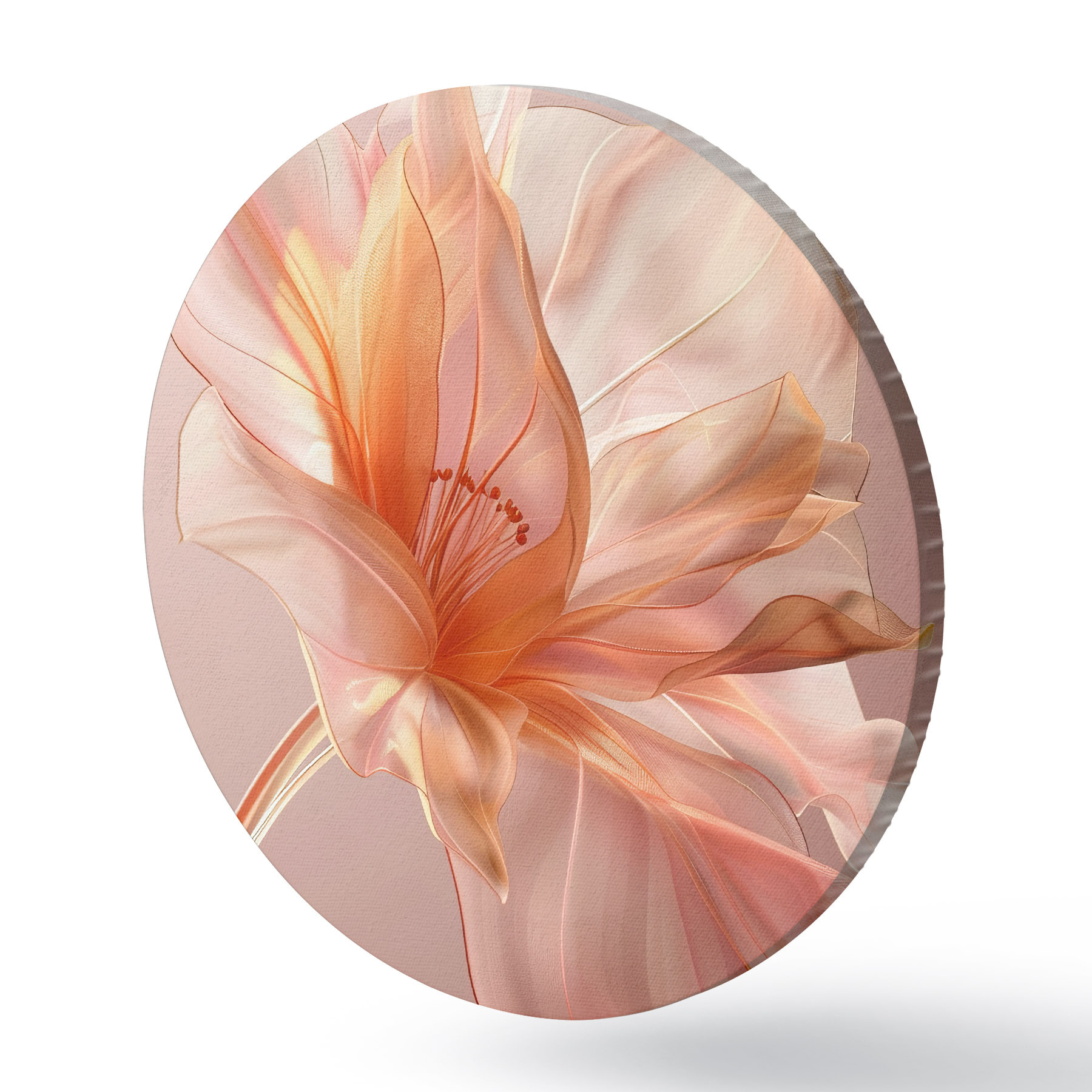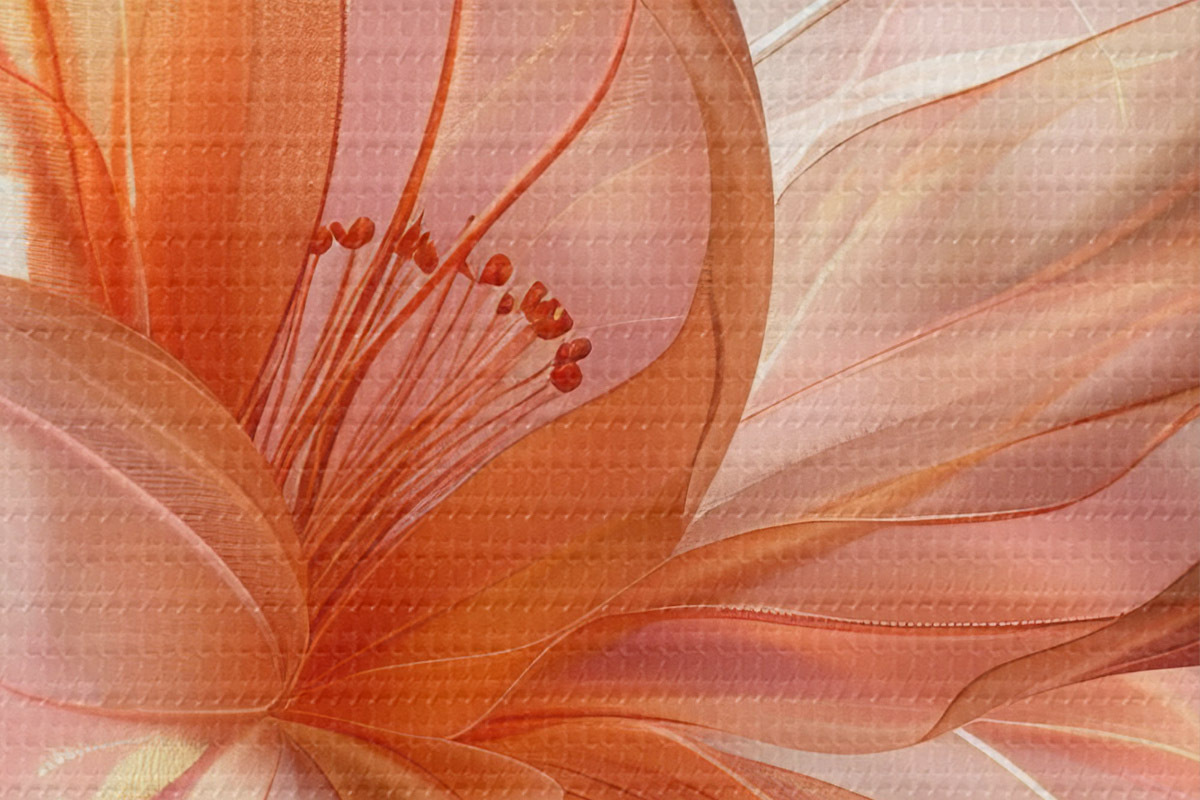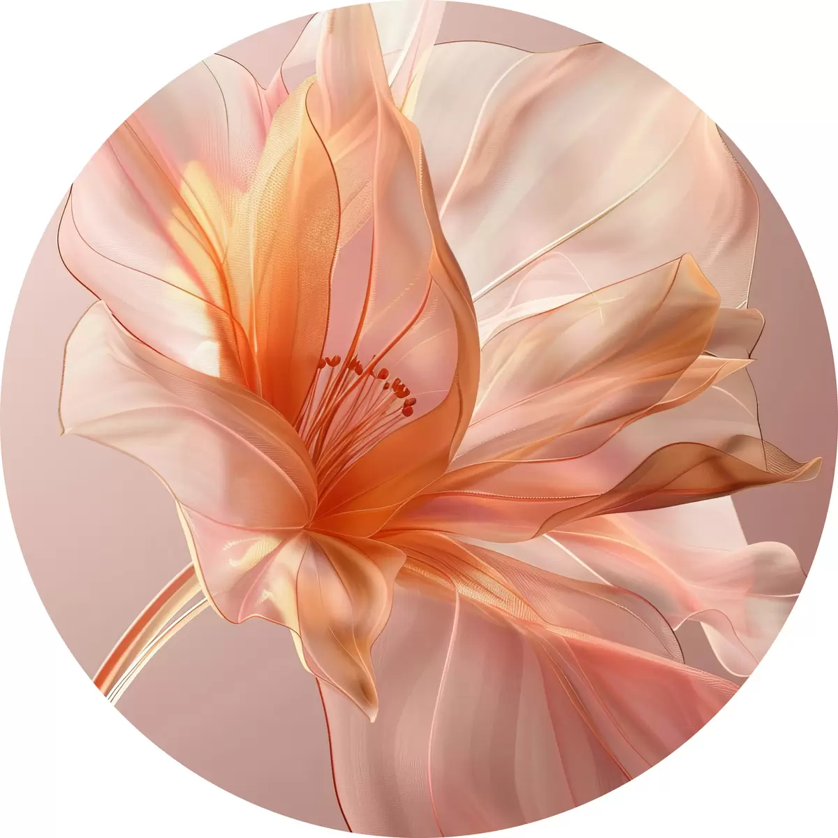 Nuotrauka Persiko gėlės žiedlapis rožiniame fone su sklandančiomis linijomis, minimalizmu ir subtiliomis detalėmis Nr r39631