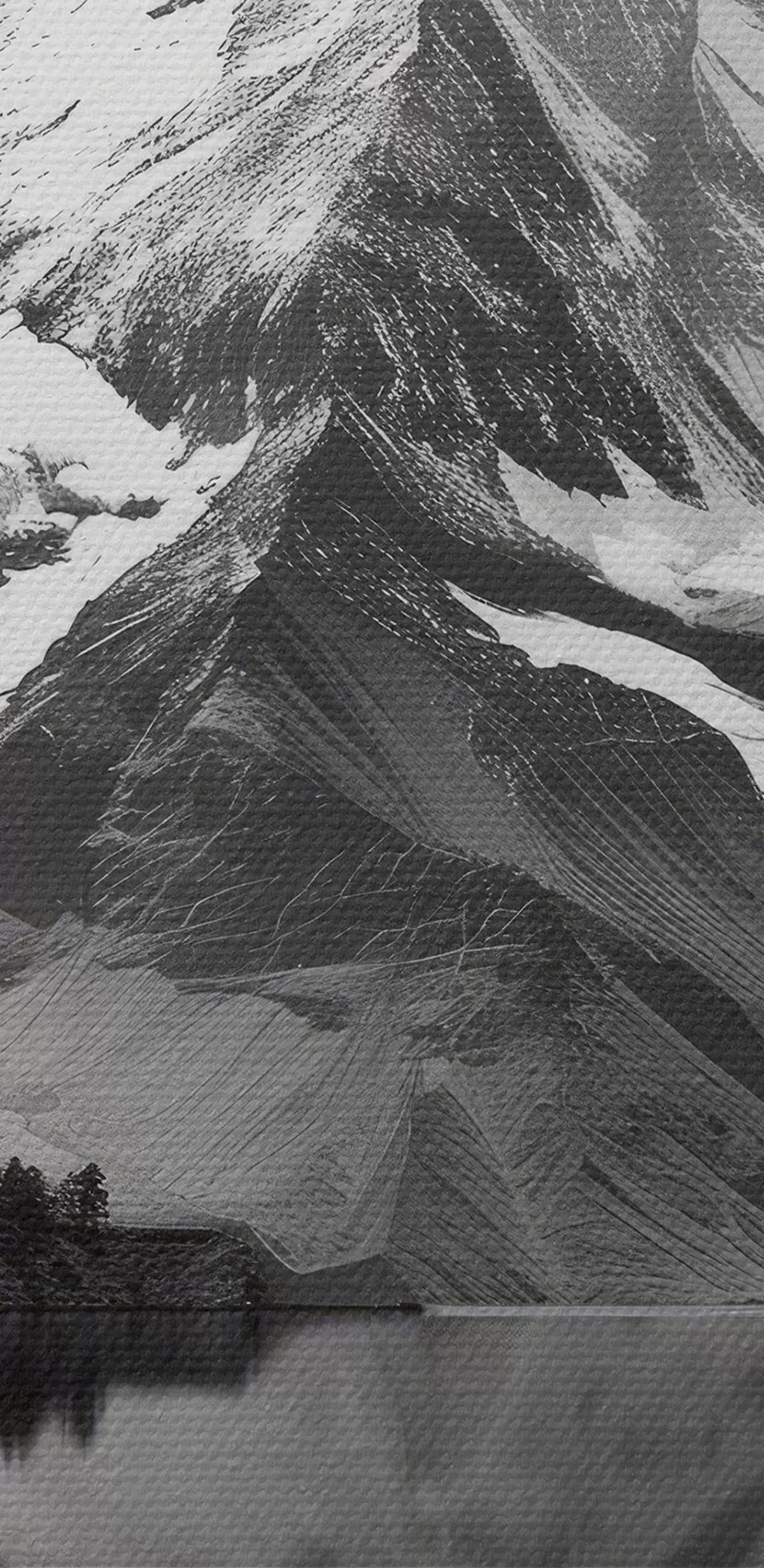 Nuotrauka Juodai baltas minimalistinio stiliaus kalno paveikslas Nr r39638