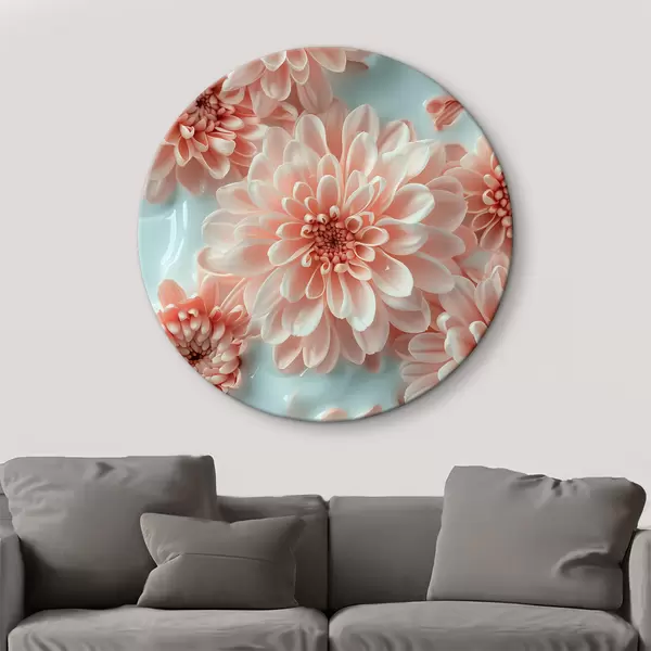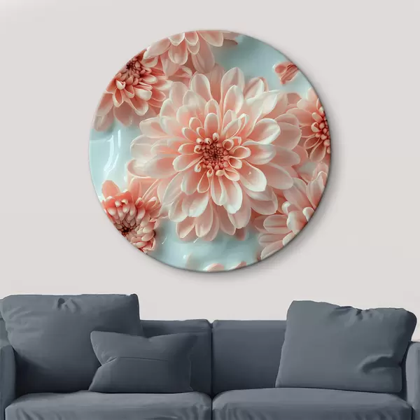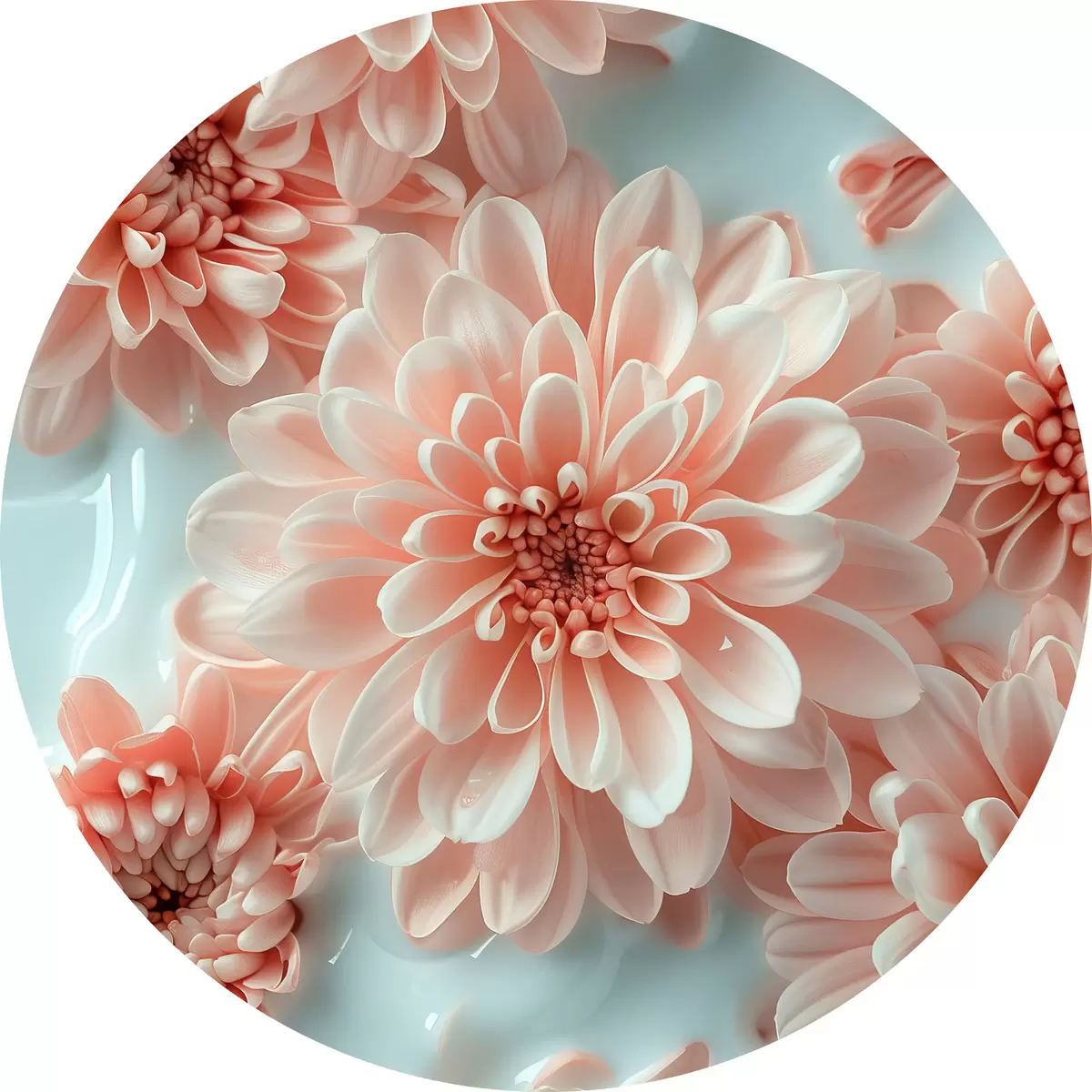 Nuotrauka Rožinės chrizantemos pieno fone: gėlių kompozicija su pieno šlakeliu Nr r39642