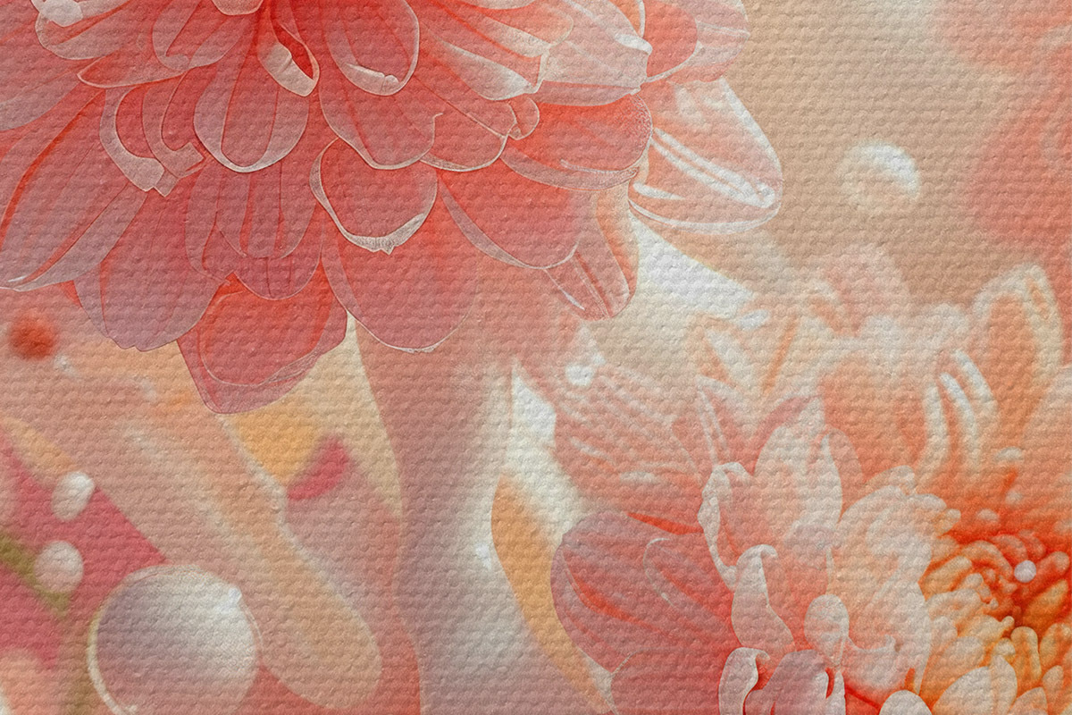 Nuotrauka Rožinės chrizantemos su pieno purslais švelniai rausvame fone: gėlių kompozicija Nr r39643