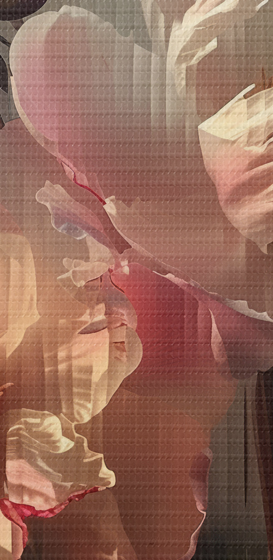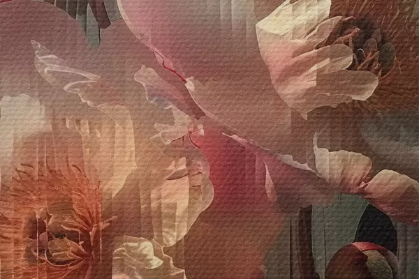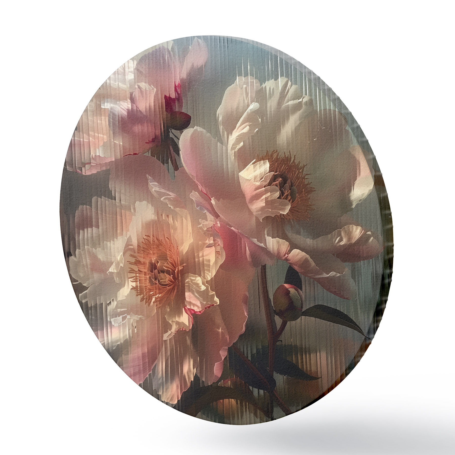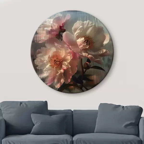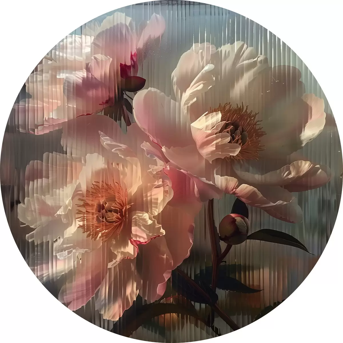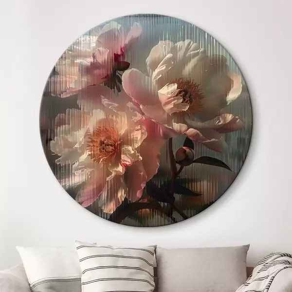 Nuotrauka Rožiniai bijūnai per gofruotą stiklą: fotorealistinis stambaus planas su vaizdo lūžiu Nr r39647