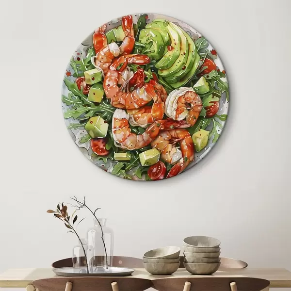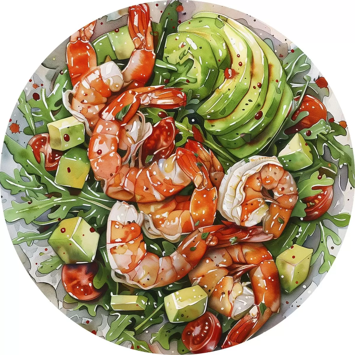 Nuotrauka Salotos su avokadu ir krevetėmis, skanu, maisto menas, akvarelė, vasariškos spalvos Nr r39696